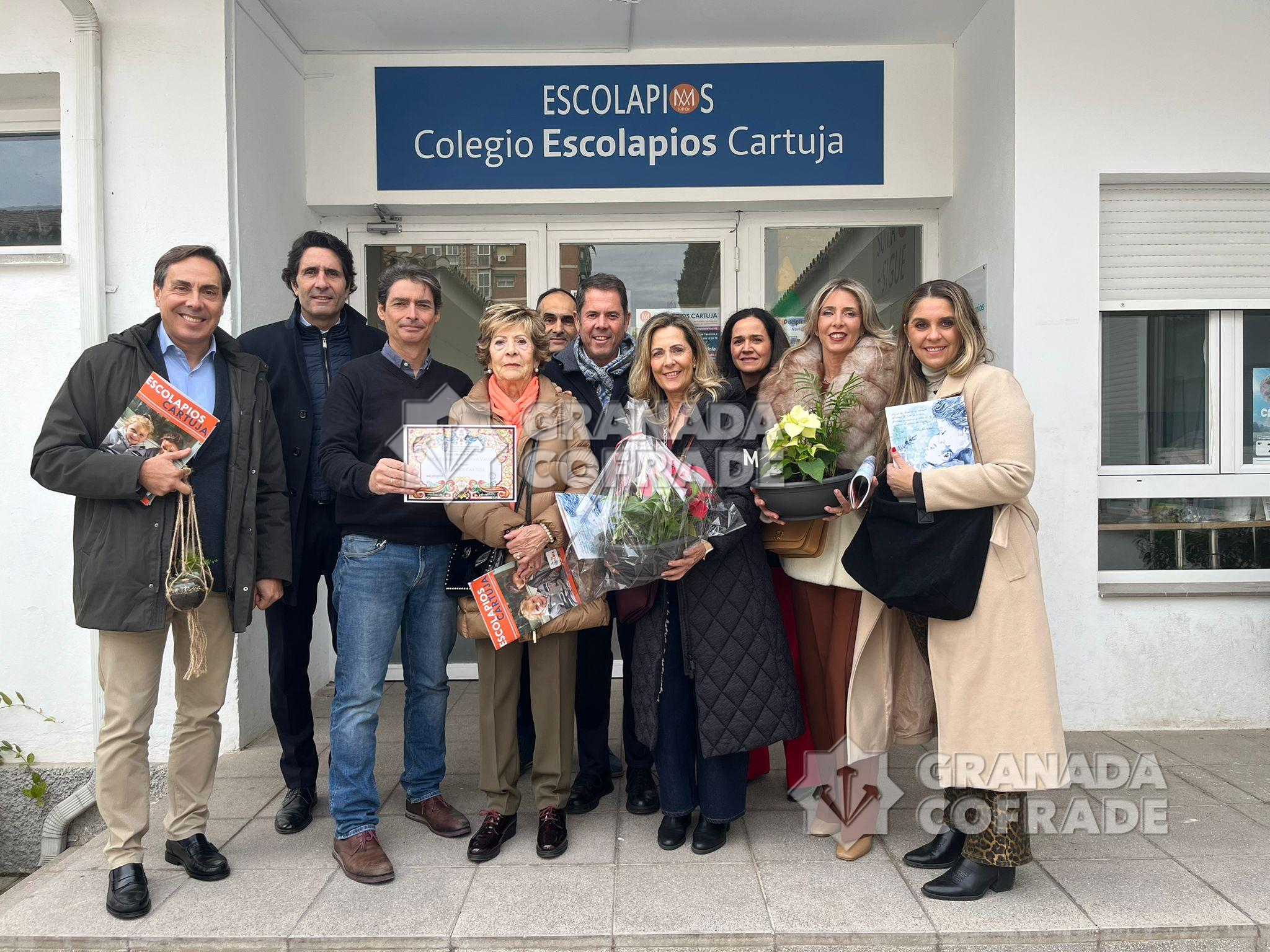 El colegio Escolapios-Cartuja, establecido en la calle Luz Casanova, número 4, de la zona Norte de Granada recibió en la mañana de ayer viernes la primera «Beca Gerardo Cuerva Vallet» que entrega la hermandad del Santísimo Cristo de la Expiración. Una mañana que fue compartida por miembros de la junta de gobierno, con su hermana mayor Fátima Sánchez, junto con miembros de la familia del recordado empresario granadino Gerardo Cuerva, que da nombre a la beca. Estaba su viuda, Josefina Valdivia y sus hijos Gerardo, Ignacio, Mónica y María José, que fueron recibidos por el director del centro, José Manuel Gallardo García, quien fue dirigiendo una visita por el colegio, con trescientos alumnos procedentes de familias más marginadas.