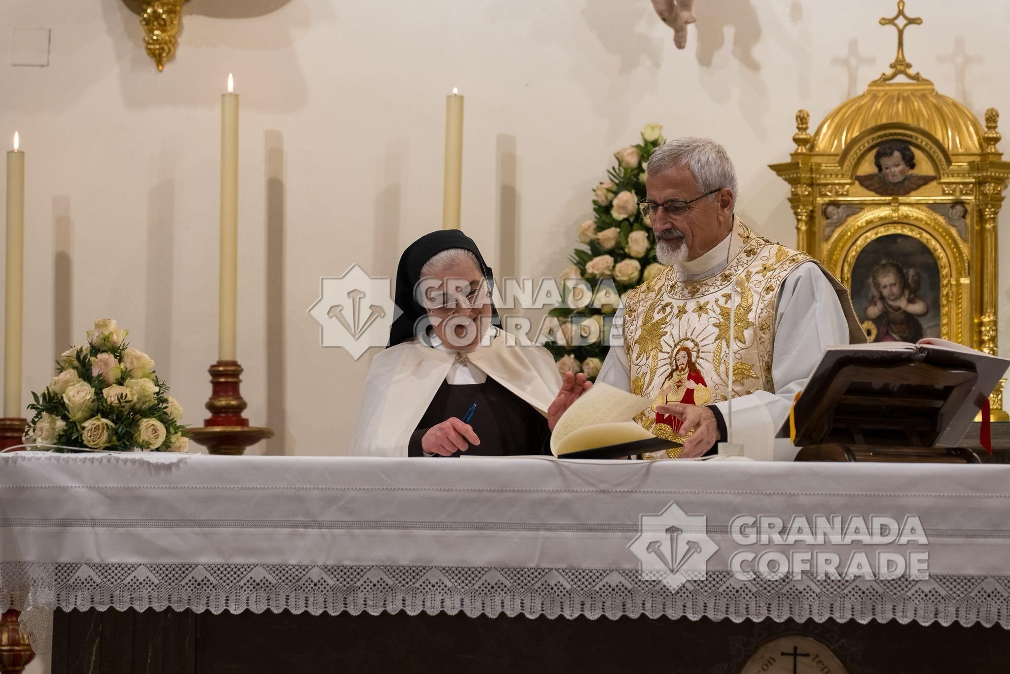 La Eucaristía estuvo presidida por fray Gabriel Castro, OCD, vicario provincial del Carmelo Descalzo, y contó con la presencia del presidente de la Federación de Cofradías de Granada, Armando Ortiz, que quiso acompañar a la comunidad carmelita en este inicio tan significativo, además del hermano mayor de la cofradía de Jesús Nazareno, Enrique Ramírez, y miembros de su junta de gobierno.