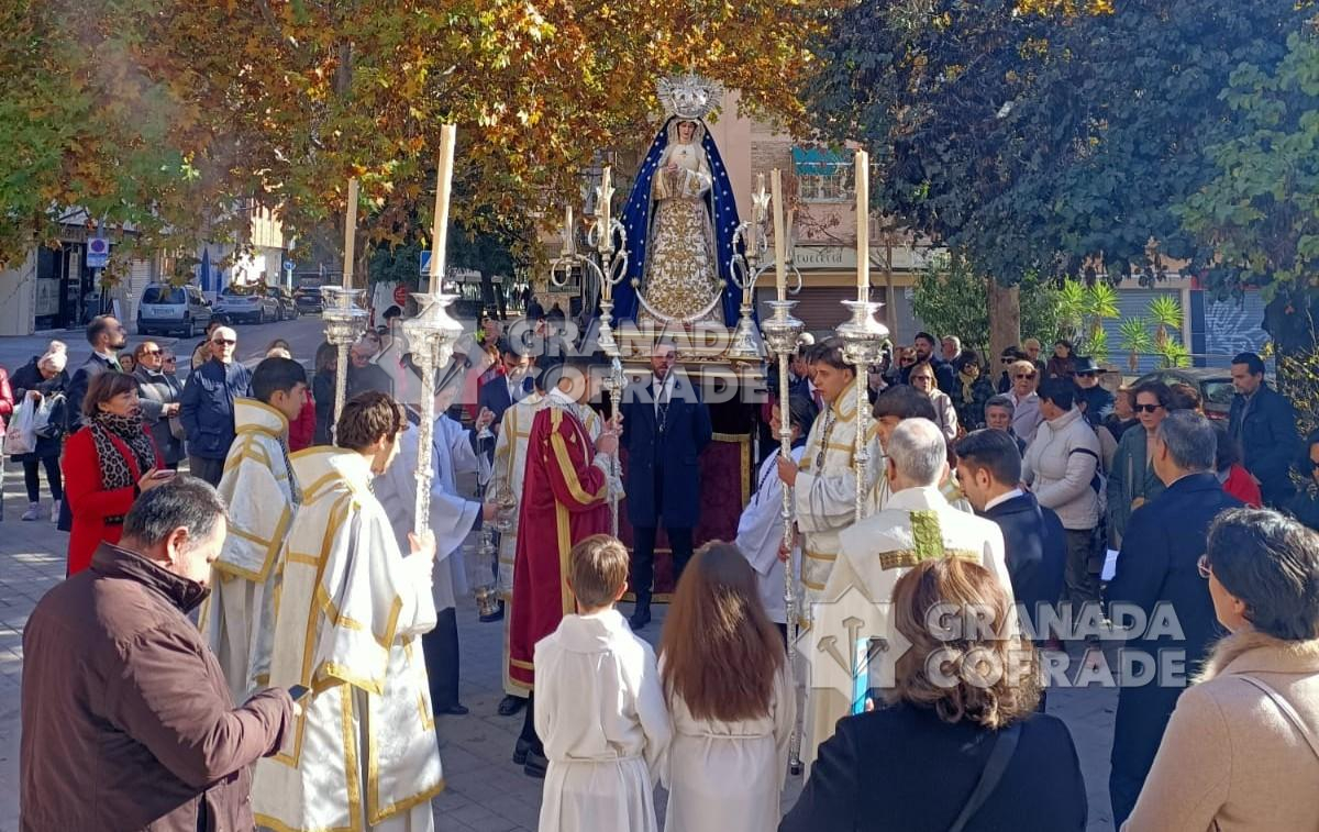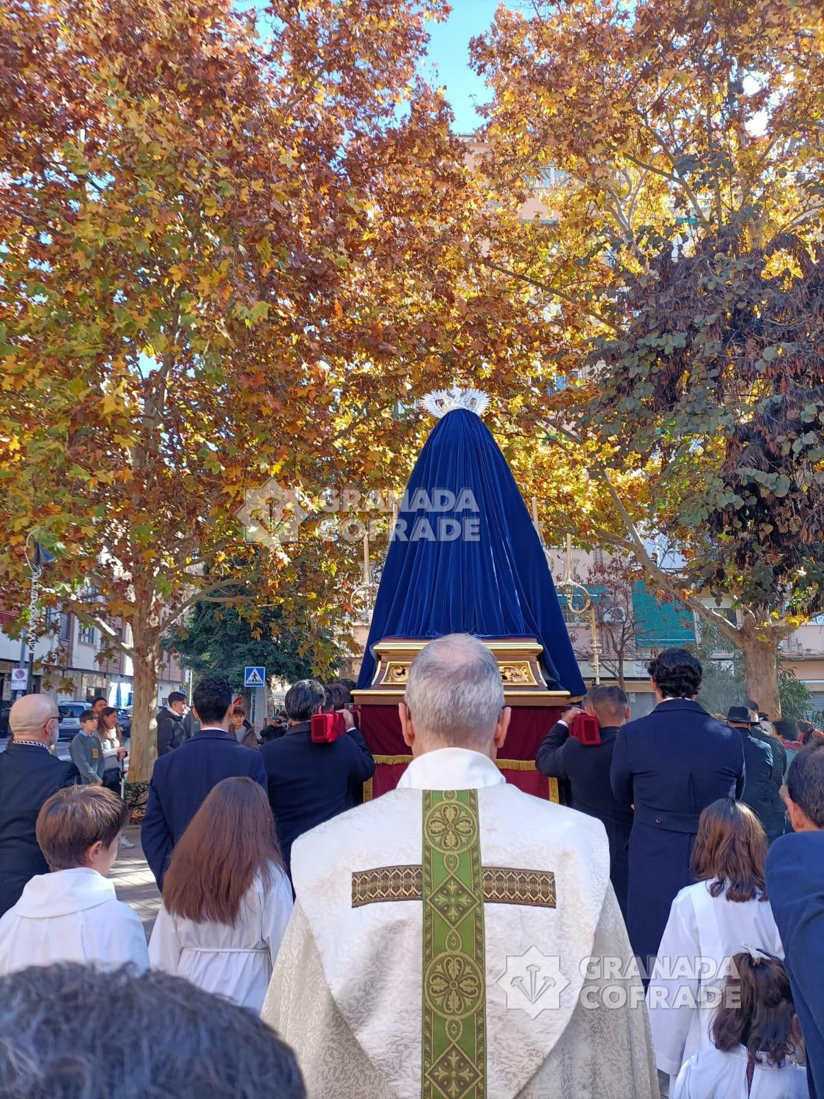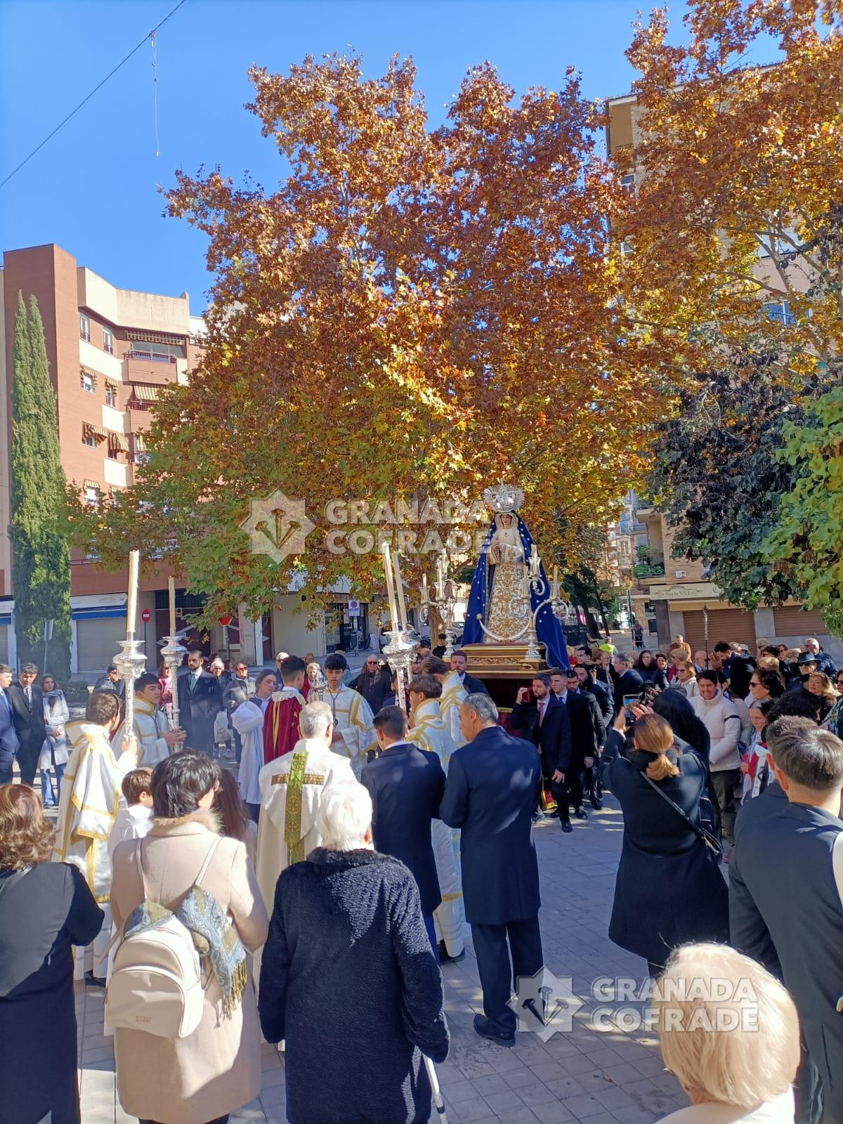 La Archicofradía de Nuestra Señora de la Consolación y Correa de San Agustín se unió a la feligresía de Santo Tomás de Villanueva para celebrar el día de la Purísima de manera especial, de manera que tras la Eucaristía, partió con el rezo del santo rosario la imagen de Nuestra Señora del Socorro, una talla original del escultor granadino Ángel Asenjo10. A las doce y media salía el cortejo del interior del templo con el que se recordaba también el cincuentenario de la creación de la parroquia de Santo Tomás de Villanueva, establecida originariamente en el colegio de los Agustinos, de Granada, cercano a la actual parroquia.