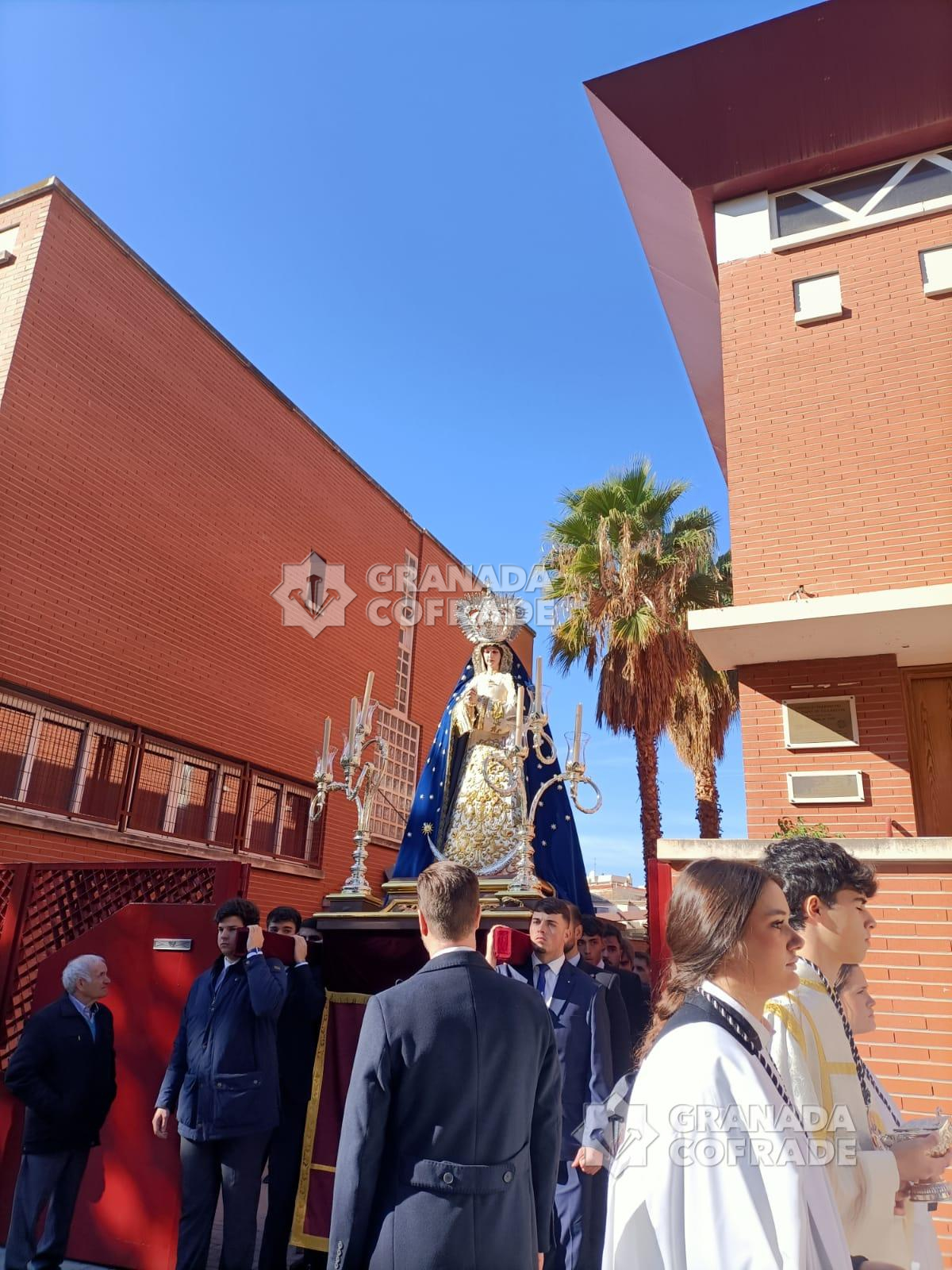 La salida procesional estuvo presidida por el párroco, fray Ángel Antonio García Cuadrado OAR y acompañada por el quinteto de viento-metal GranaMusic, recorriendo las principales calles de la feligresía de la parroquia, llegando hasta el colegio agustino y regresando por las calles Santa Rita, fray Luis de León, Artesano Molero, Pérez Galdós y calle Recoletos. El cortejo regresó a las dos y media de la tarde al interior de la parroquia del barrio de La Rosaleda.