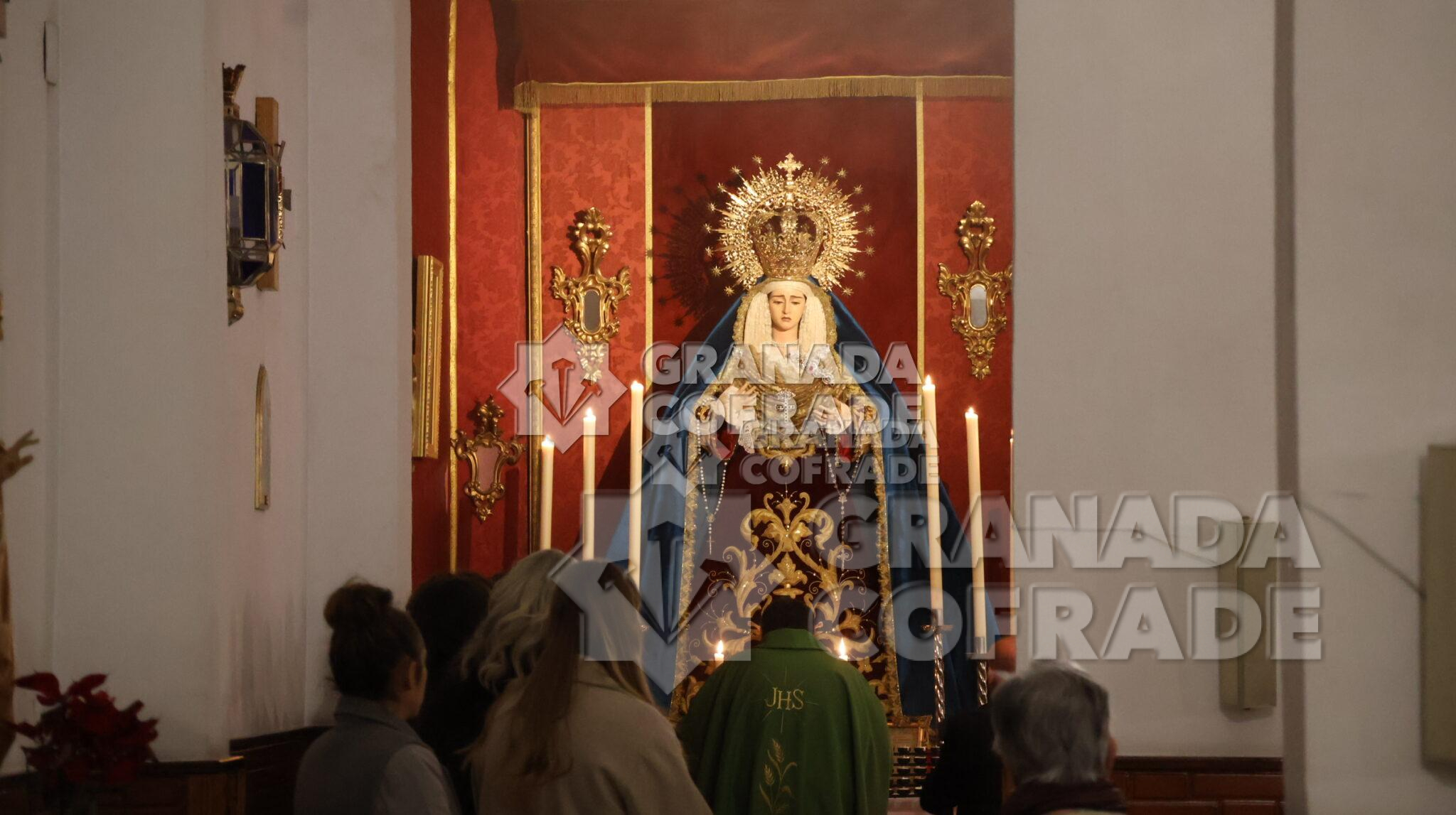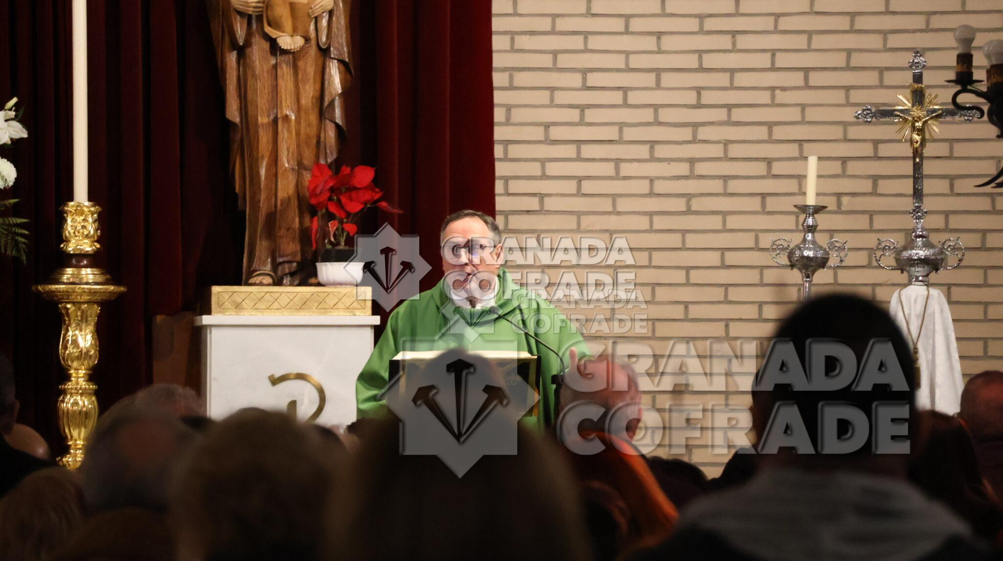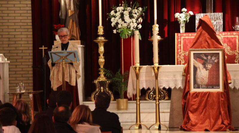 Con el recuerdo a los años que la cofradía de la Sagrada Lanzada no ha podido realizar su estación penitencial el Martes Santo, inició sus palabras de presentación del cartel de este año la locutora de radio, Emilia Cayuela García. Una breve presentación que se centró en su vinculación con la cofradía y con la comunidad parroquial «porque vosotros sois mi familia» y con la descripción del cartel que la presentadora calificó de solidario ya que el importe de lo aportado por los hermanos y allegados para que su instantánea personal «del rostro al Cristo de la Lanzada» tiene el fin deseado de la aportación económica destinada a la ayuda a las familias con niños oncológicos «Aupa» y la aportación a las necesidades para un mejor seguimiento de la enfermedad. «Es un cartel familiar, un cartel humano dentro de lo divino, un cartel con un sólo Señor, una sola fe y un sólo corazón en el cual Manuel Puga ha hecho un mosaico con todas las fotos, con todas las almas presentes y ausentes que hemos querido participar en este acto de caridad y compromiso con la Asociación Aupa Granada». Estaba en la parroquia de Nuestra Señora de los Dolores la vocal de esta Asociación Leticia Mateos.