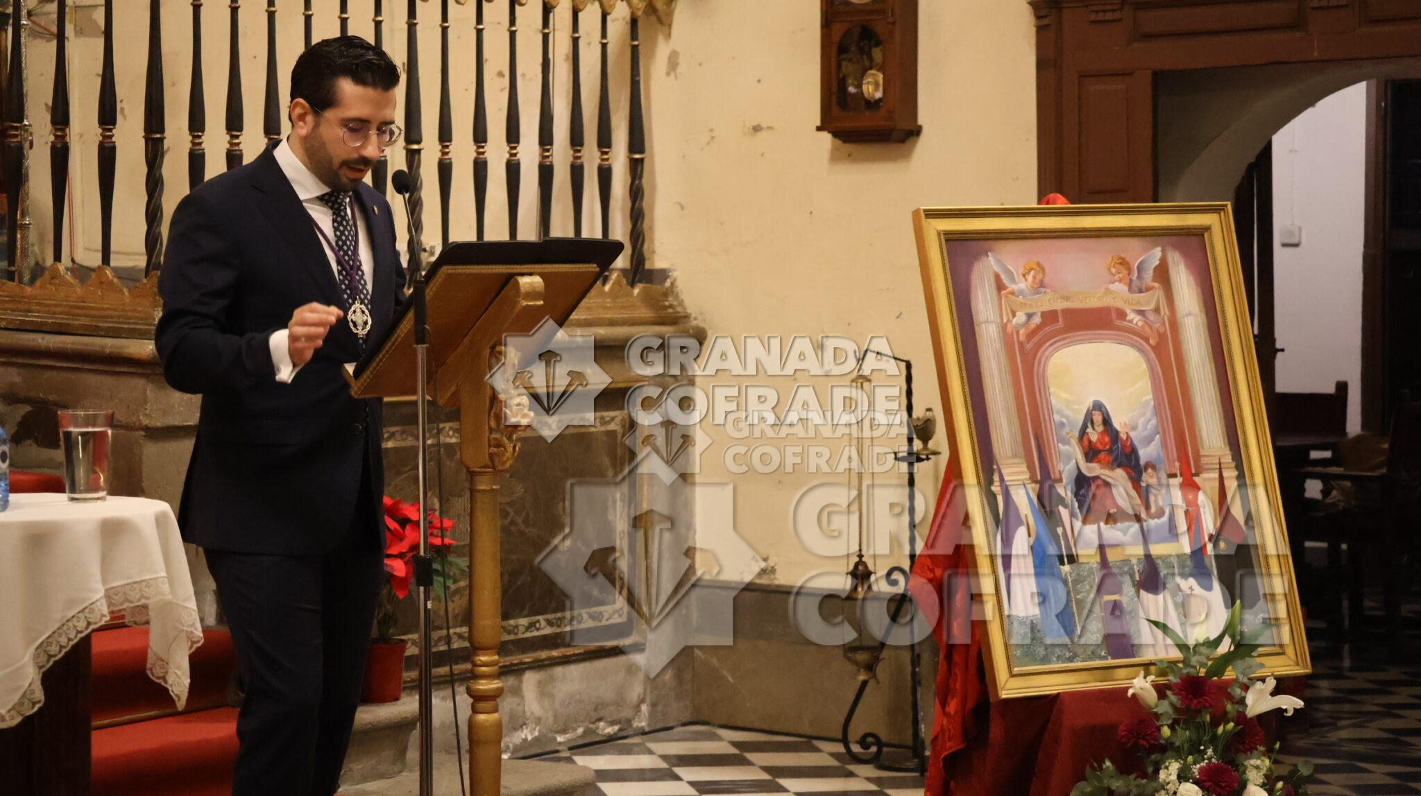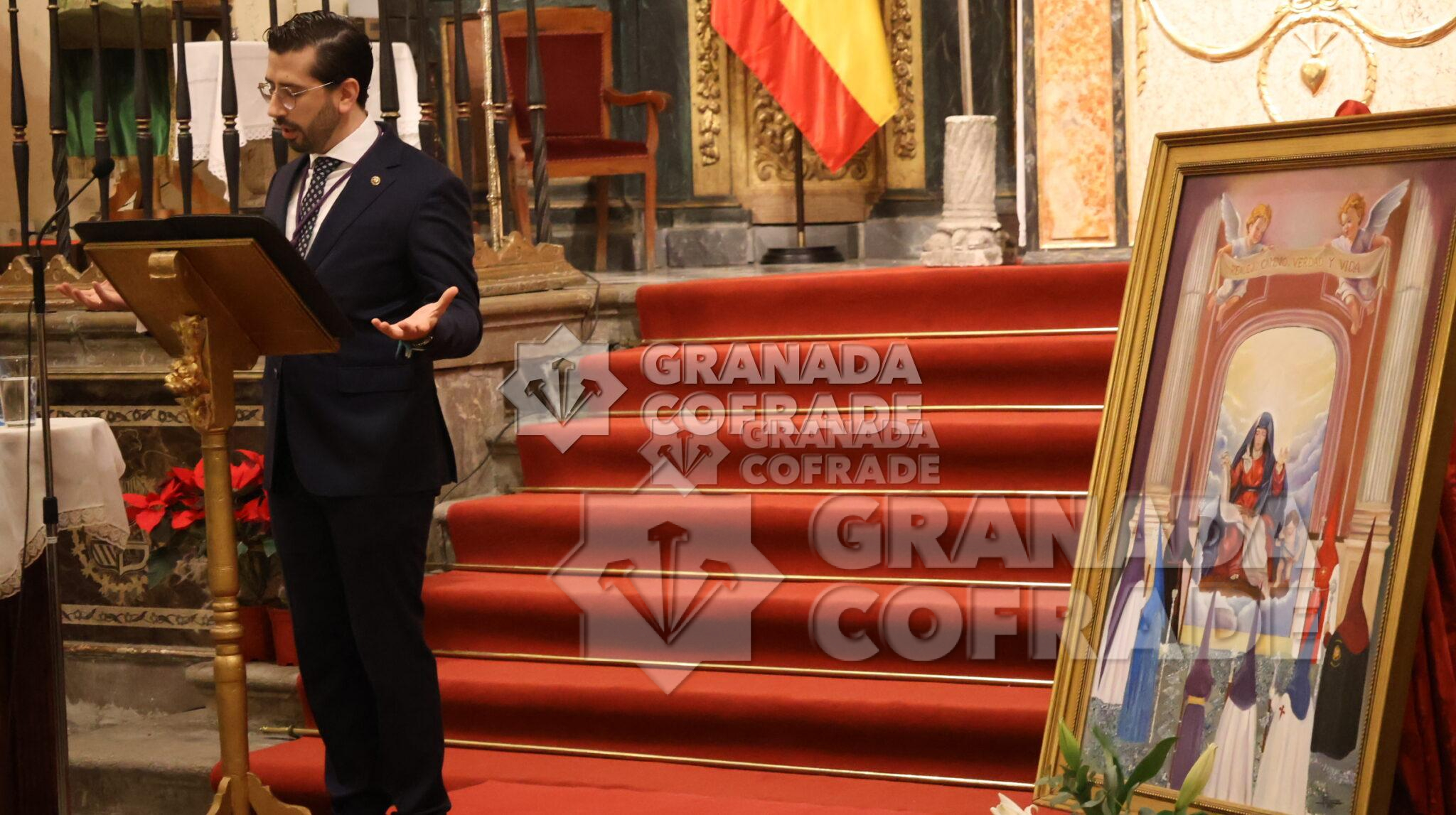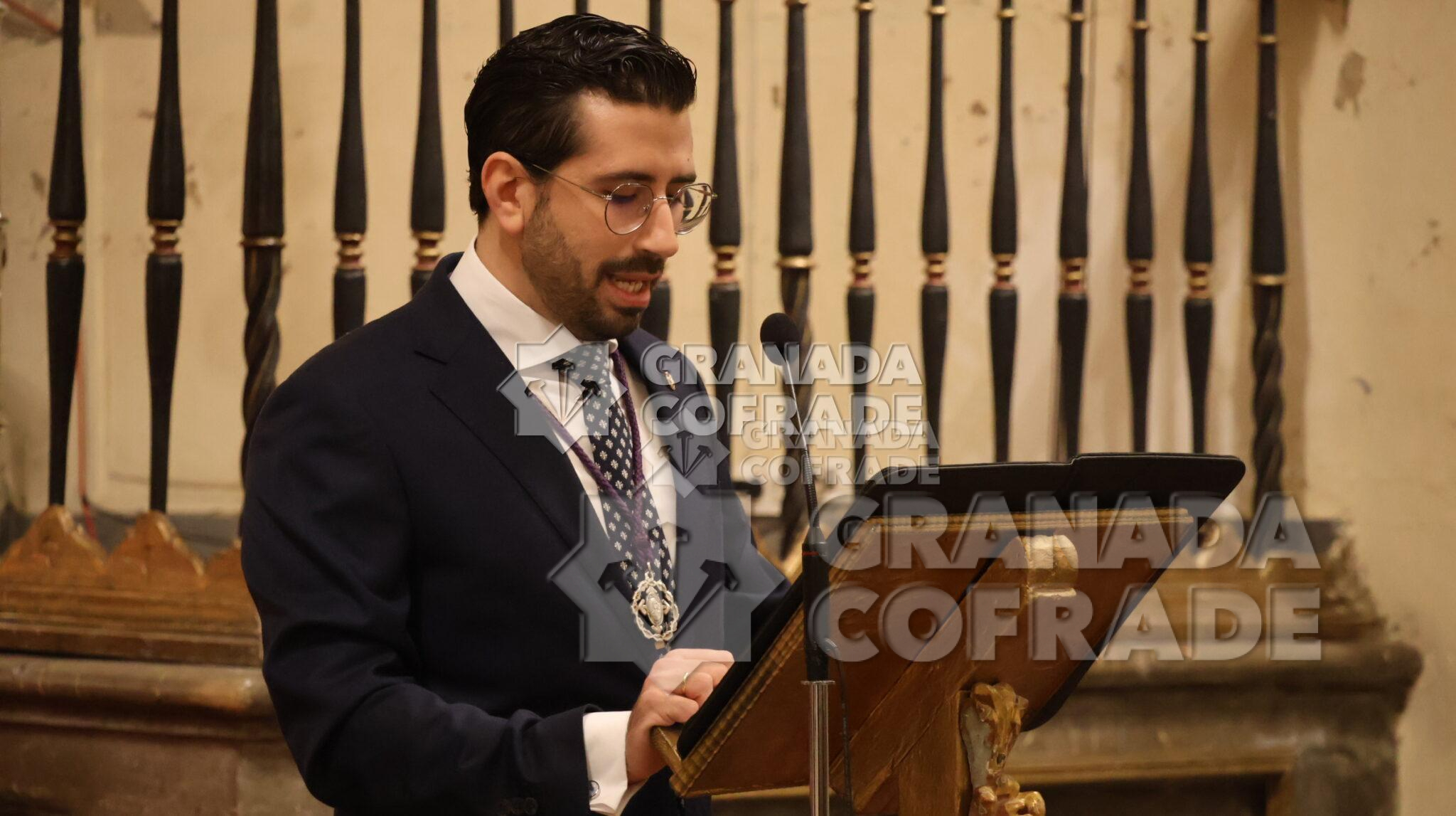 El presentador habló de la juventud del barrio «que tanto saben de escaleras alzadas en las tardes y madrugadas del Realejo de manos de grupos jóvenes que se afanan en engalanar el barrio para las extraordinarias» dijo que son «manos de jóvenes que trabajan durante todo el año para sus cofradías» recordando cada una de las estaciones penitenciales de las hermandades que pertenecen a las parroquias de San Cecilio, Santa María de la Alhambra, San Matías o Santo Domingo, poniendo en valor la vestimenta de la túnica nazarena de cada una de ellas, revistiéndose de anonimato para realizar las salidas de cada uno de los días y significó el trabajo de los costaleros bajo los pasos de las cofradías realejeñas, la devoción a los Titulares y la vida de hermandad «tan intensa que tenemos en el barrio», para recordar ligeramente todas las actividades que se dividen entre la parroquia, las capillas de cada cofradía, las casas de hermandad, las calles del barrio, centros culturales y todo tipo de actos «que sirven para hacer hermandad».