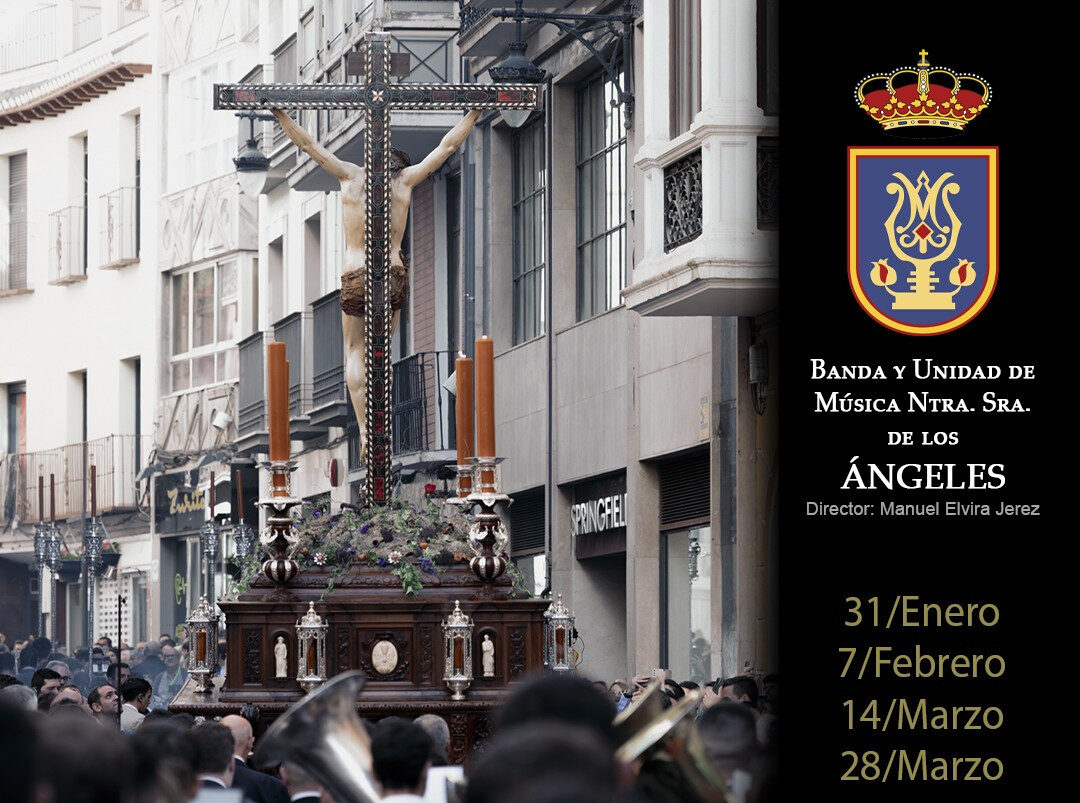La Banda y Unidad de música de los Ángeles, de Granada, bajo la dirección de Manuel Elvira ha dispuesto un año más la celebración de un ciclo de conciertos de marchas procesionales que este año tiene en el horizonte la celebración del centenario de la Federación de Cofradías. De esta manera la Banda y Unidad de Música “Nuestra Señora de los Ángeles” presenta su Ciclo de Conciertos de Marchas Procesionales donde exponer al público granadino lo más destacado de su repertorio. Cinco son los conciertos en la presente edición relacionados con las hermandades y cofradías a las que acompaña, incluyendo algunos ya tradicionales y alguna novedad.