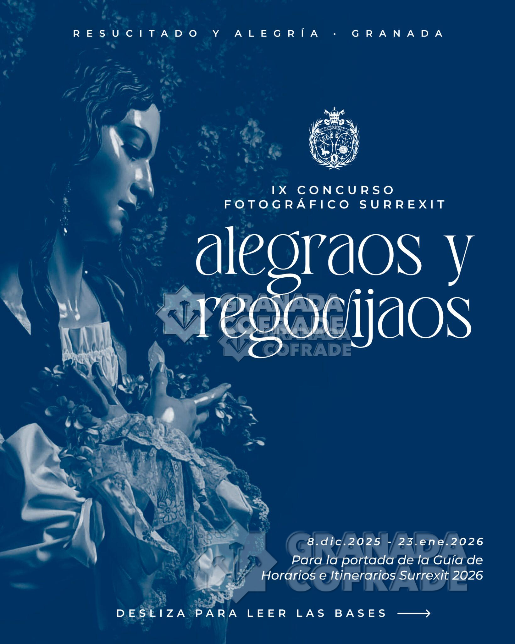 La Hermandad del Santísimo Cristo Resucitado y Nuestra Señora de la Alegría recuerda que hasta el próximo 23 de enero permanece abierto el plazo de recepción de fotografías para participar en el concurso destinado a la portada de la Guía de Horarios e Itinerarios de la hermandad correspondiente a este año.