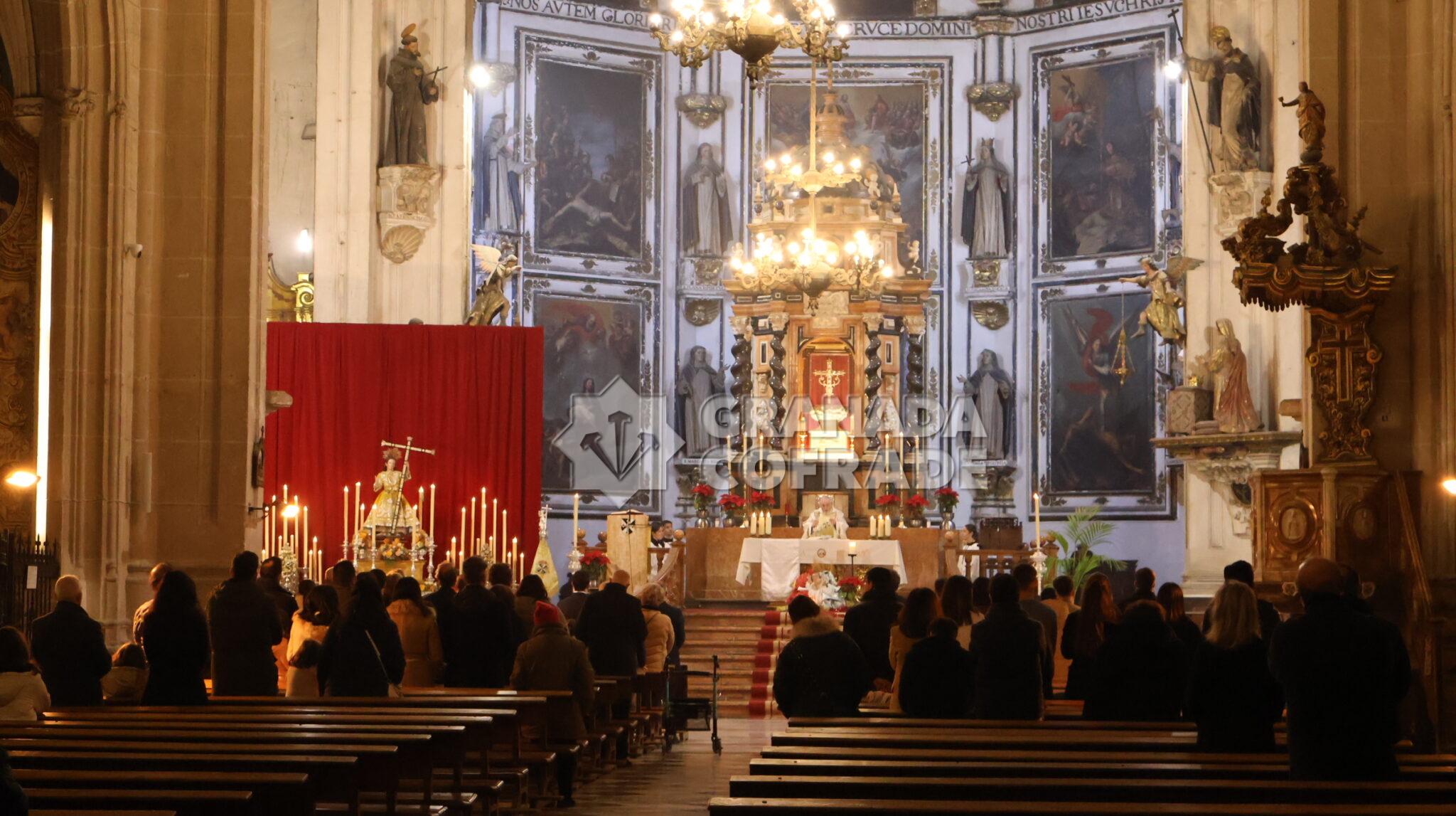 La Eucaristía en la festividad del Dulce Nombre de Jesús estuvo presidida por el consiliario de la hermandad y párroco del templo, fray Antonio Bueno y cantada por el coro de la Archicofradía de María Auxiliadora de la Alhambra, con sus clásicos villancicos para esta celebración tradicional de la cofradía del Martes Santo granadino.