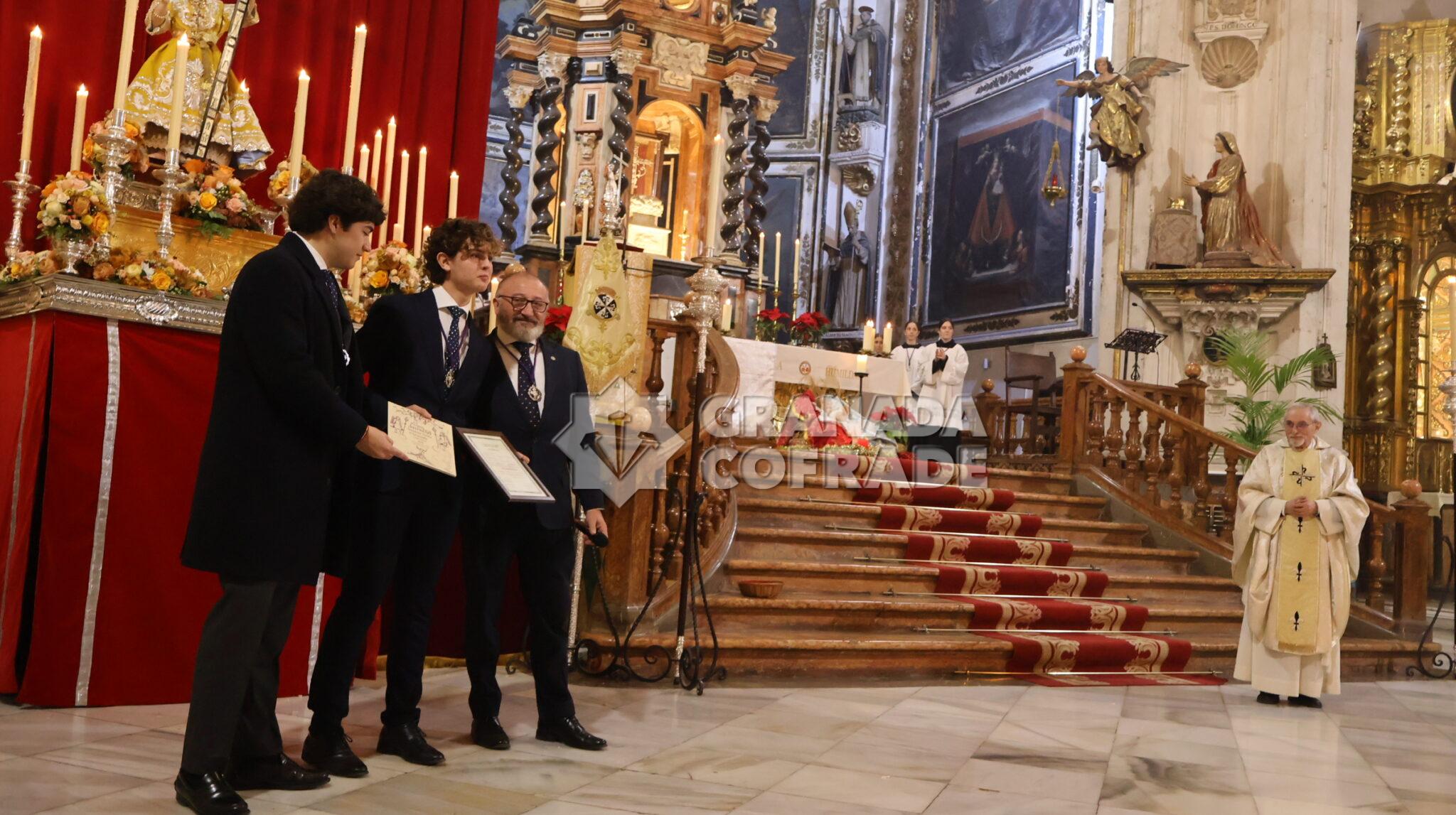 El pregonero recibió el nombramiento de manos del hermano mayor, Germán Bolívar, quien reconoció a nuestra redacción que «cada vez es más complejo nombrar a un pregonero porque es cierto que menores de dieciséis años no hay tanto, por eso en un cabildo reciente se ha aprobado que tenga la fecha tope de veinte años». Y Fernando Calero, con 16, «cumple todo lo que esperamos de él y de su formación cofrade para deleitarnos con un buen pregón», señaló el máximo responsable de la hermandad que estuvo acompañado por el vocal de juventud, Manuel Sánchez.