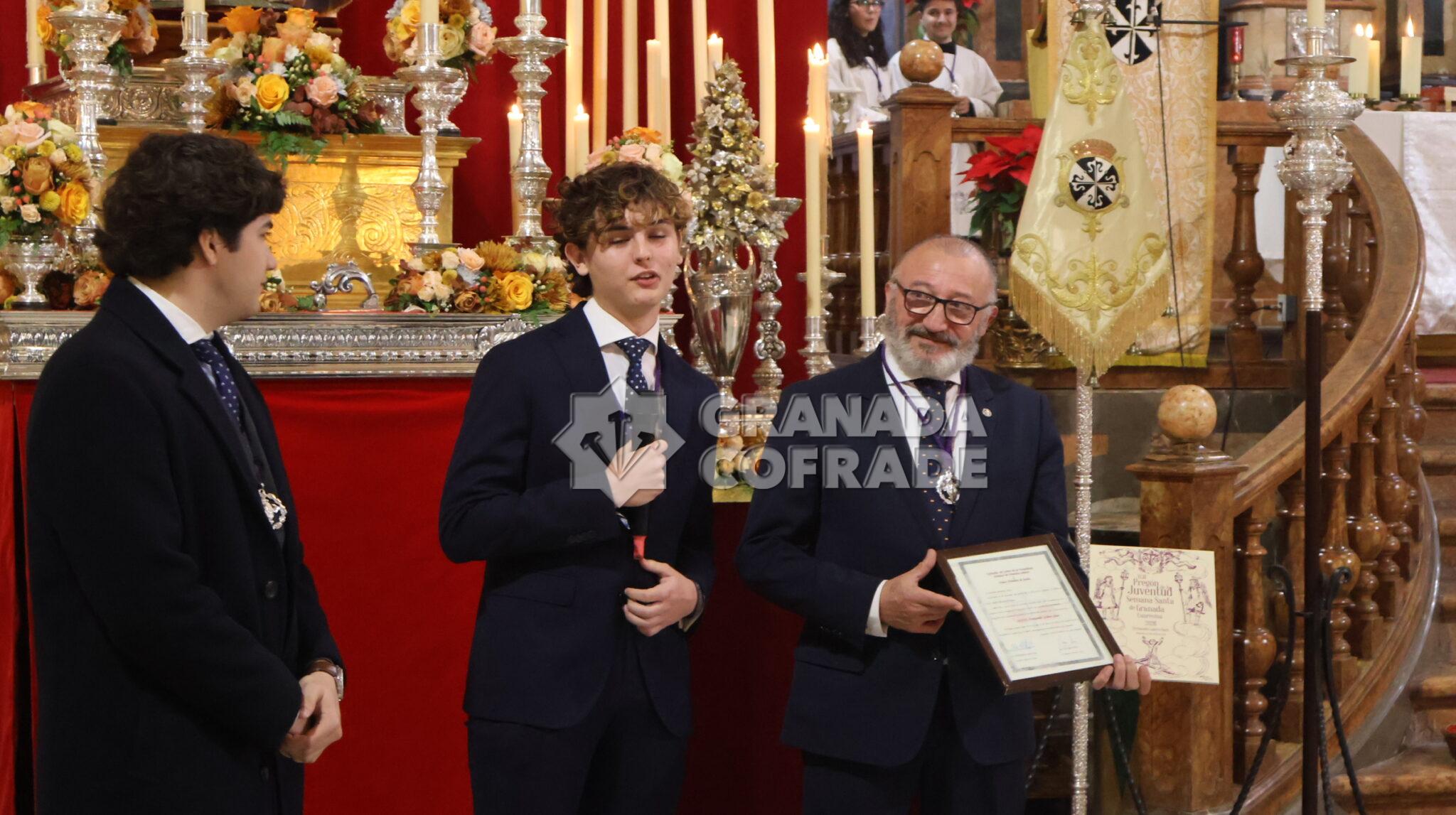 El pregonero recibió el nombramiento de manos del hermano mayor, Germán Bolívar, quien reconoció a nuestra redacción que «cada vez es más complejo nombrar a un pregonero porque es cierto que menores de dieciséis años no hay tanto, por eso en un cabildo reciente se ha aprobado que tenga la fecha tope de veinte años». Y Fernando Calero, con 16, «cumple todo lo que esperamos de él y de su formación cofrade para deleitarnos con un buen pregón», señaló el máximo responsable de la hermandad que estuvo acompañado por el vocal de juventud, Manuel Sánchez.