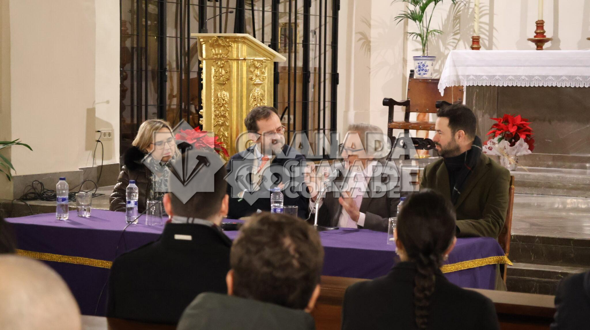 «Yo estoy en el momento en el que escucho los clarines todos los días», señaló Tito Ortiz en su intervención en la mesa redonda que mantuvo con dos anteriores pregoneros de la Semana Santa granadina. La cita la realizó por vez primera la cofradía de Nuestro Padre Jesús Nazareno en su sede de templo de San José de la comunidad de Carmelitas Descalzas. Le acompañaban los pregoneros de 2023, Luis Javier López, y de 2025, Mamen Sánchez. Los dos mostraron su admiración y cariño hacia el pregonero de la Semana Santa de este año en esta cita que reunió a otros pregoneros entre el público. Estaban Emilia Cayuela, Fernando Egea, Luis Recuerda, y Cecilio Cabello, además del presidente de la Federación de Cofradías y hermanos mayores de cofradías del Miércoles Santo; del Rosario, Antonio Martín, y del Consuelo, Elena Martínez.