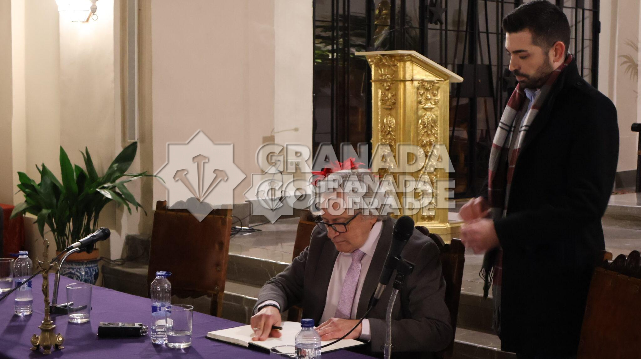 Concluyó la mesa redonda de una hora de duración con la firma en el Libro de Honor de la cofradía de Jesús Nazareno por parte del pregonero quien se mostró muy satisfecho de volver a encontrase en esta cofradía de la que fue parte de su fundación. En sus palabras últimas también relató alguna enécdota vivida personalmente durante la realización de la imagen de Nuestro Padre Jesús Nazareno.