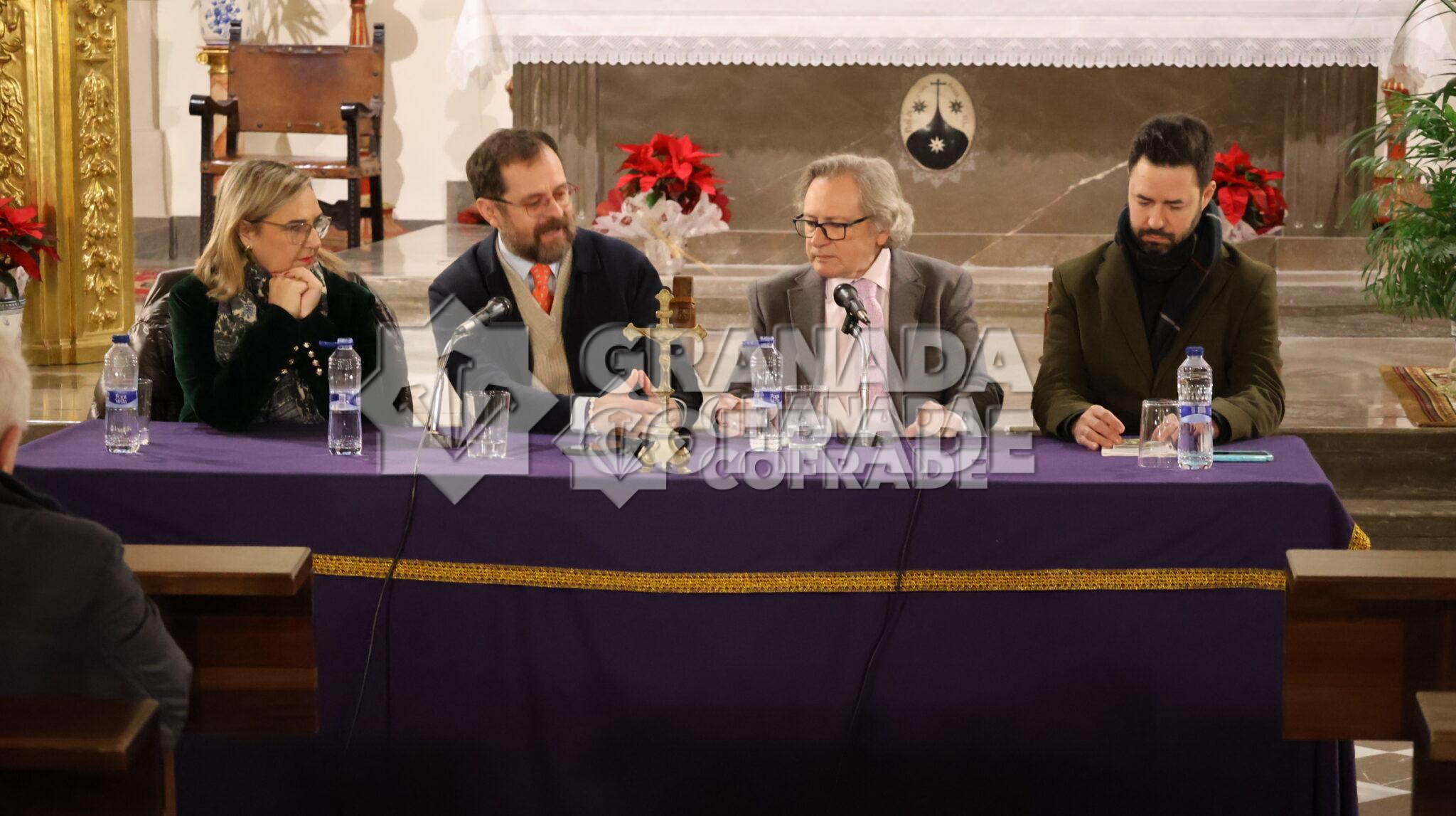 «Yo estoy en el momento en el que escucho los clarines todos los días», señaló Tito Ortiz en su intervención en la mesa redonda que mantuvo con dos anteriores pregoneros de la Semana Santa granadina. La cita la realizó por vez primera la cofradía de Nuestro Padre Jesús Nazareno en su sede de templo de San José de la comunidad de Carmelitas Descalzas. Le acompañaban los pregoneros de 2023, Luis Javier López, y de 2025, Mamen Sánchez. Los dos mostraron su admiración y cariño hacia el pregonero de la Semana Santa de este año en esta cita que reunió a otros pregoneros entre el público. Estaban Emilia Cayuela, Fernando Egea, Luis Recuerda, y Cecilio Cabello, además del presidente de la Federación de Cofradías y hermanos mayores de cofradías del Miércoles Santo; del Rosario, Antonio Martín, y del Consuelo, Elena Martínez.