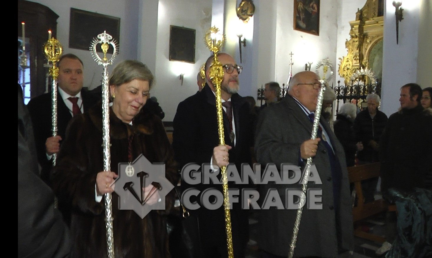 Día de especial relevancia en la hermandad del Santísimo Cristo de los Favores y María Santísima de la Misericordia. Ante la imagen de la Virgen de la Paz, Titular de la Hermandad Sacramental con la que está fusionada y que presidía la función solemne en el altar mayor de San Cecilio, tomaron posesión los nuevos Mayordomos Sacramentales de esta hermandad de penitencia. Es la de este carácter más antigua de las de Granada, fusionada con una Sacramental y para este año la representarán el reconocido cofrade y capataz José Carvajal Gálvez y su esposa, Ana María Linares.