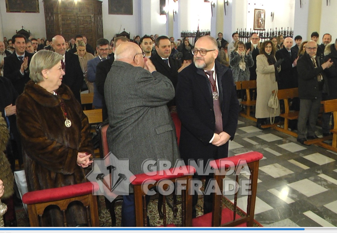 Día de especial relevancia en la hermandad del Santísimo Cristo de los Favores y María Santísima de la Misericordia. Ante la imagen de la Virgen de la Paz, Titular de la Hermandad Sacramental con la que está fusionada y que presidía la función solemne en el altar mayor de San Cecilio, tomaron posesión los nuevos Mayordomos Sacramentales de esta hermandad de penitencia. Es la de este carácter más antigua de las de Granada, fusionada con una Sacramental y para este año la representarán el reconocido cofrade y capataz José Carvajal Gálvez y su esposa, Ana María Linares.