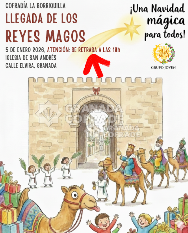 Desde la cofradía del Domingo de Ramos animan «a vivir desde primera hora de la mañana el Día de Reyes junto a la Cofradía con la carroza de la Borriquilla, la Carroza de la Ilusión en la Cabalgata organizada por el Ayuntamiento de Granada y luego con la visita a la iglesia de San Andrés».