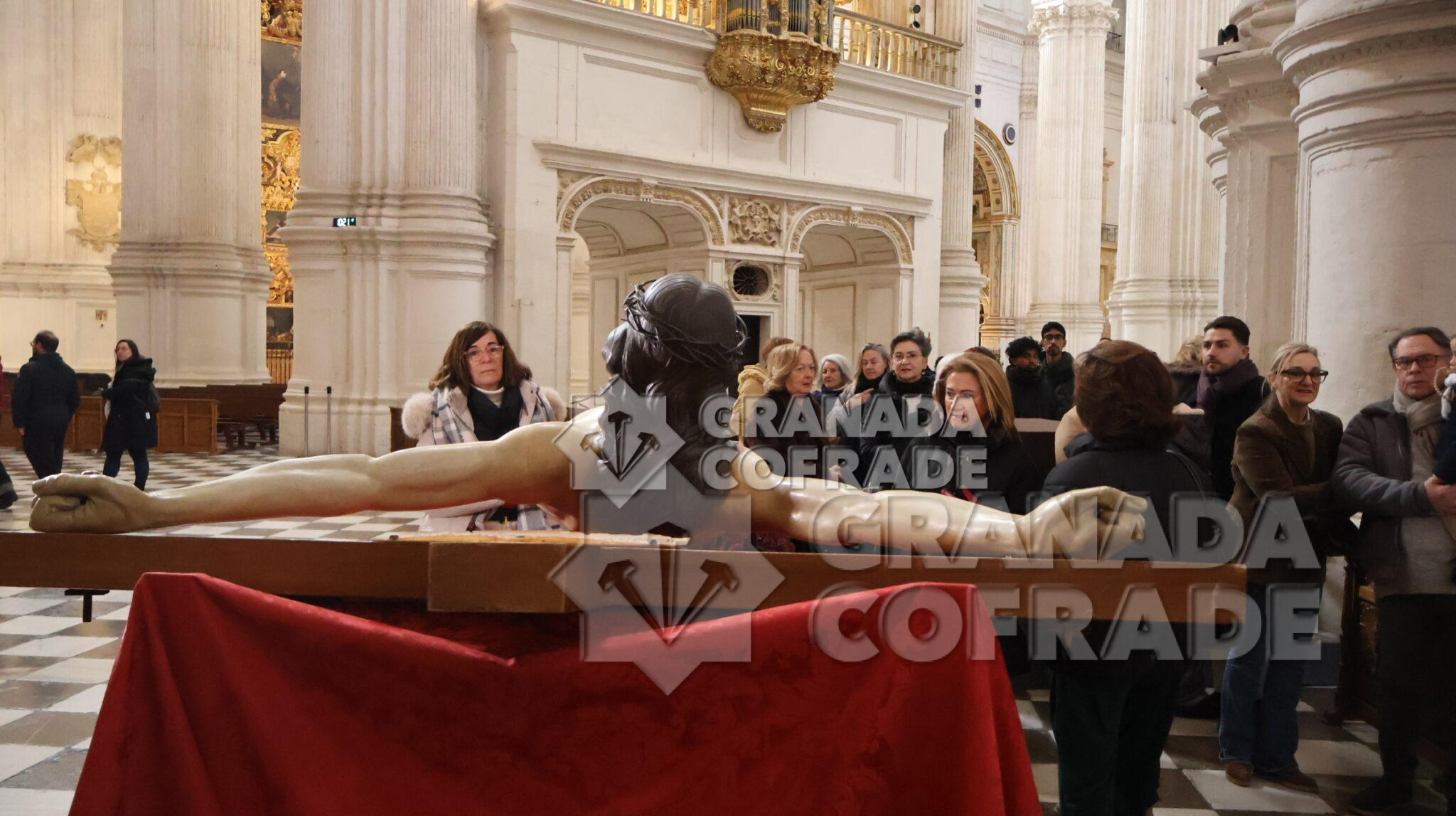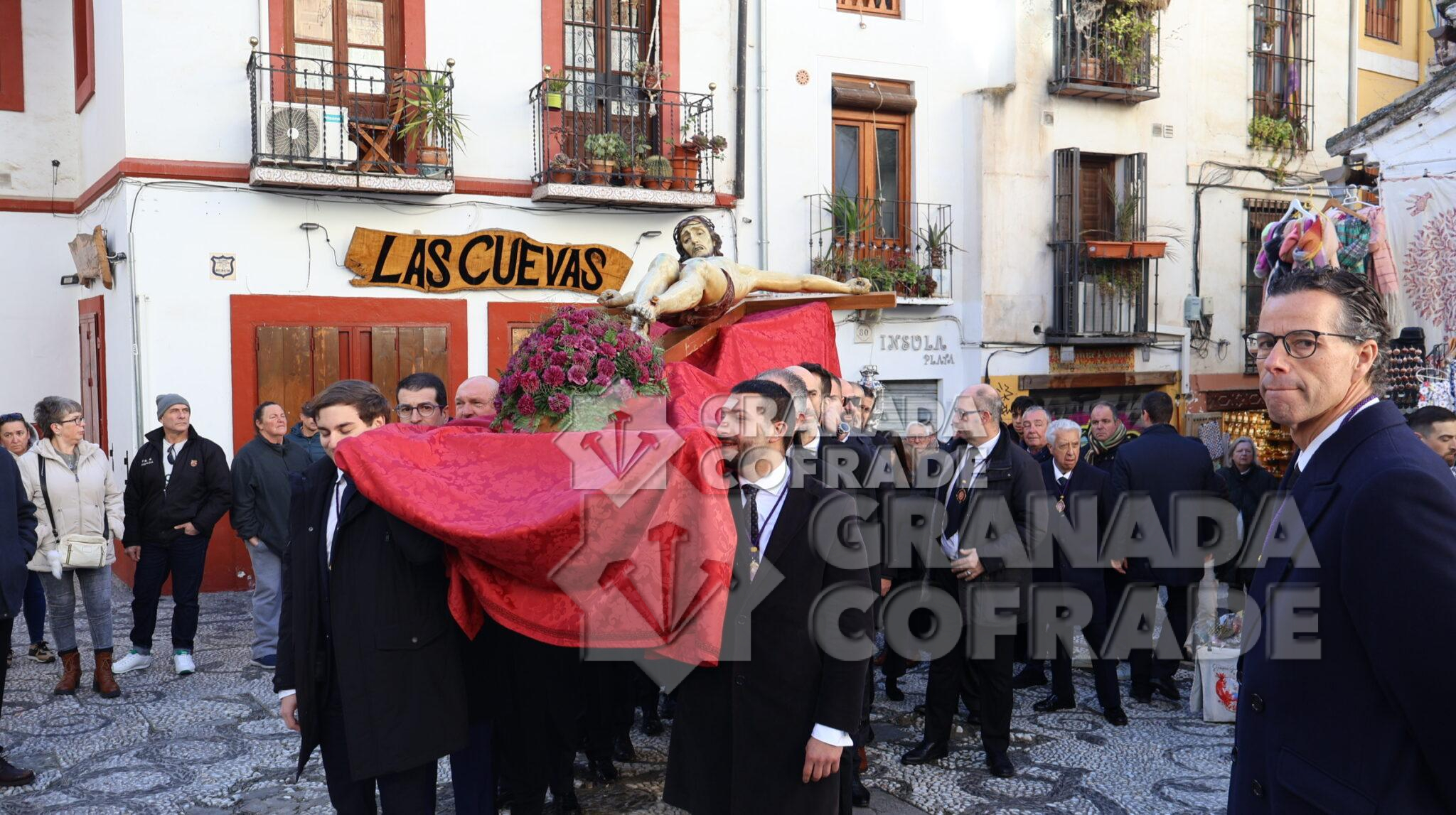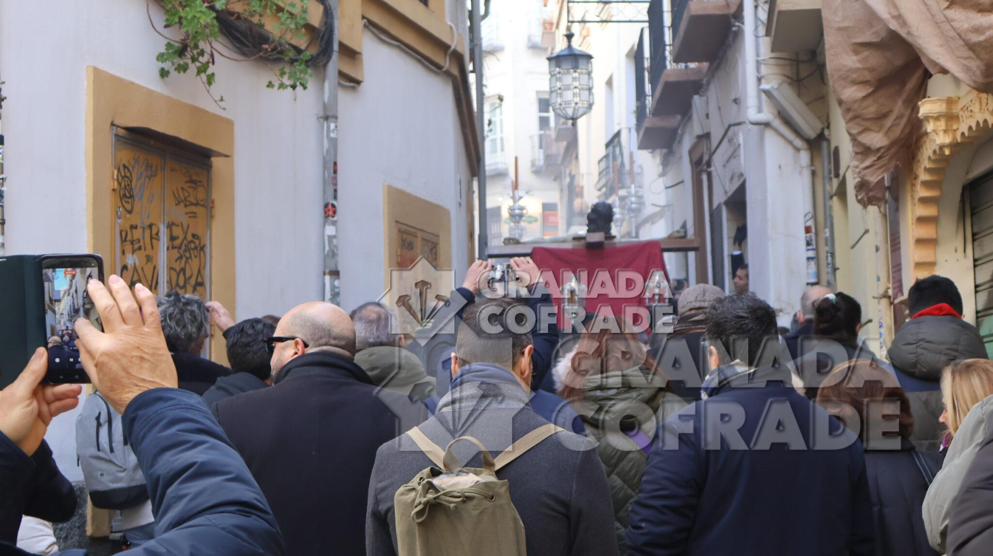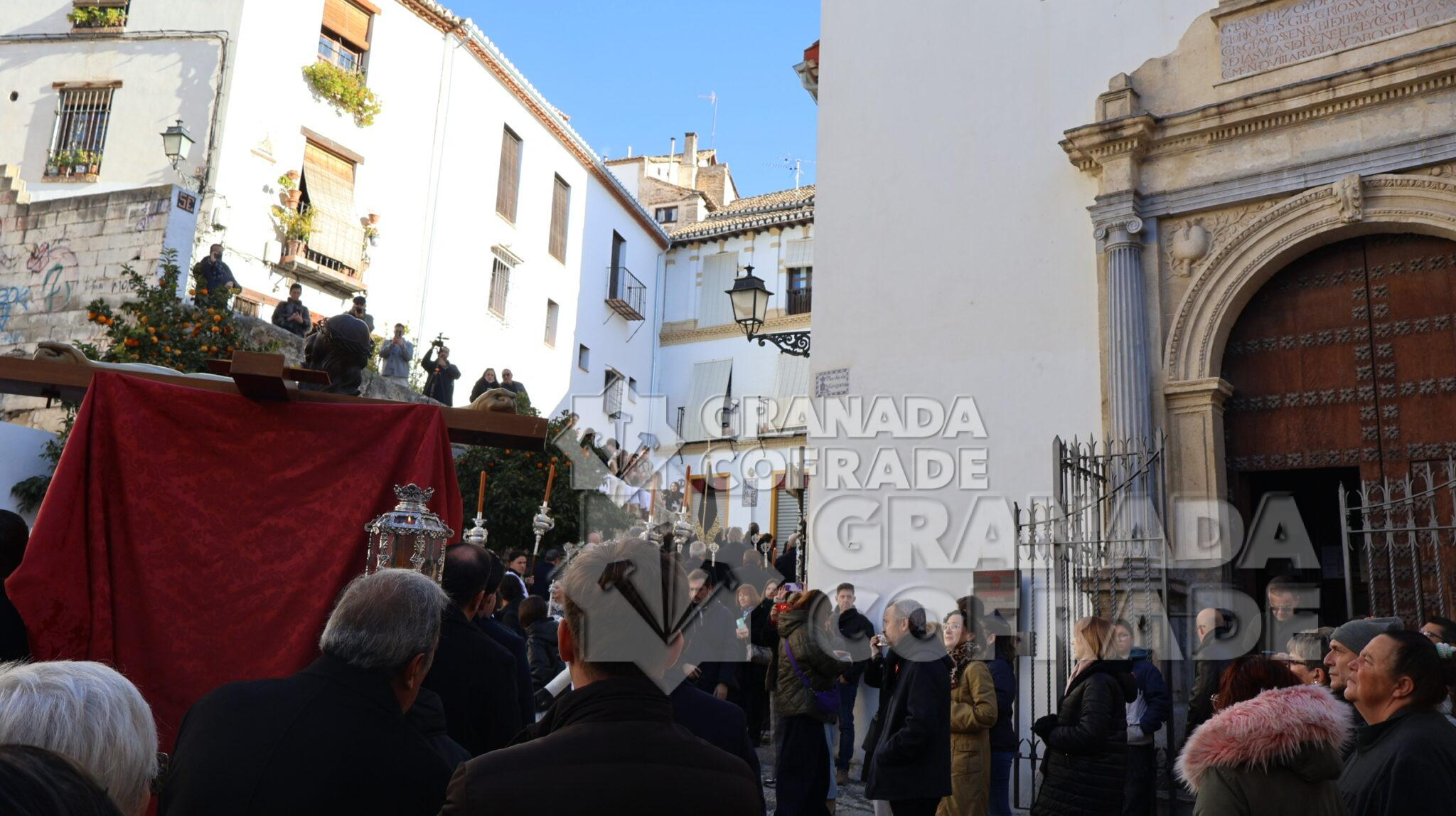 La imagen del Crucificado de la Misericordia, vulgo El Silencio, regresó envuelta en el clásico recogimiento y silencio que siempre rodea a esta imagen cuando se hace a las calles de Granada. El motivo, el final del Año Jubilar Peregrinos de Esperanza que se ha venido celebrando en la Catedral durante todo 2025 y su presencia en el presbiterio de la Seo granadina. En el interior de la Catedral queda aún la imagen original de José de Mora «que regresara por medios mecánicos y trasladado por la empresa que ha diseñado la muestra «José de Mora: la espiritualidad del Barroco», como indicó la hermana mayor de esta cofradía a nuestra redacción. Dieciocho parejas de hermanos formaban en el cortejo procesional que discurrió de manera ágil por calle Cárcel Baja, Pasaje Diego de Siloé, Gran Vía, Almireceros y siguió para subir a su barrio por la calle Calderería Vieja, Calderería Nueva y Cuesta de San Gregorio hasta los Grifos de San José y por la placeta de San José a su sede parroquial.