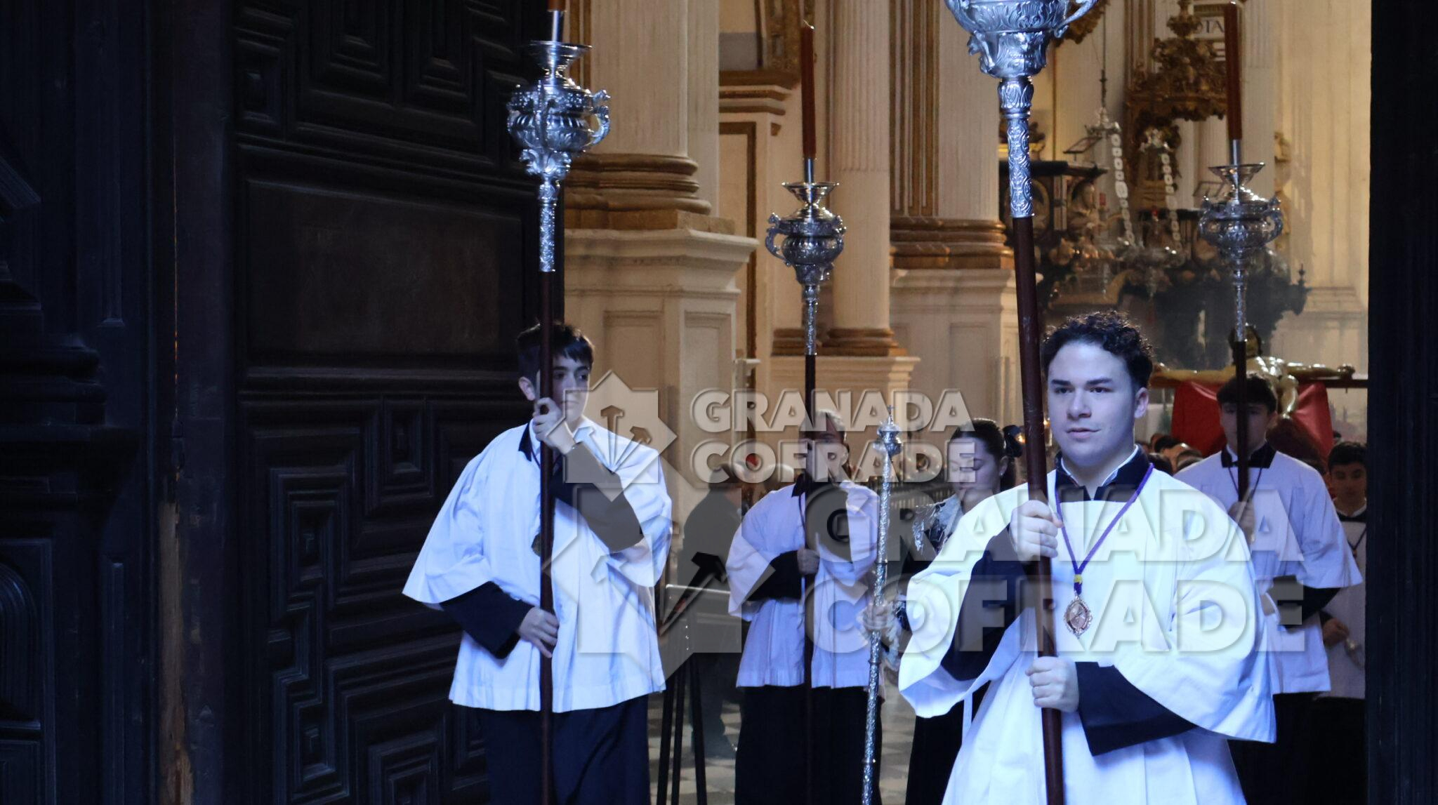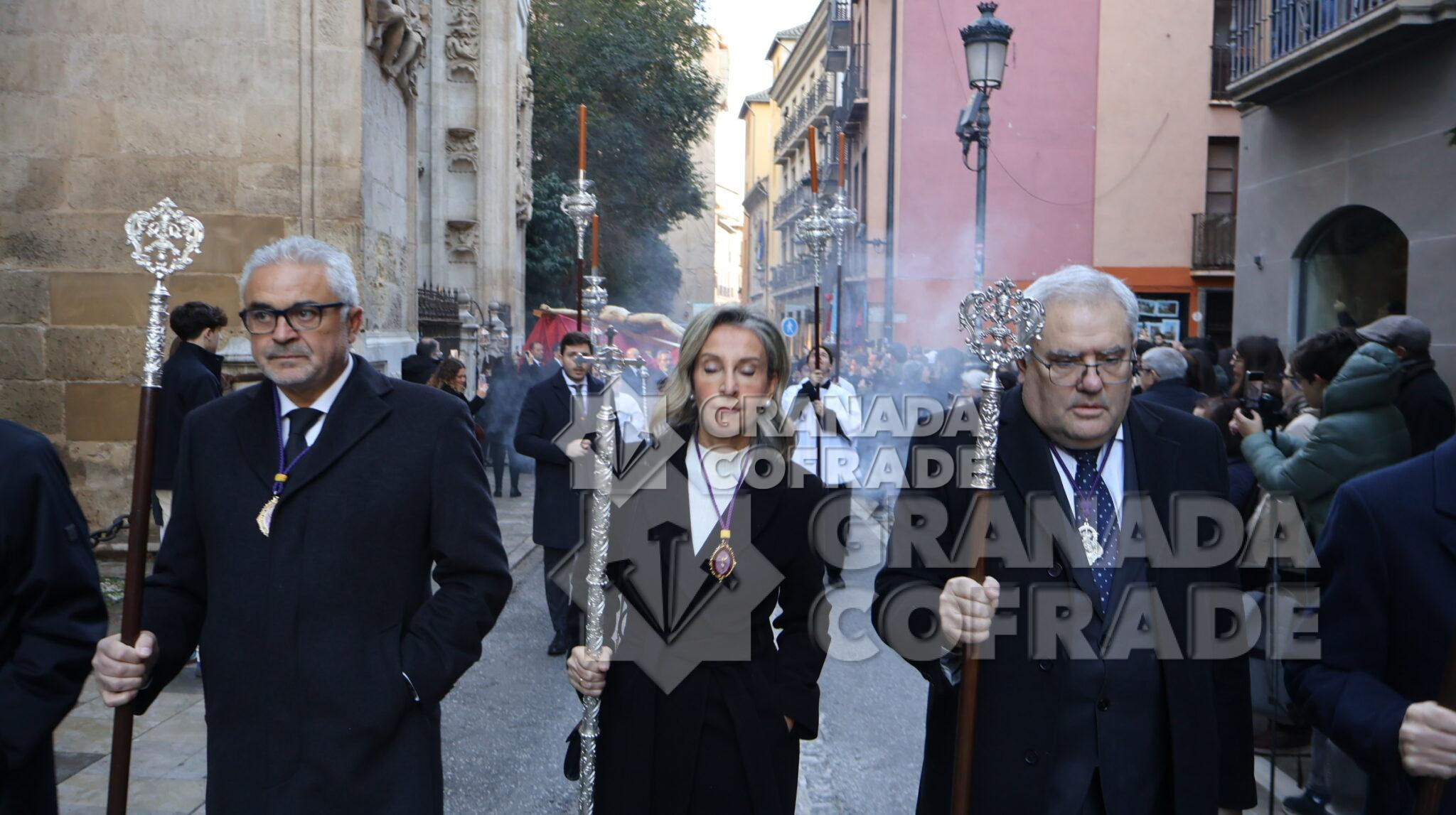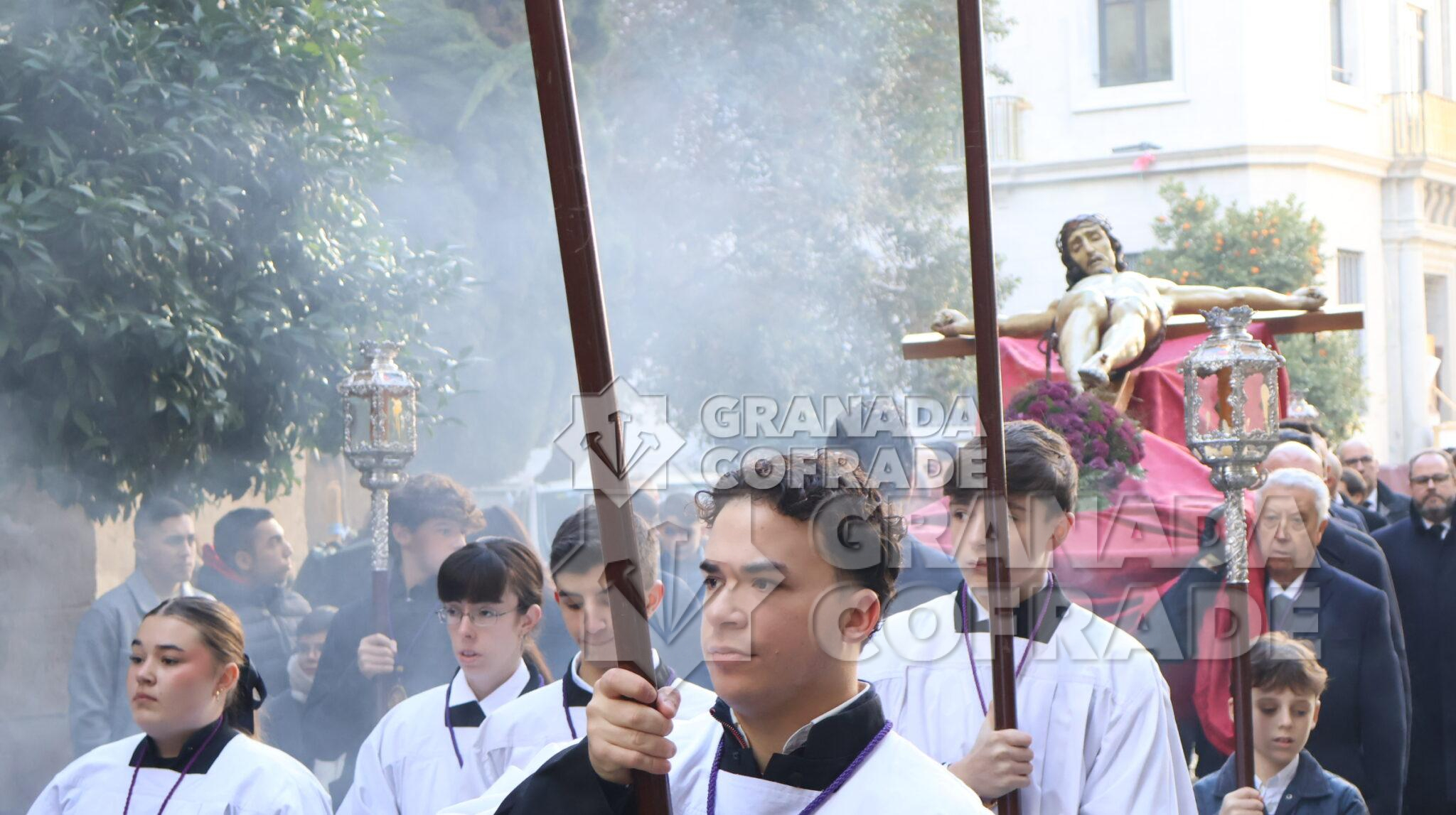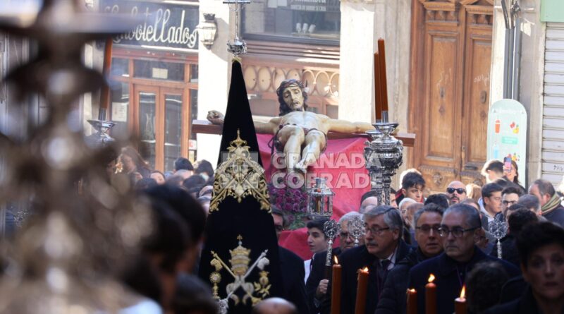 La imagen del Crucificado de la Misericordia, vulgo El Silencio, regresó envuelta en el clásico recogimiento y silencio que siempre rodea a esta imagen cuando se hace a las calles de Granada. El motivo, el final del Año Jubilar Peregrinos de Esperanza que se ha venido celebrando en la Catedral durante todo 2025 y su presencia en el presbiterio de la Seo granadina. En el interior de la Catedral queda aún la imagen original de José de Mora «que regresara por medios mecánicos y trasladado por la empresa que ha diseñado la muestra «José de Mora: la espiritualidad del Barroco», como indicó la hermana mayor de esta cofradía a nuestra redacción. Dieciocho parejas de hermanos formaban en el cortejo procesional que discurrió de manera ágil por calle Cárcel Baja, Pasaje Diego de Siloé, Gran Vía, Almireceros y siguió para subir a su barrio por la calle Calderería Vieja, Calderería Nueva y Cuesta de San Gregorio hasta los Grifos de San José y por la placeta de San José a su sede parroquial.