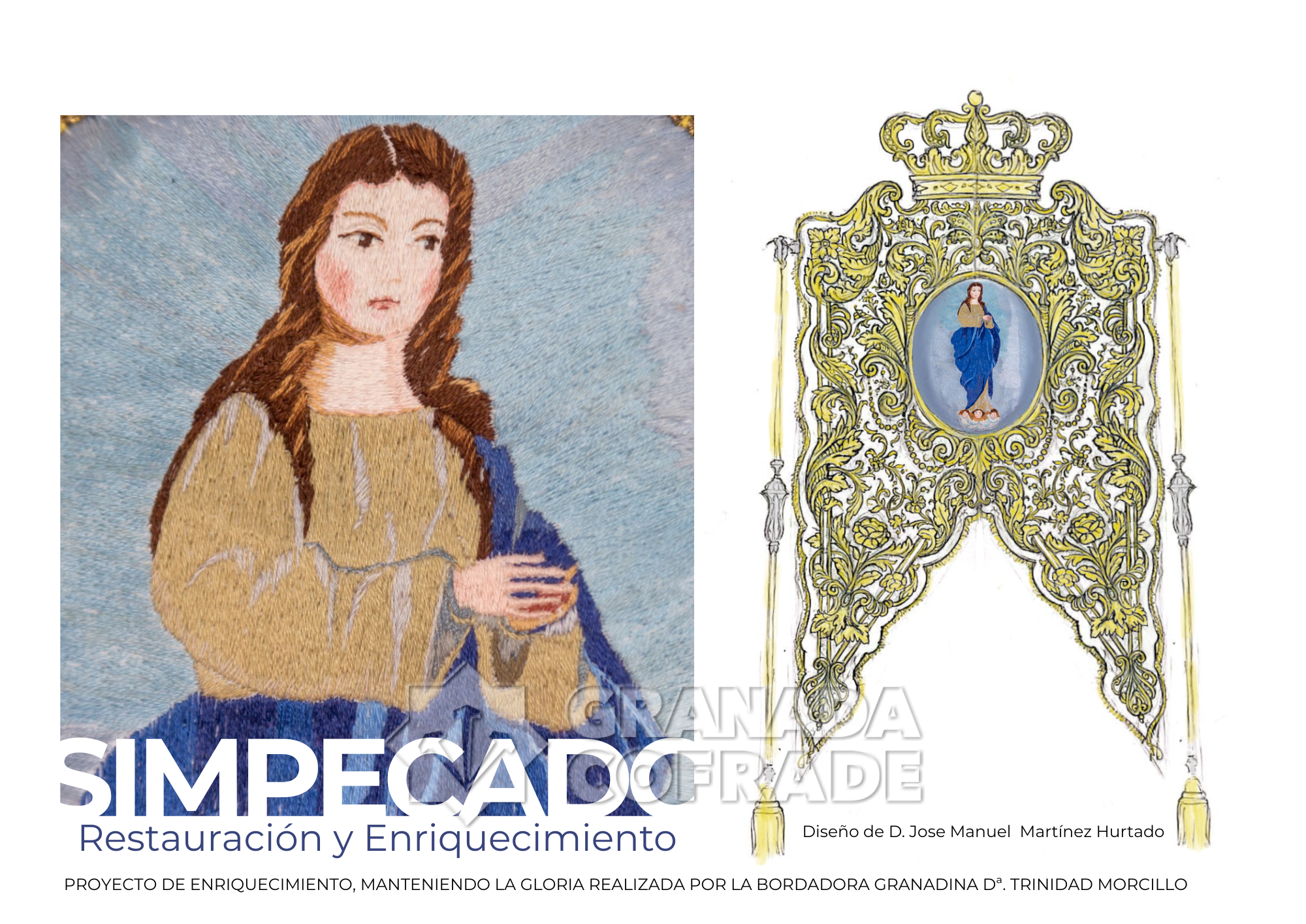 Con el propósito de enriquecer el patrimonio la cofradía de Nuestra Señora de los Dolores, y tras su aprobación en Cabildo General Ordinario, se presenta el proyecto de conservación y enriquecimiento del Simpecado, que será llevado a cabo por el taller de bordados Martínez Hurtado, de nuestra ciudad. El proyecto consiste en enriquecer el actual Simpecado, manteniendo y restaurando la gloria original realizada por la reconocida bordadora granadina Trinidad Morcillo y que representa en sedas a la Purísima Concepción de María.