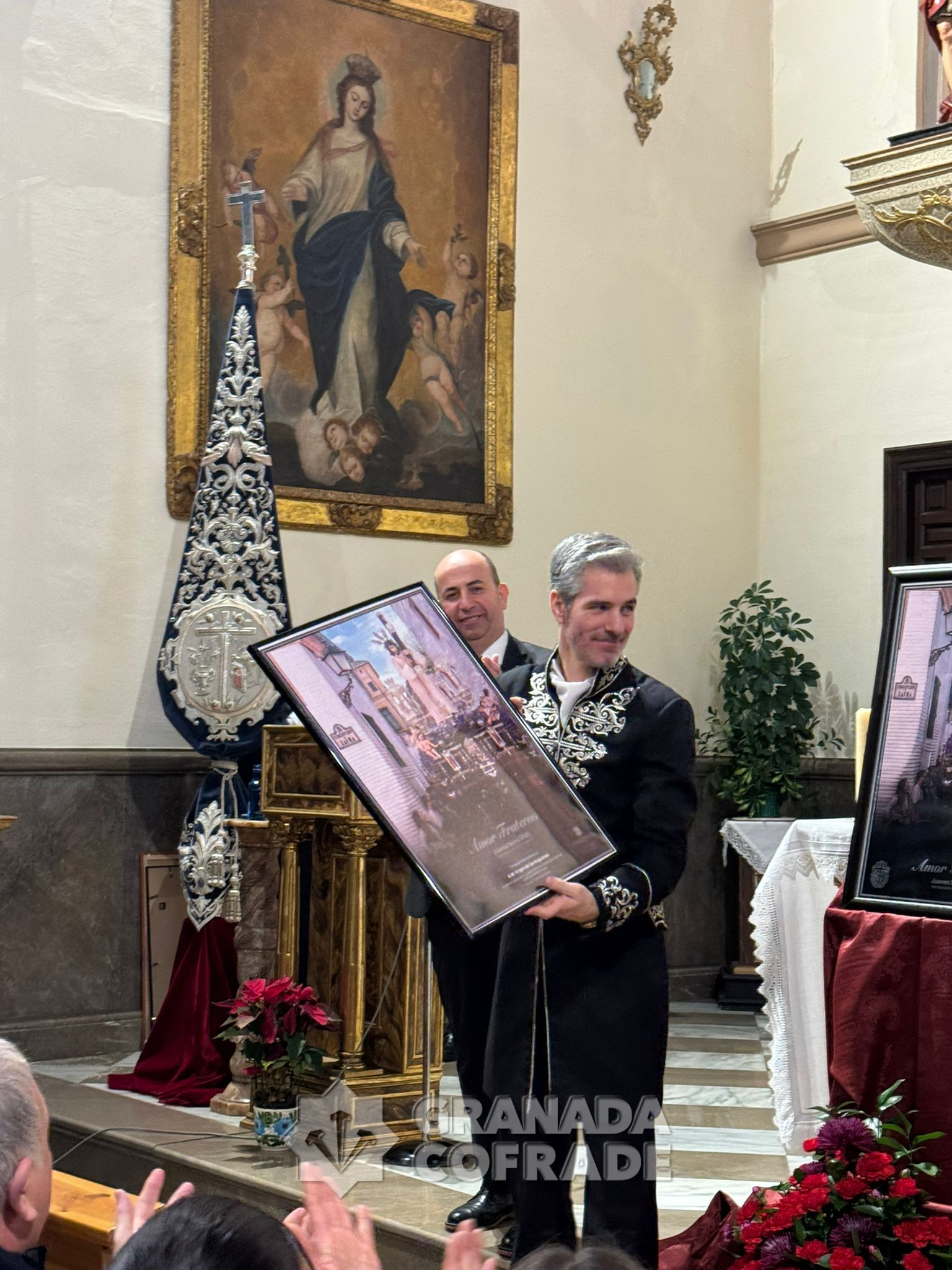 Al final del acto se entregaron recuerdos al autor de la fotografía, Luis Javier Quesada y al autor de la portada de la guía que horarios que publicará esta hermandad, José Velasco. También el director de la formación musical y varios hermanos participantes en esta convocatoria de la cofradía de la Concepción.