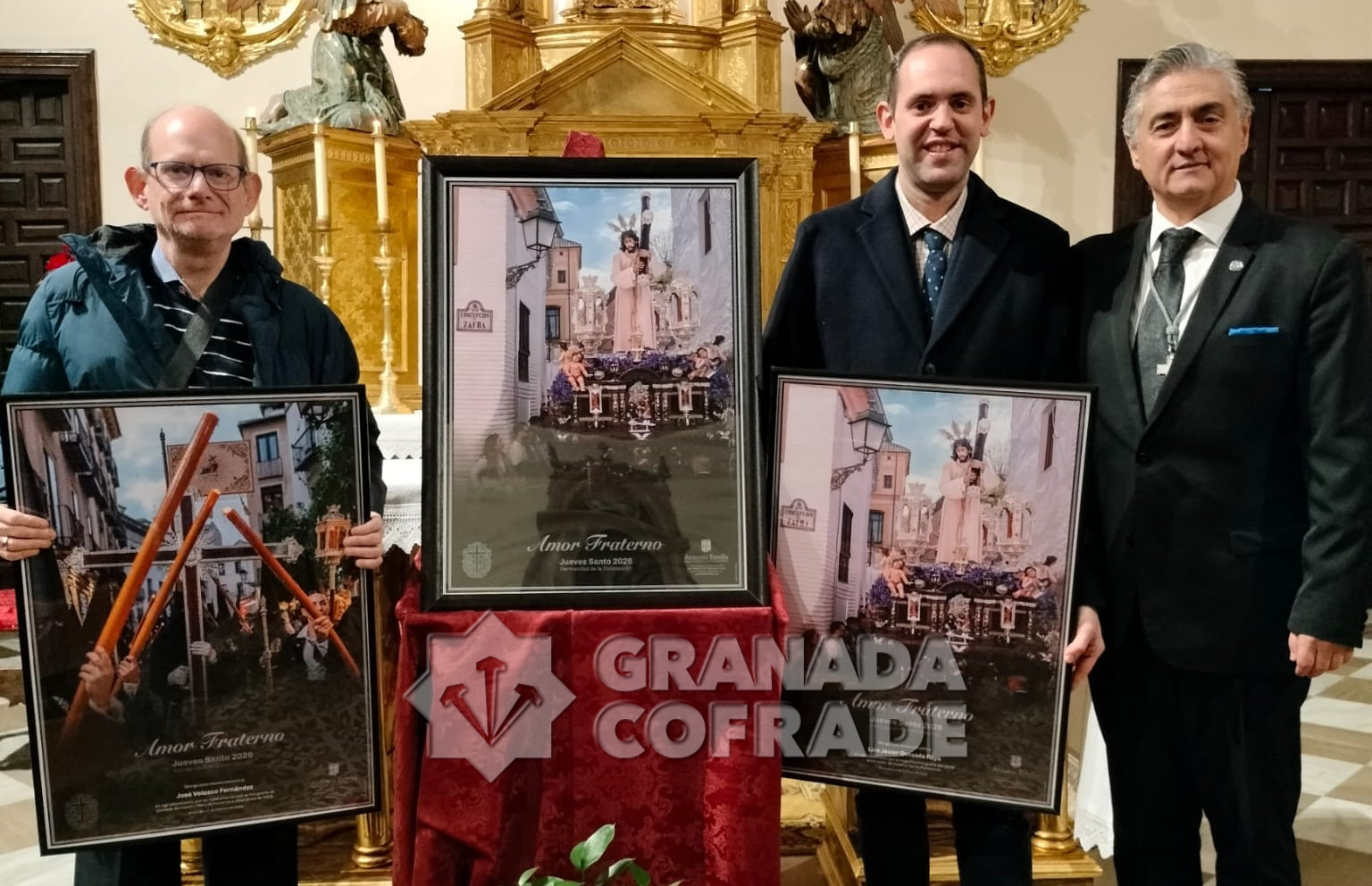 Luis Javier Quesada Raya es el autor del cartel que ayer presentó Javier Peláez, ex hermano mayor de la cofradía de Jesús del Amor y la Entrega en su sede canónica. Una presentación que emocionó a los hermanos de esta cofradía del Bajo Albaicín y que preside Jesús del Amor y la Entrega en la calle Portería de la Concepción justo antes de variar hacia Concepción de Zafra. Está reflejado «nuestro Titular que se pasea por Granada al compás del rezo de los pies de tus costaleros, al llegar a tu calle, enseñando que cada uno ha de abrazar fuerte su cruz, con alegría y fe», indicó el presentador en sus palabras de presentación, que, además, fue salpicando con fragmentos de marchas procesionales como «Saeta», «Camino a la Concepción» o «Sanctus».