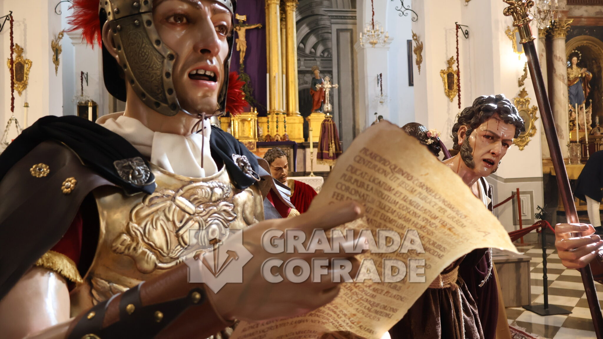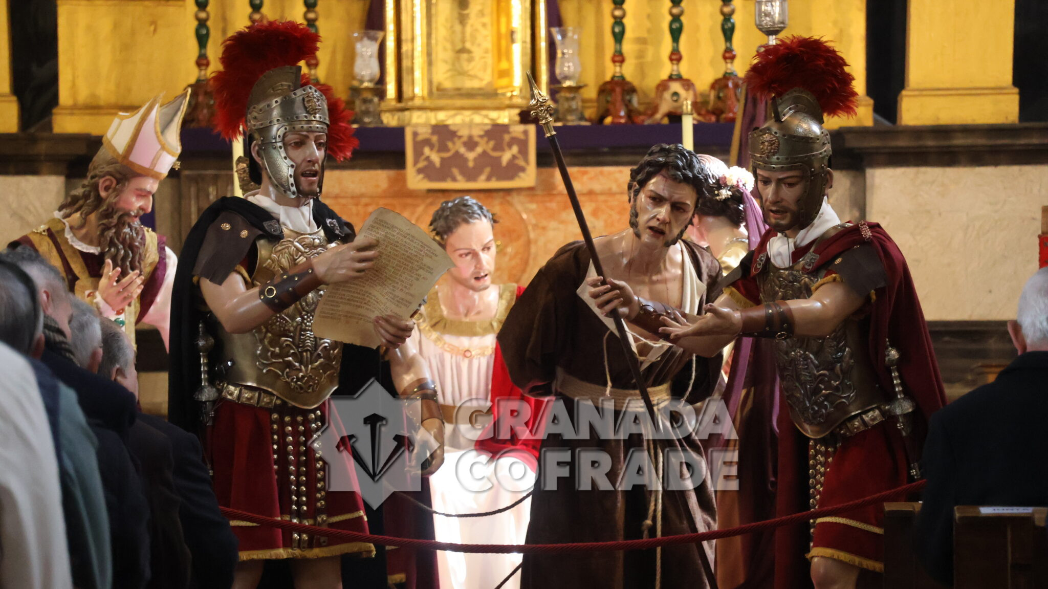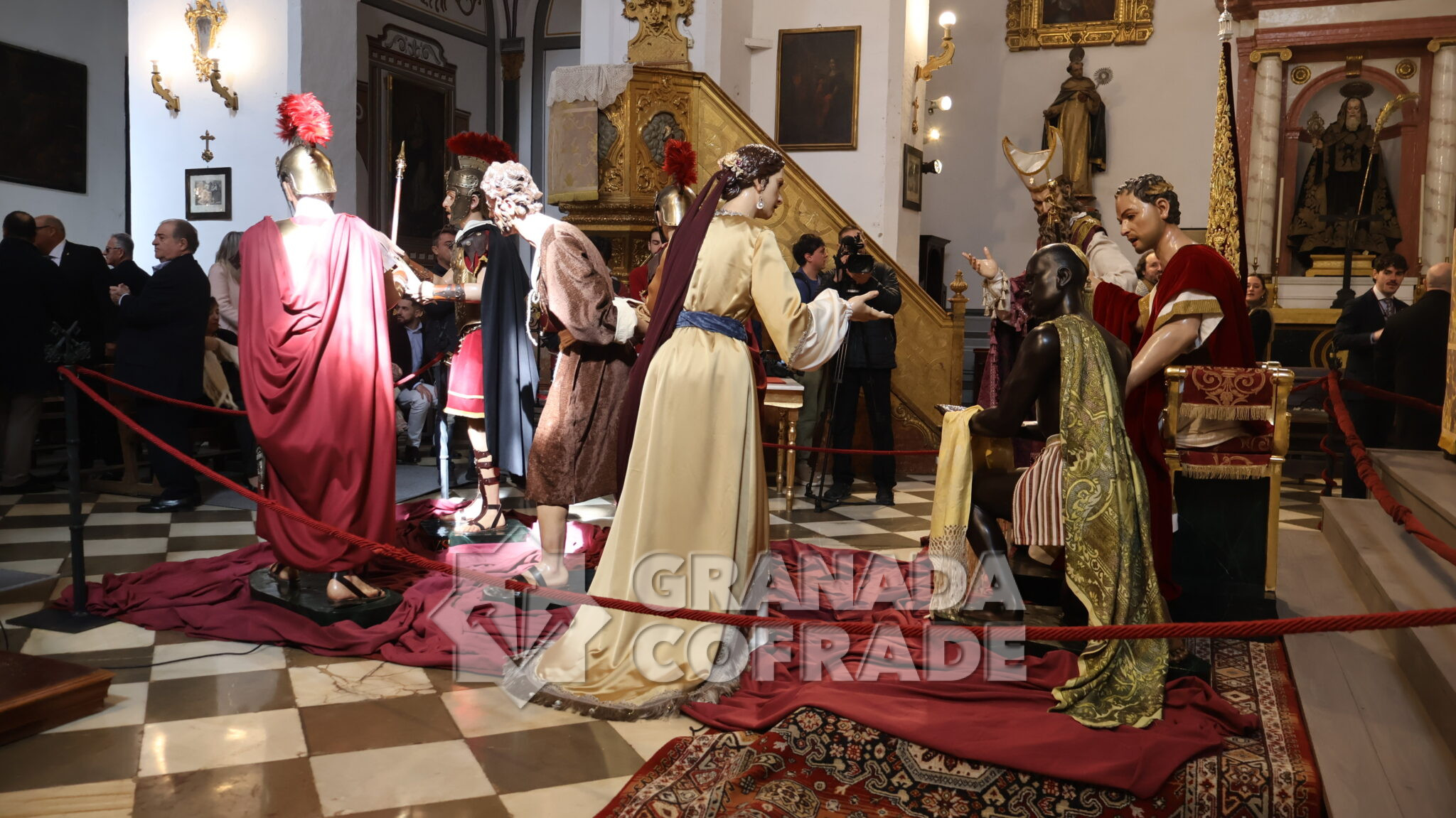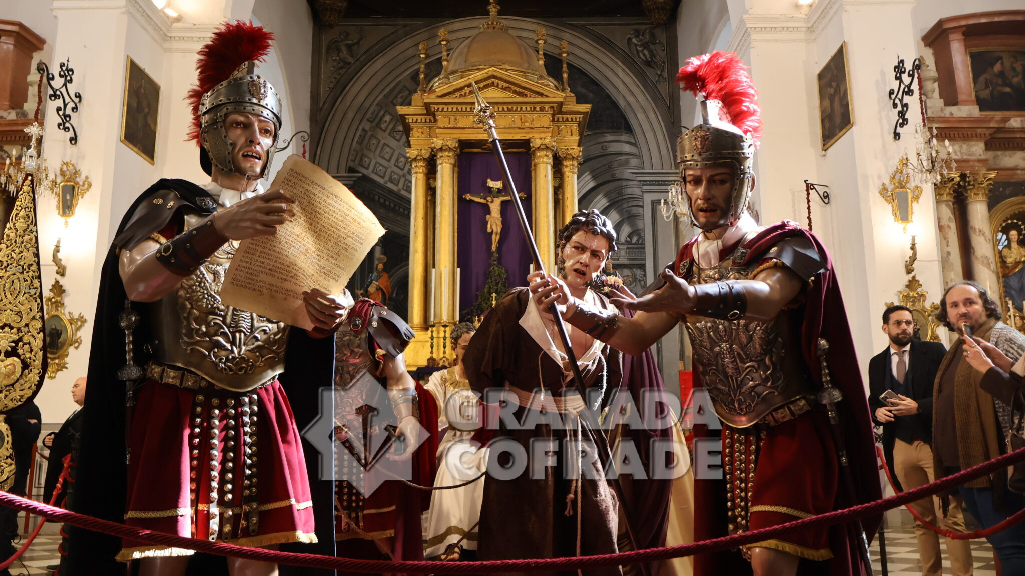 Uno de los estrenos más sobresalientes de este año en los días de Semana Santa es el las nuevas figuras del misterio de Jesús de la Sentencia. En el mediodía de ayer se presentó, por el comunicador e historiador David Rodríguez el grupo de figuras que acompañarán a Jesús de la Sentencia tras 65 años con las primitivas figuras, obra del taller de Benito Barbero Medina y de sus hijos en 1961. Ahora se descubría el trabajo que se ha estado esperando desde hace ocho años y del que su autor, Israel Cornejo, se siente «muy satisfecho por el comportamiento de la hermandad para conmigo al que yo he tratado de corresponder siempre», señaló a la redacción de GRANADA COFRADE.