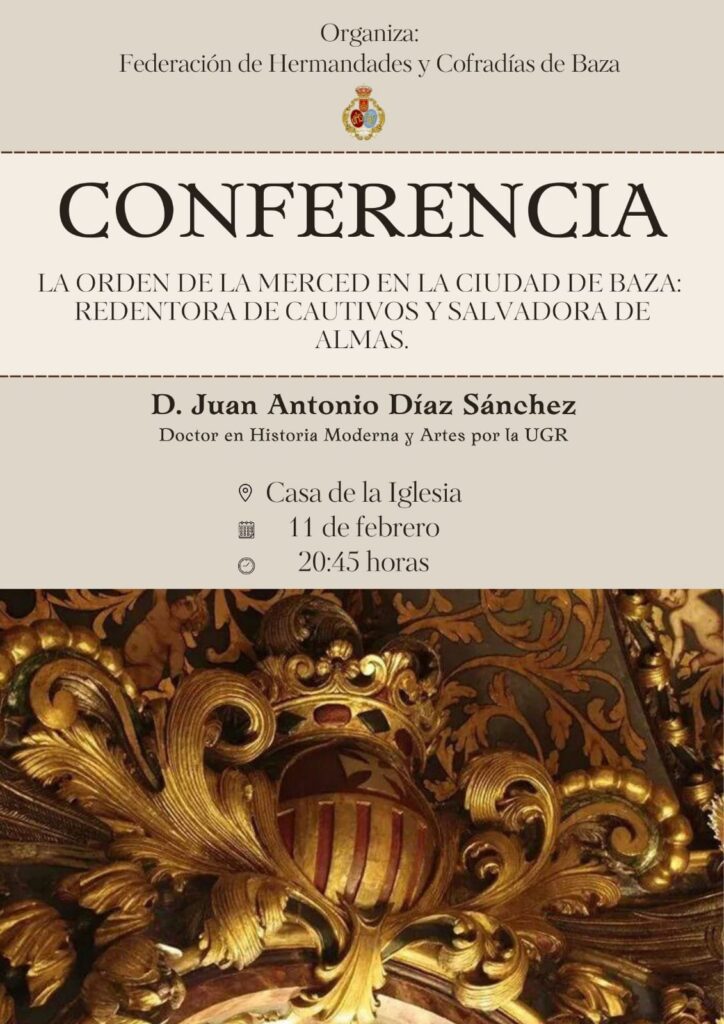 «La Orden de la Merced en la ciudad de Baza: Redentora de Cautivos y Salvadora de Almas» es el título de la conferencia que ofrecerá el doctor en Historia Moderna y Artes, por la Universidad de Granada, Juan Antonio Díaz Sánchez.