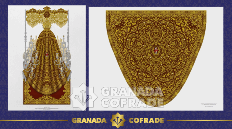 «Tomando como eje central del diseño del mismo la celosía que ya configura el diseño de las bambalinas, se transforma dicha celosía en un gran lucero de grandes proporciones que sirve a la vez de marco para la imagen de la Inmaculada Concepción que protagoniza el eje central del manto. Una hornacina rematada por un gran resplandor estrellado y bajo sus pies una cartela, a modo de peana, con la leyenda “INDUTUS IN SOLE” (Vestida de Sol en castellano) remata el conjunto consiguiendo con ello una alegoría resplandeciente de la advocación de la Santísima Virgen de la Luz.·.