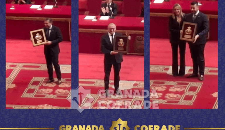 Anoche se entregaron los 17 nombramientos que la Comisión de Honores y Distinciones del Ayuntamiento de Granada concedió durante el año 2025. Como cada año, en las proximidades de la fiesta de San Cecilio el Ayuntamiento abrió las puertas del Auditorio Manuel de Falla para la gala de entrega de distinciones que en esta ocasión tuvo un marcado acento solidario y religioso. Allí estuvieron tres de nuestras hermandades recibiendo sus galardones y de esta manera las tres recibieron las «Granadas de Oro», con motivo de celebraciones extraordinarias. Por su quinto centenario la Sacramental del Sagrario-Catedral que la recogió de manos de la alcaldesa el hermano mayor de la corporación, Emilio Martos. La Granada de Oro a la cofradía de la Santa Cena la recogió el hermano mayor, Francisco Javier López Romero y la entregó el concejal de Presidencia y Cultura, Jorge Saavedra y la Granada de Oro a la cofradía del Señor de la Humildad la entregó la concejala Mónica Rodríguez y la recibió el hermano mayor Germán Bolívar.