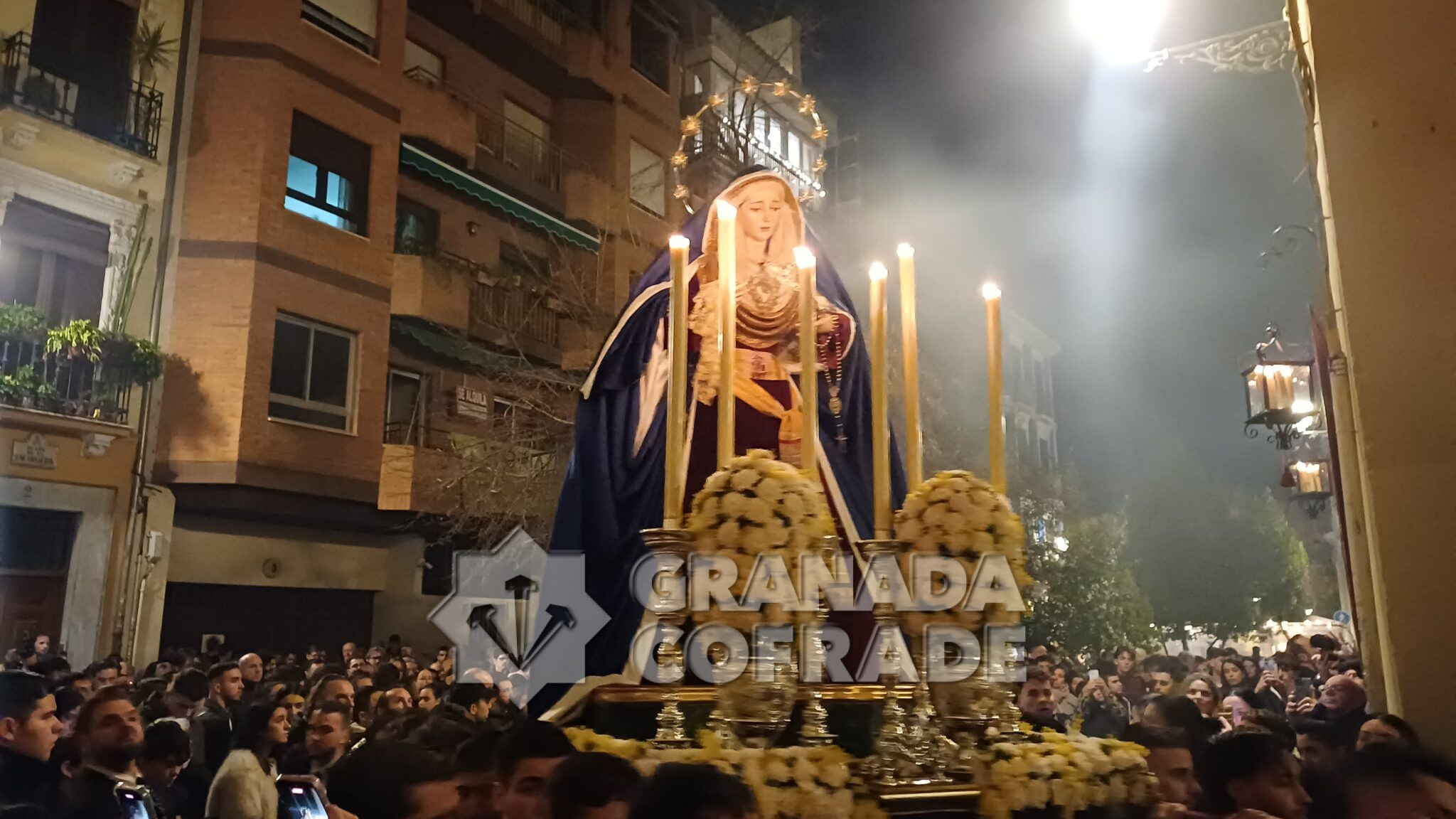 Continuó la comitiva religiosa por calle San Jerónimo y Romanilla para llegar al Pie de la Torre y dirigirse a la plaza de Alonso Cano entrando en la parroquia del Sagrario a las diez de la noche.