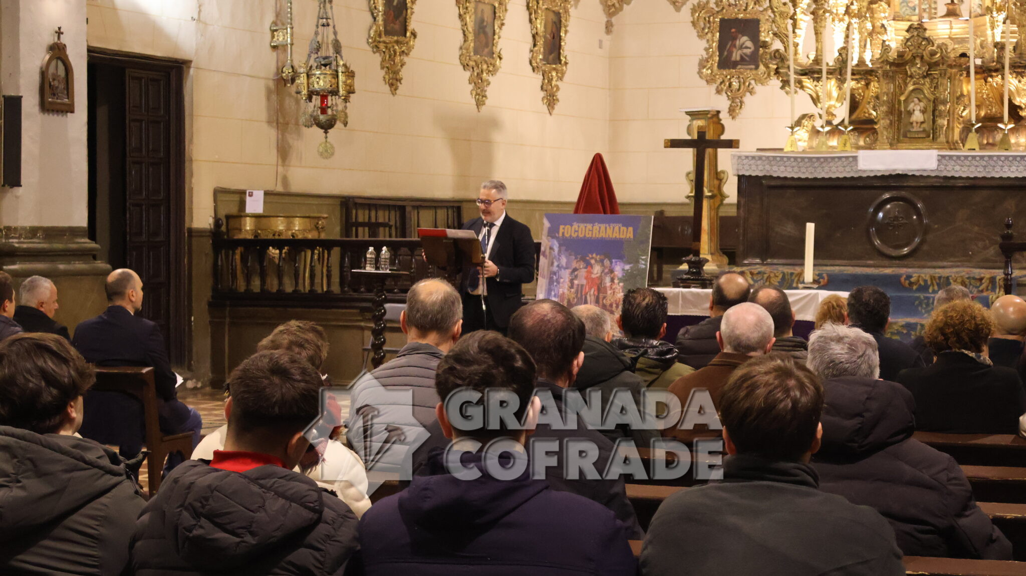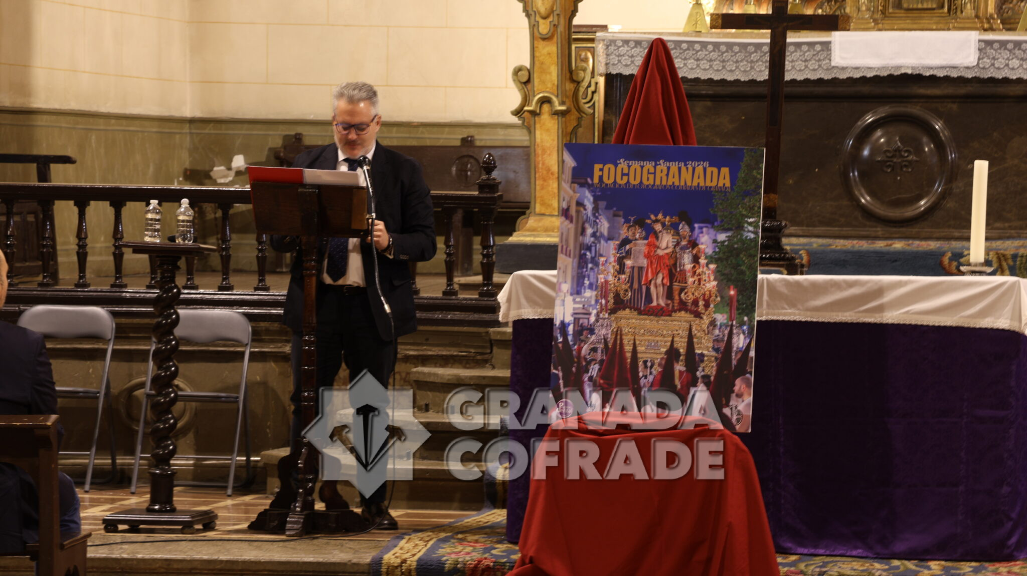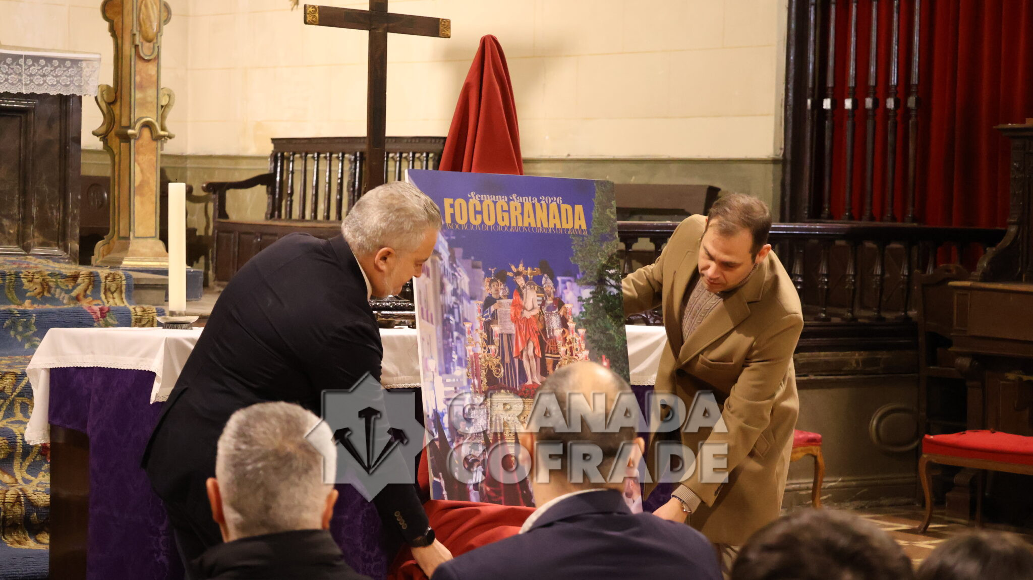 Foco Granada, la Asociación de Fotógrafos Cofrades de nuestra ciudad, dio a conocer por segundo año consecutivo su cartel para anunciar la Semana Santa del presente año. El sencillo acto se desarrolló ayer en la iglesia de Santiago, actualmente regentada por la Federación de Cofradías, que cedió este espacio para que se pudiera desarrollar dicho acto.