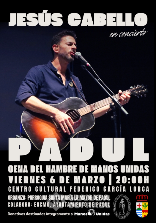 CARTEL CONCIERTO BENÉFICO JESÚS CABELLO La parroquia de Santa María la Mayor de Padul celebrará el viernes 6 de marzo, a las 20:00 horas, una nueva edición de la tradicional Cena del Hambre, una cita solidaria