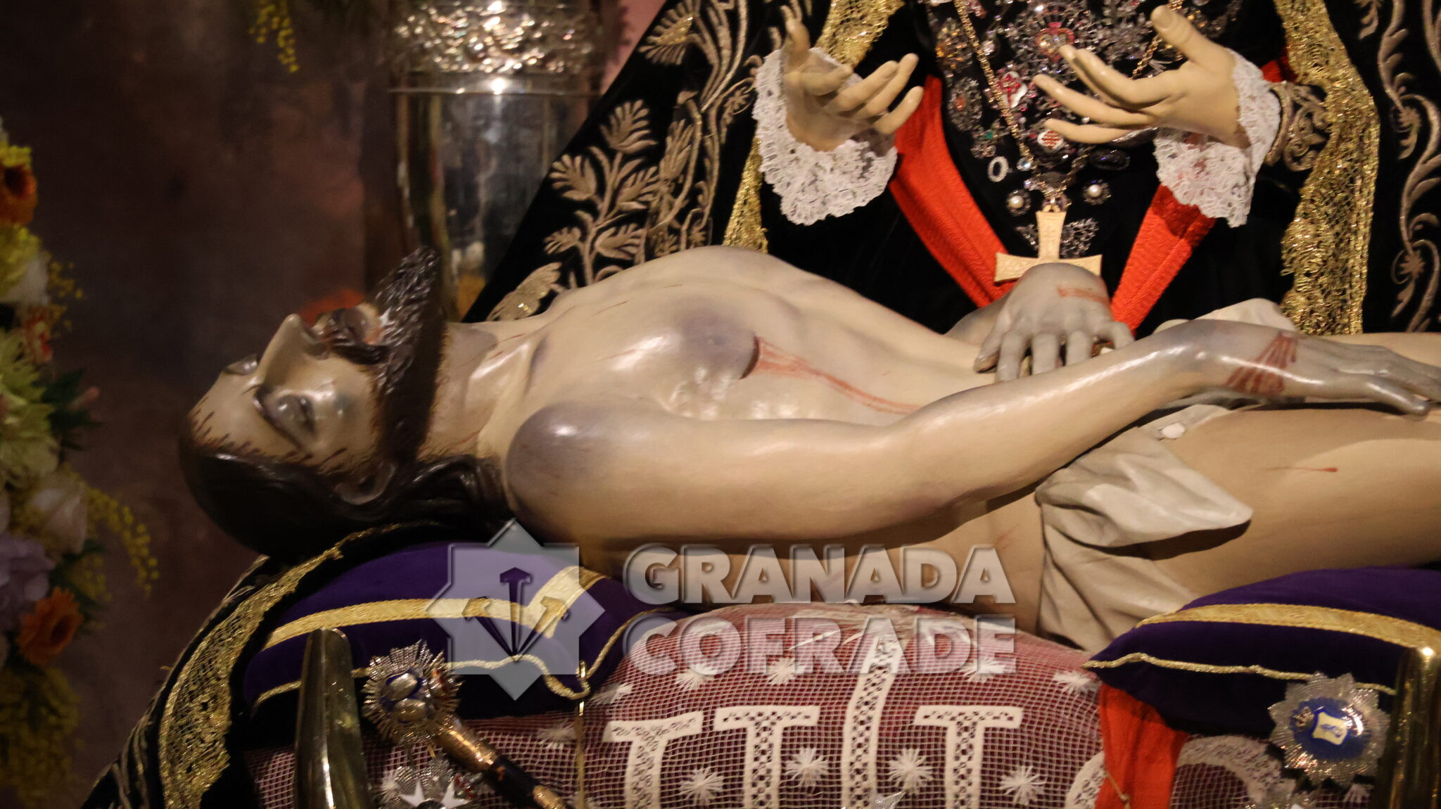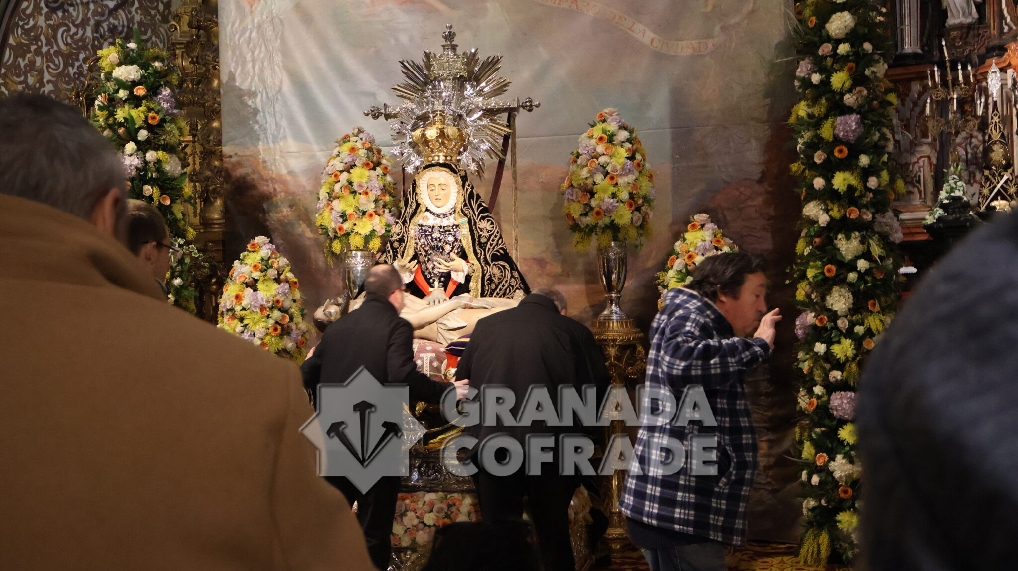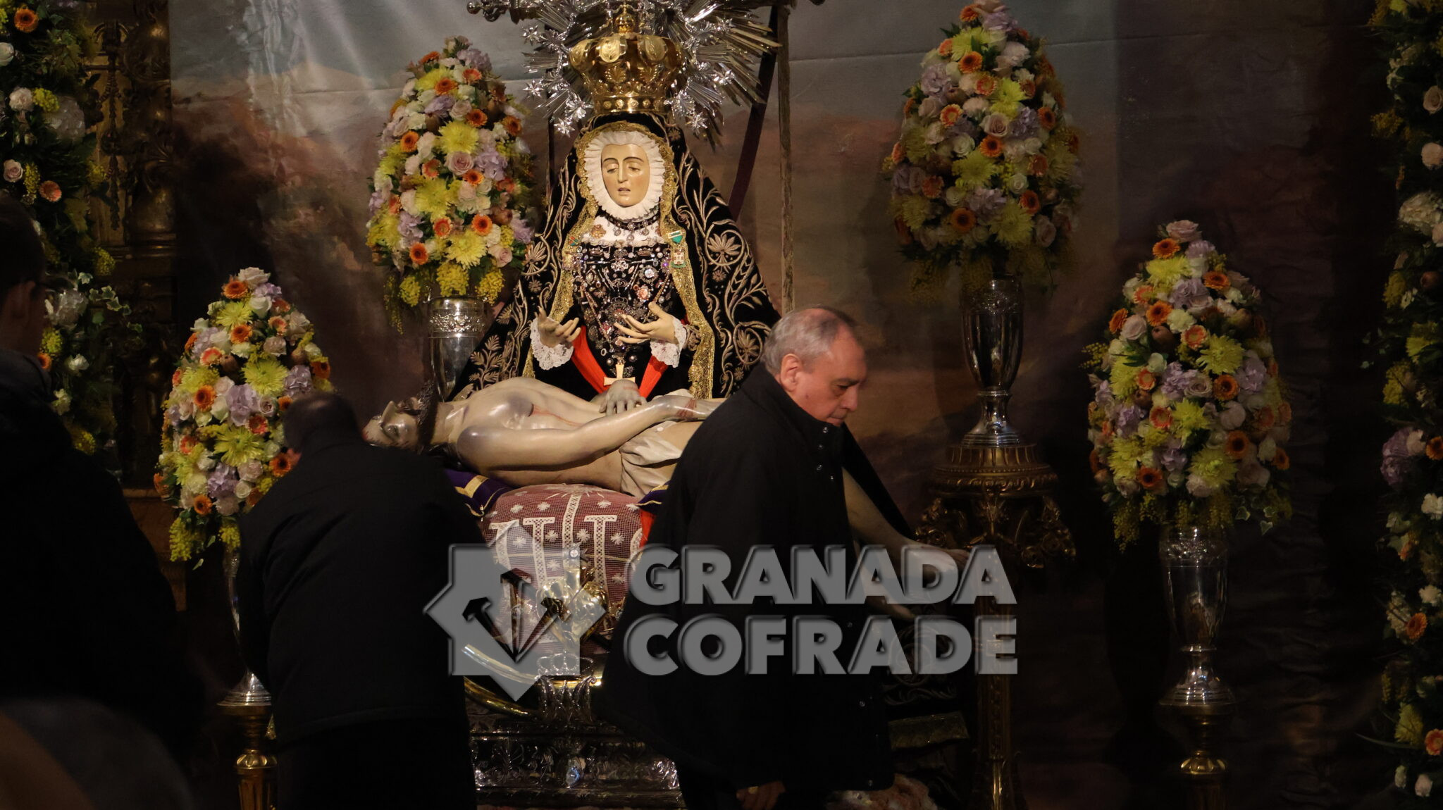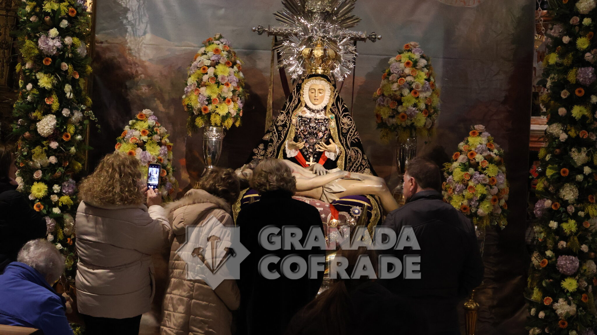A lo largo de la jornada la venerada imagen recibió infinidad de visitas entre ellas la del propio prelado granadino, monseñor Gil Tamayo, que oró ante Ella y besó el pie del Señor Yacente de su regazo.
