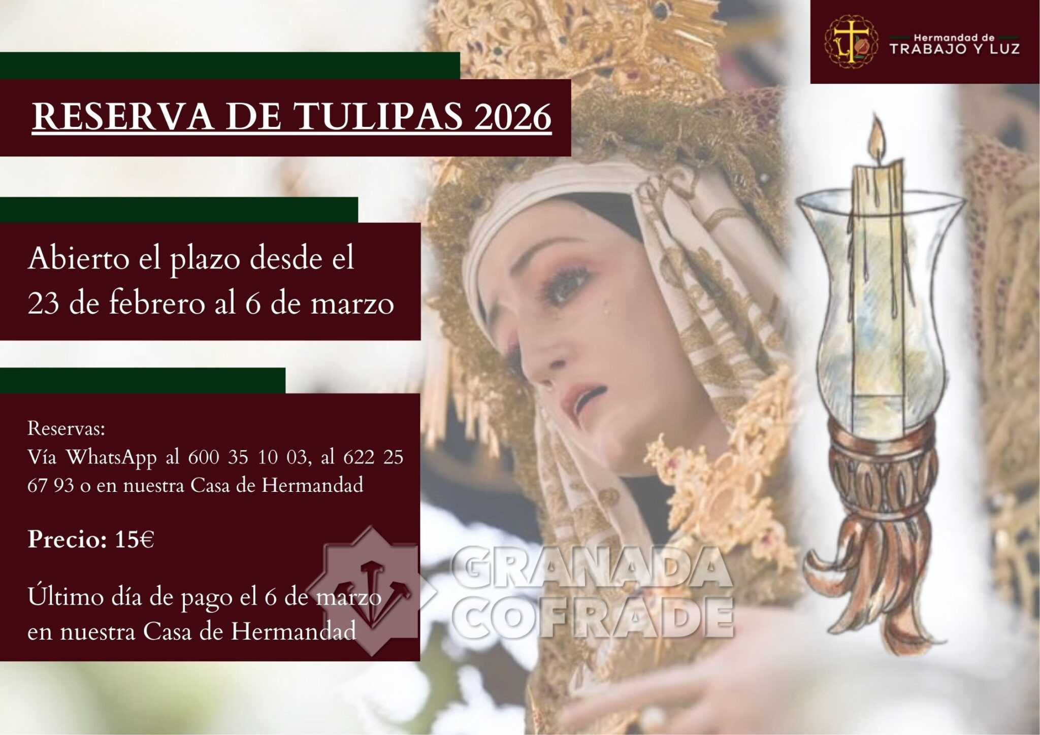 El pasado lunes dio comienzo el plazo para la reserva de guardabrisas para los pasos de la hermandad del Cristo del Trabajo y Nuestra Señora de la Luz. Las reservas se pueden realizar en los teléfonos 600 35 10 03 o 622 25 67 93 o en la Casa de Hermandad de calle Venezuela, 35.