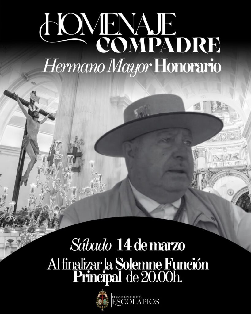 En el transcurso de la celebración se le otorgará el título de Hermano Mayor Honorario, como muestra de gratitud de toda la Hermandad.