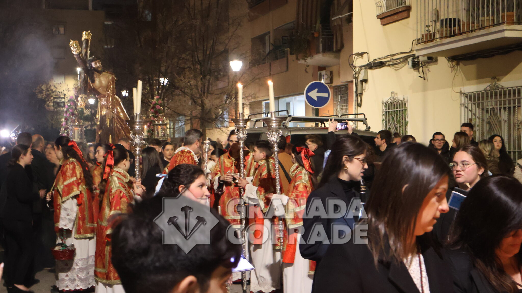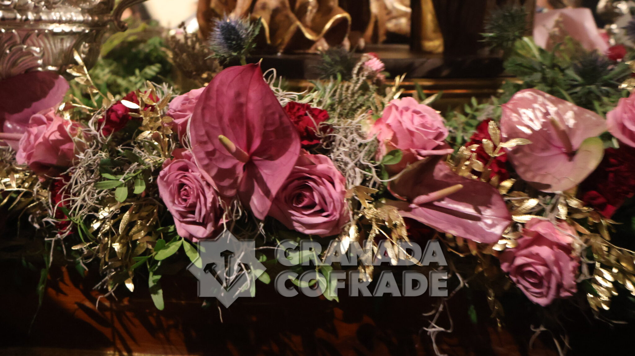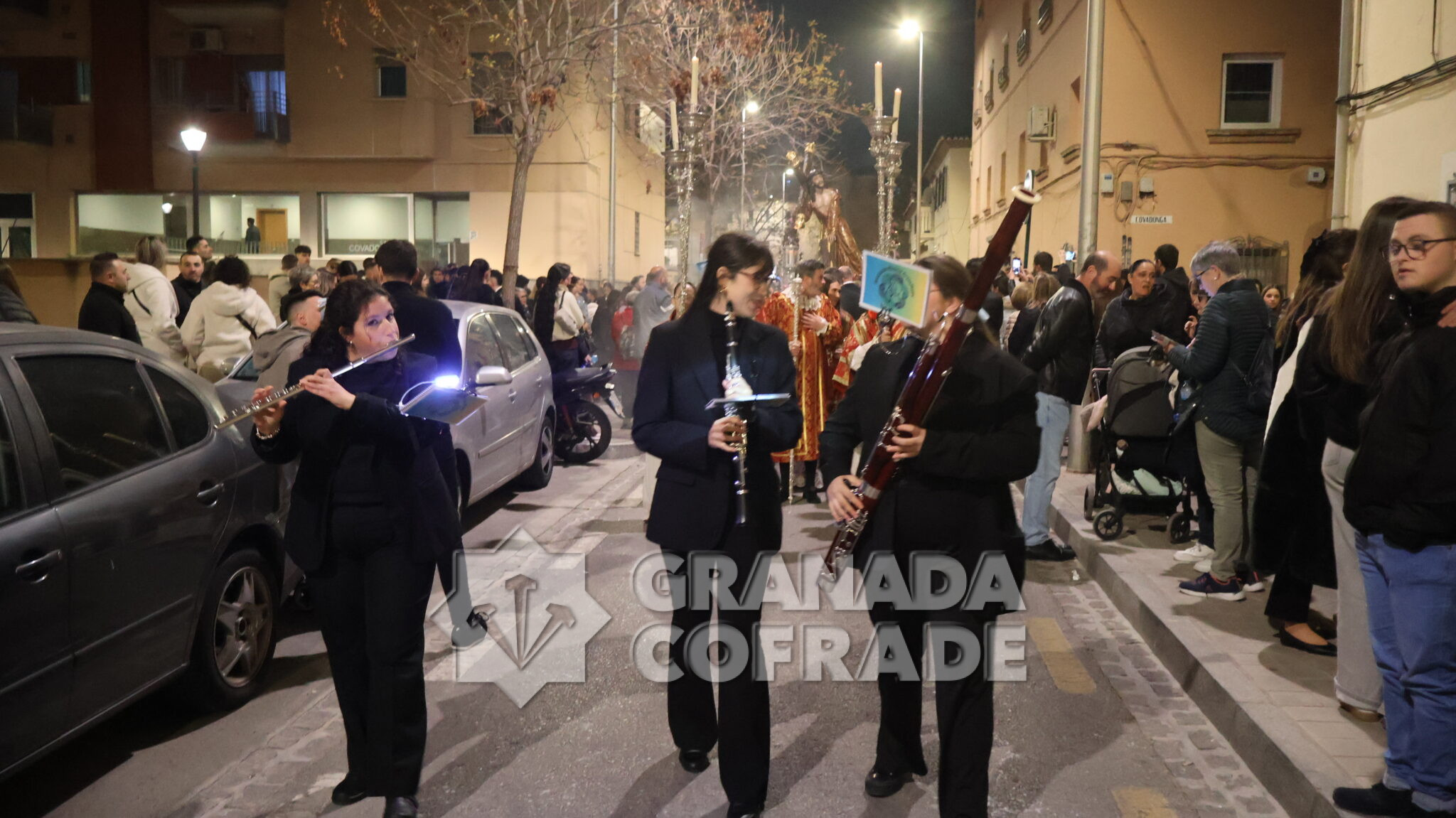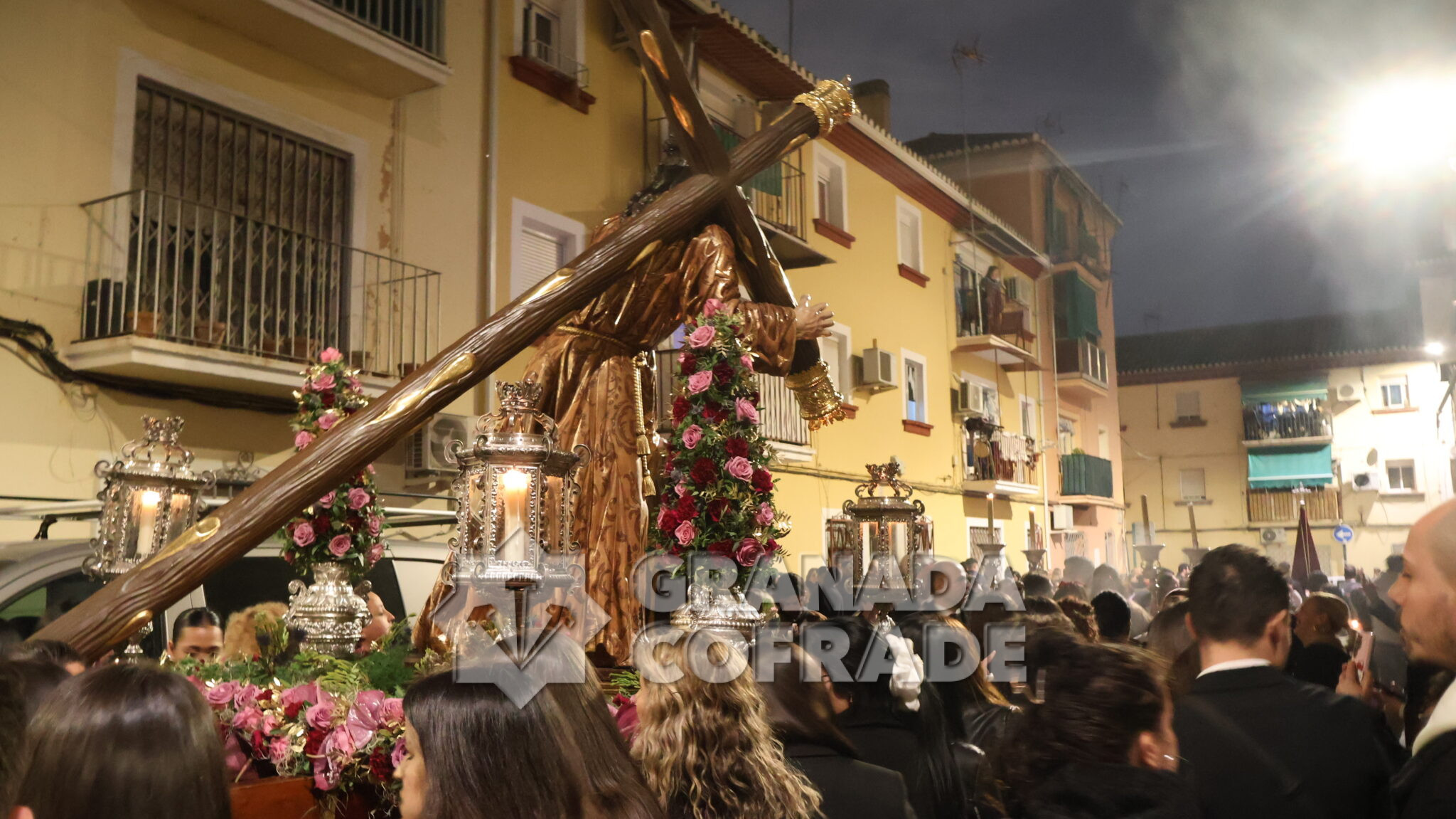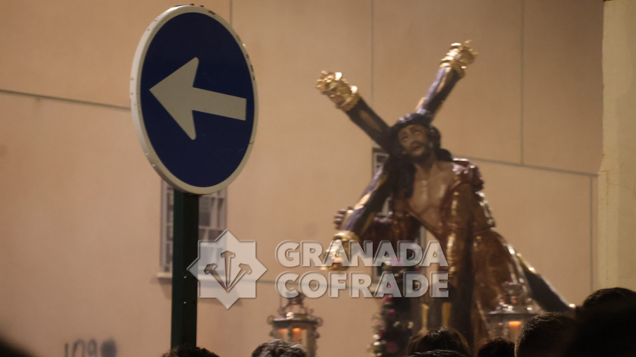 Más de cuarenta parejas de hermanos formaban en el cortejo del Vía Crucis que anoche se desarrolló por el entorno de la feligresía del Corpus Christi con la imagen del Cristo del Trabajo. Sobre andas de vía crucis y con adorno principalmente en rosas rojas y tonalidades malva, y orquídeas, marchó la imagen dentro del recogimiento propio de estas manifestaciones públicas religiosas propias de la cuaresma. Catorce estaciones que se distribuyeron por las distintas calles desde que partió del interior del templo parroquial, saliendo por calle Polinario al Zaidín, y continuar por Navarra en dirección a Garellano y Diego de Siloé. Hora y media se prolongó el rezo del Vía Crucis estando ya de regreso antes de las nueve y media de la noche. El trio de capilla «GranaMusic» participaron en el desarrollo del acto piadoso