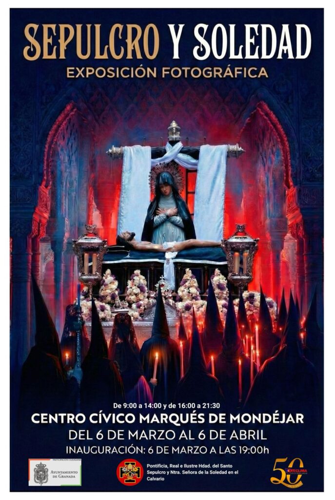 La cofradía del Santo Sepulcro y Ntra. Señora de la Soledad en el Calvario inaugura la exposición fotográfica «Sepulcro y Soledad». Una cita cultural del patrimonio que atesora la Semana Santa de Granada que se inaugura el viernes, 6 de marzo, a las siete de la tarde y estará abierta en el Centro Cívico «Marqués de Mondéjar» del barrio Fígares de nuestra ciudad.