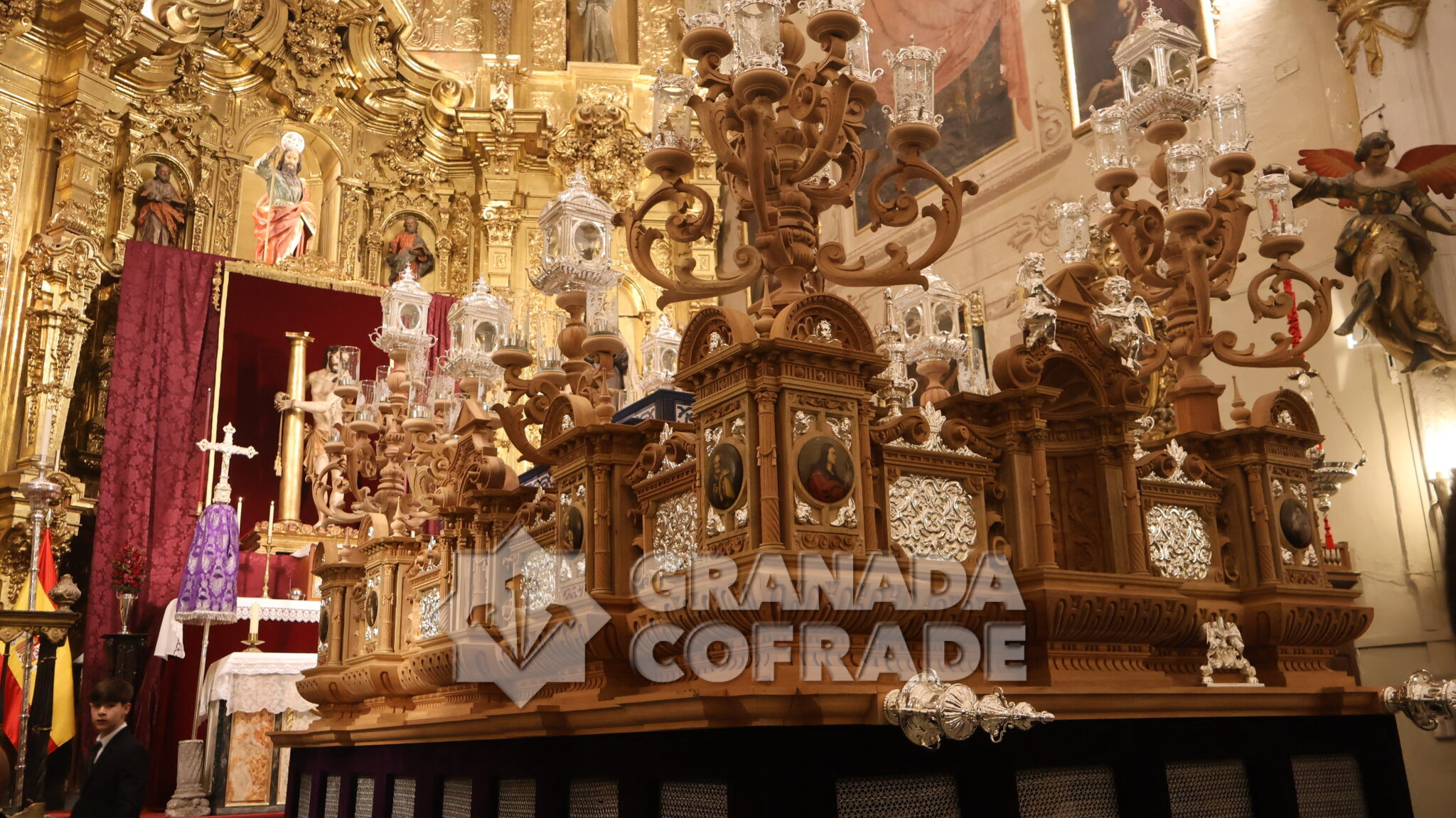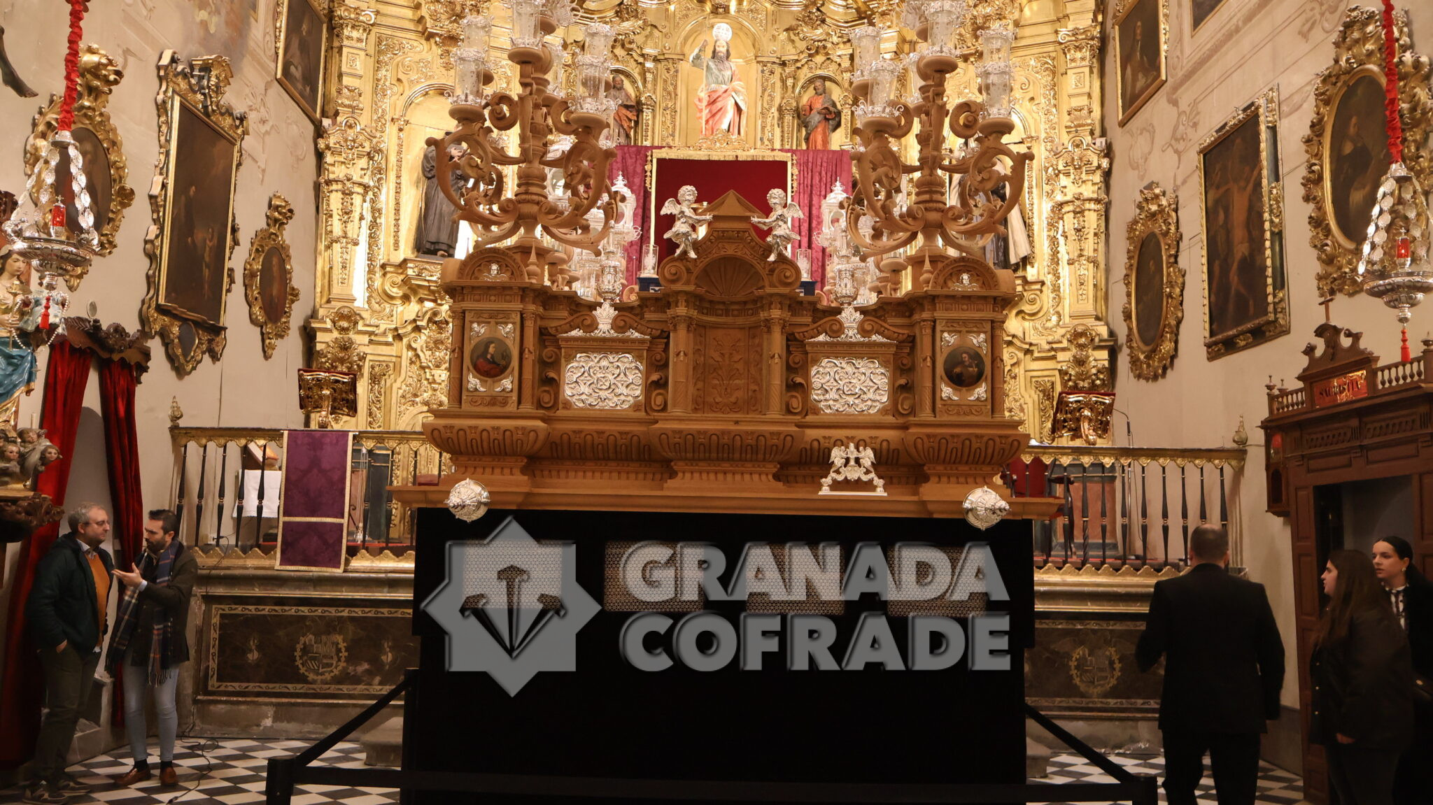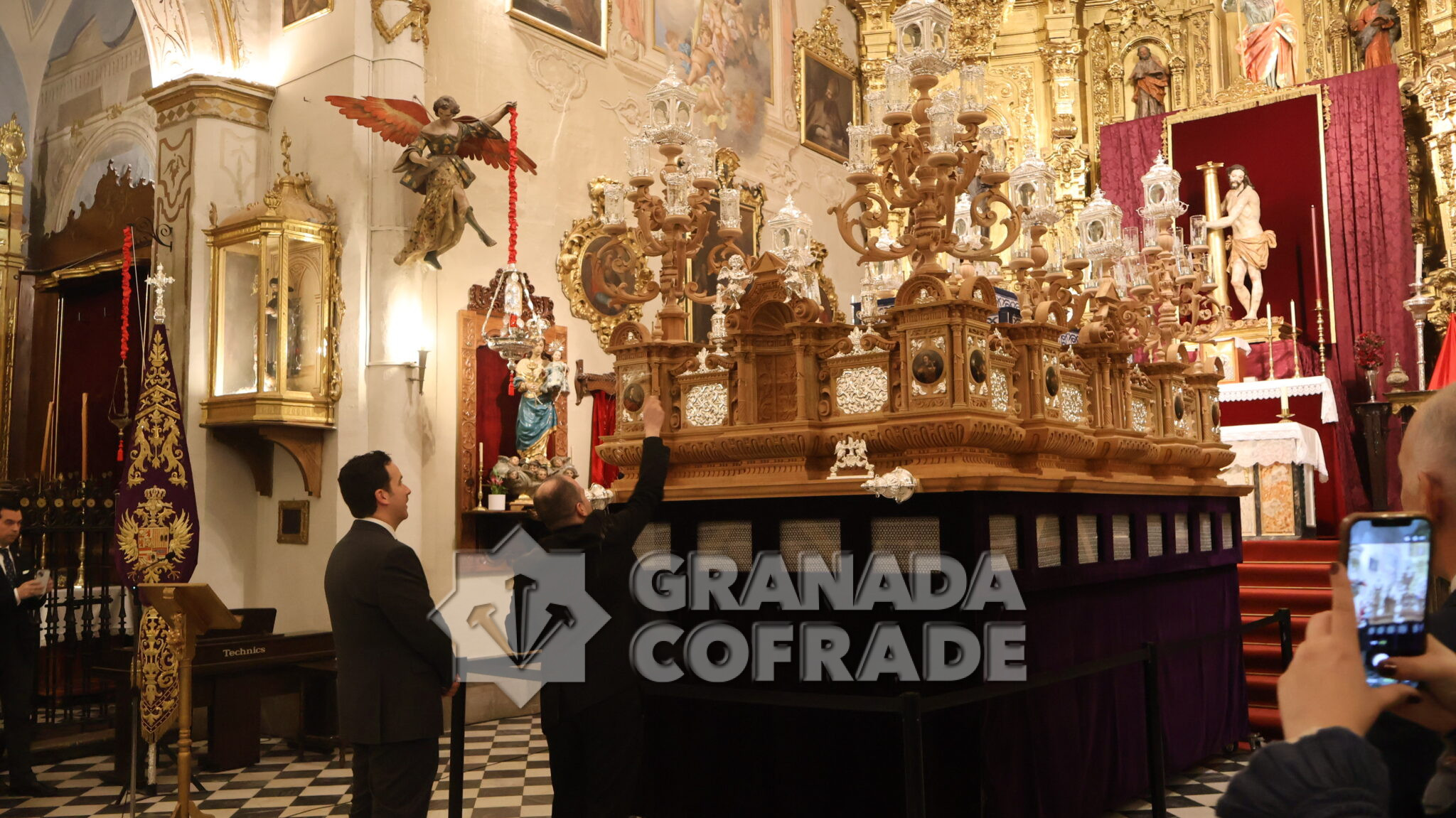 El nuevo paso fue bendecido por el párroco y director espiritual de la hermandad, David Salcedo, situado en el centro del templo, a los pies del presbiterio y del sensacional retablo mayor de la Imperial de San Matías, presidido por los dos Titulares de la cofradía, el Santísimo Sacramento y Jesús de la Paciencia.