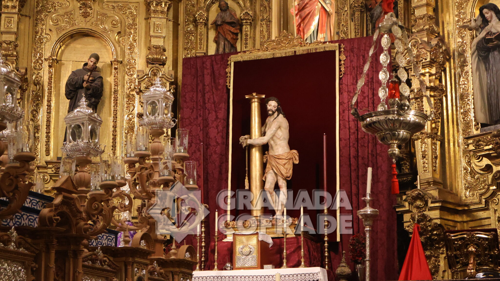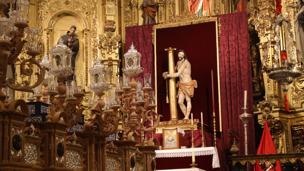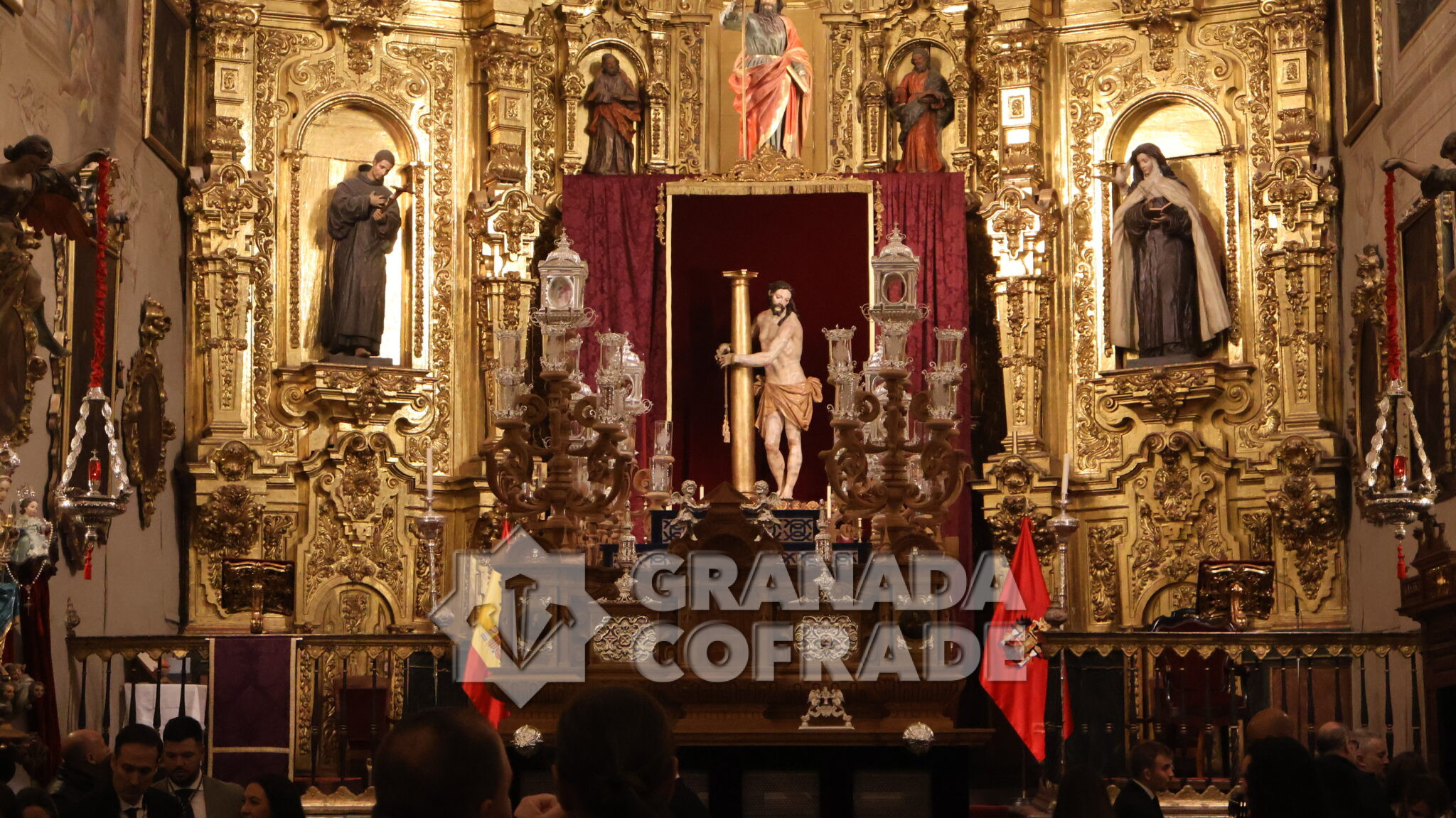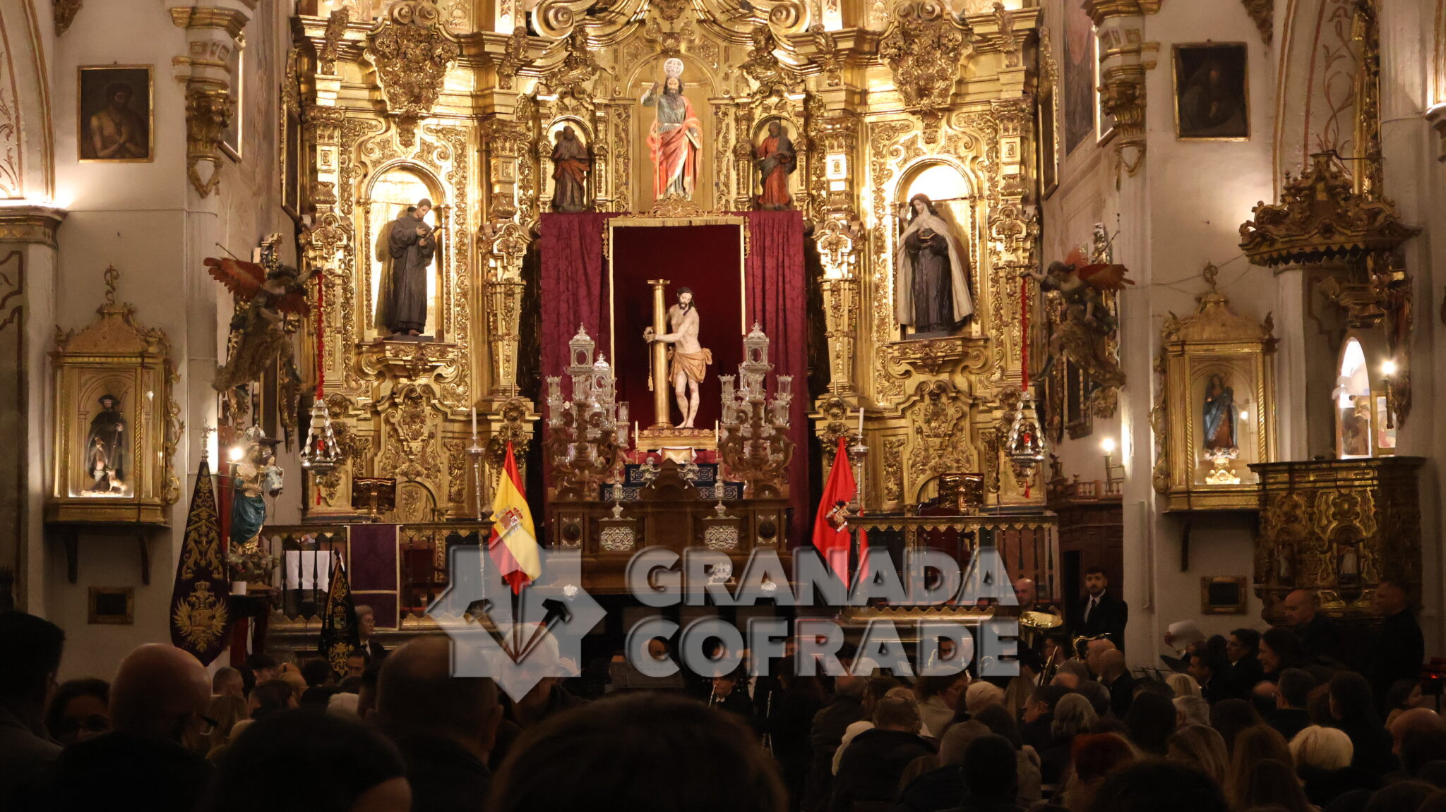 El nuevo paso fue bendecido por el párroco y director espiritual de la hermandad, David Salcedo, situado en el centro del templo, a los pies del presbiterio y del sensacional retablo mayor de la Imperial de San Matías, presidido por los dos Titulares de la cofradía, el Santísimo Sacramento y Jesús de la Paciencia.