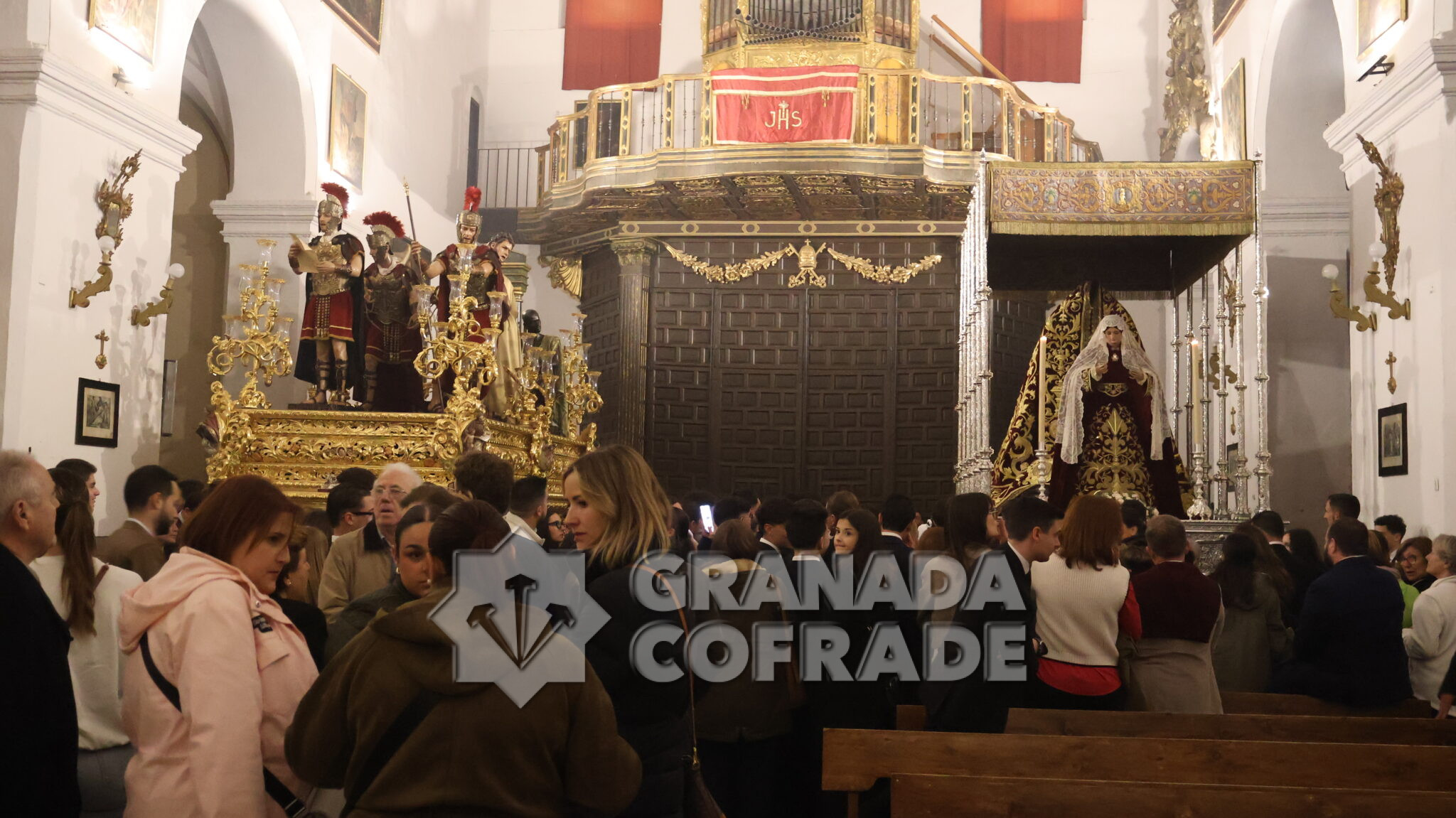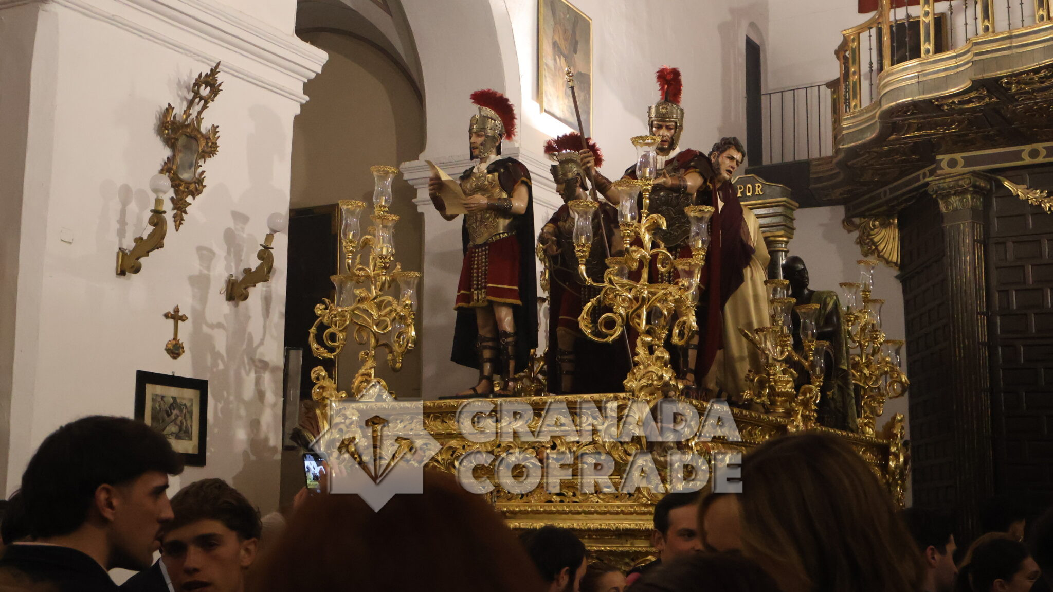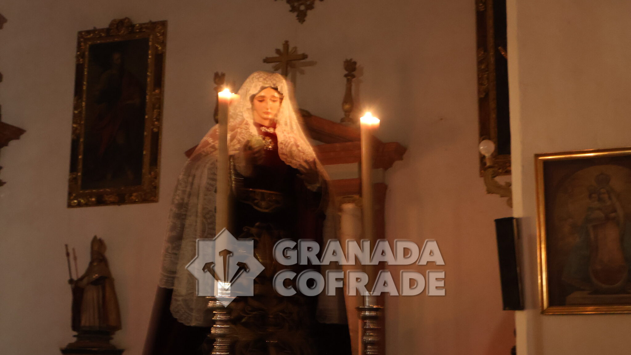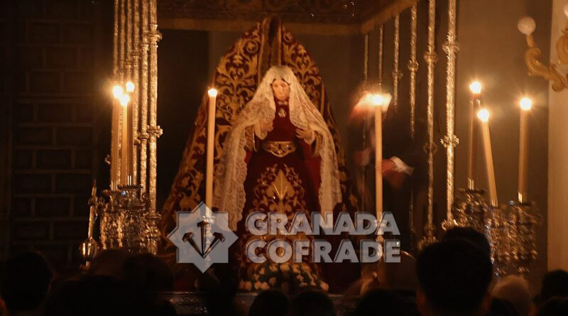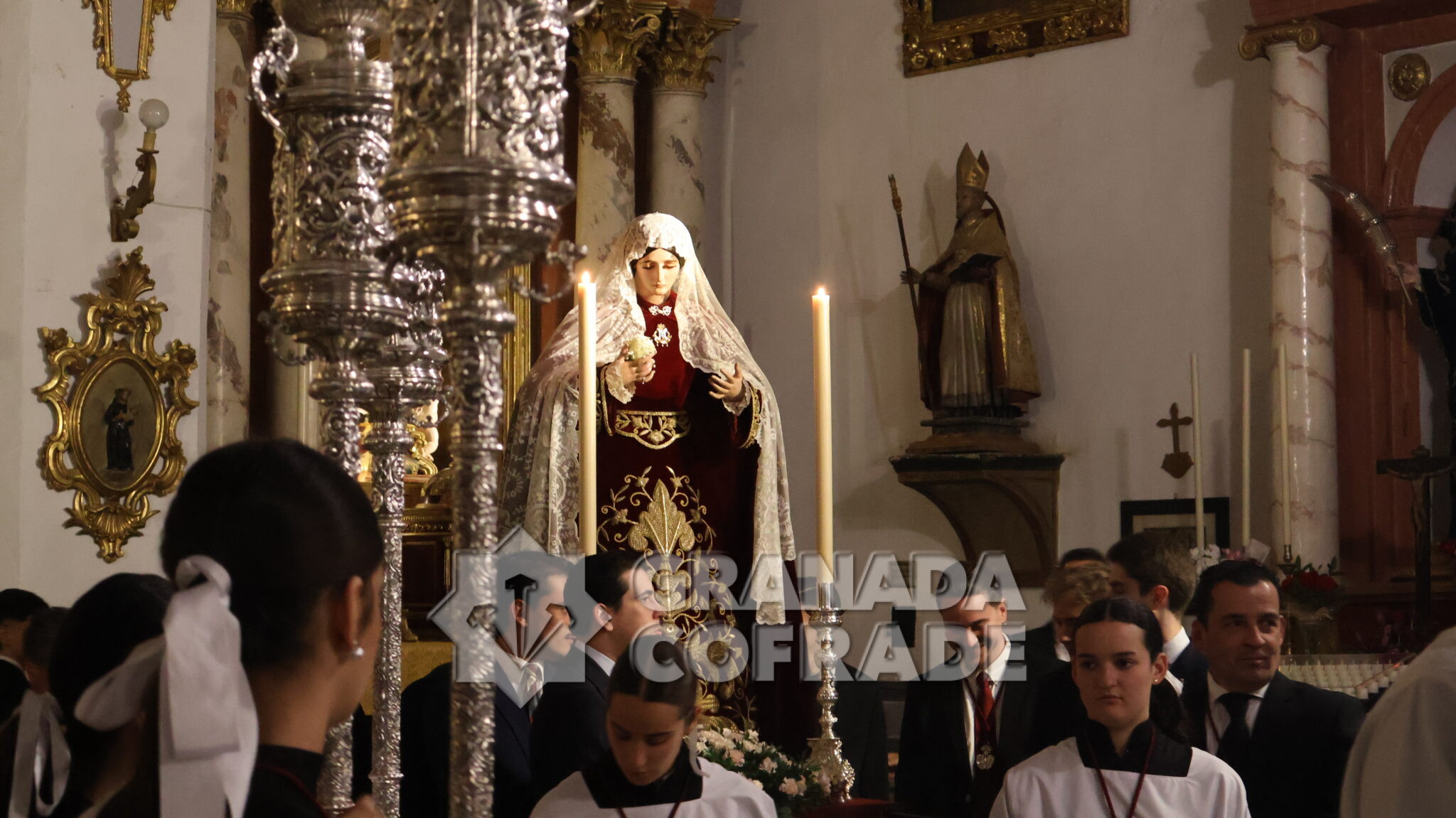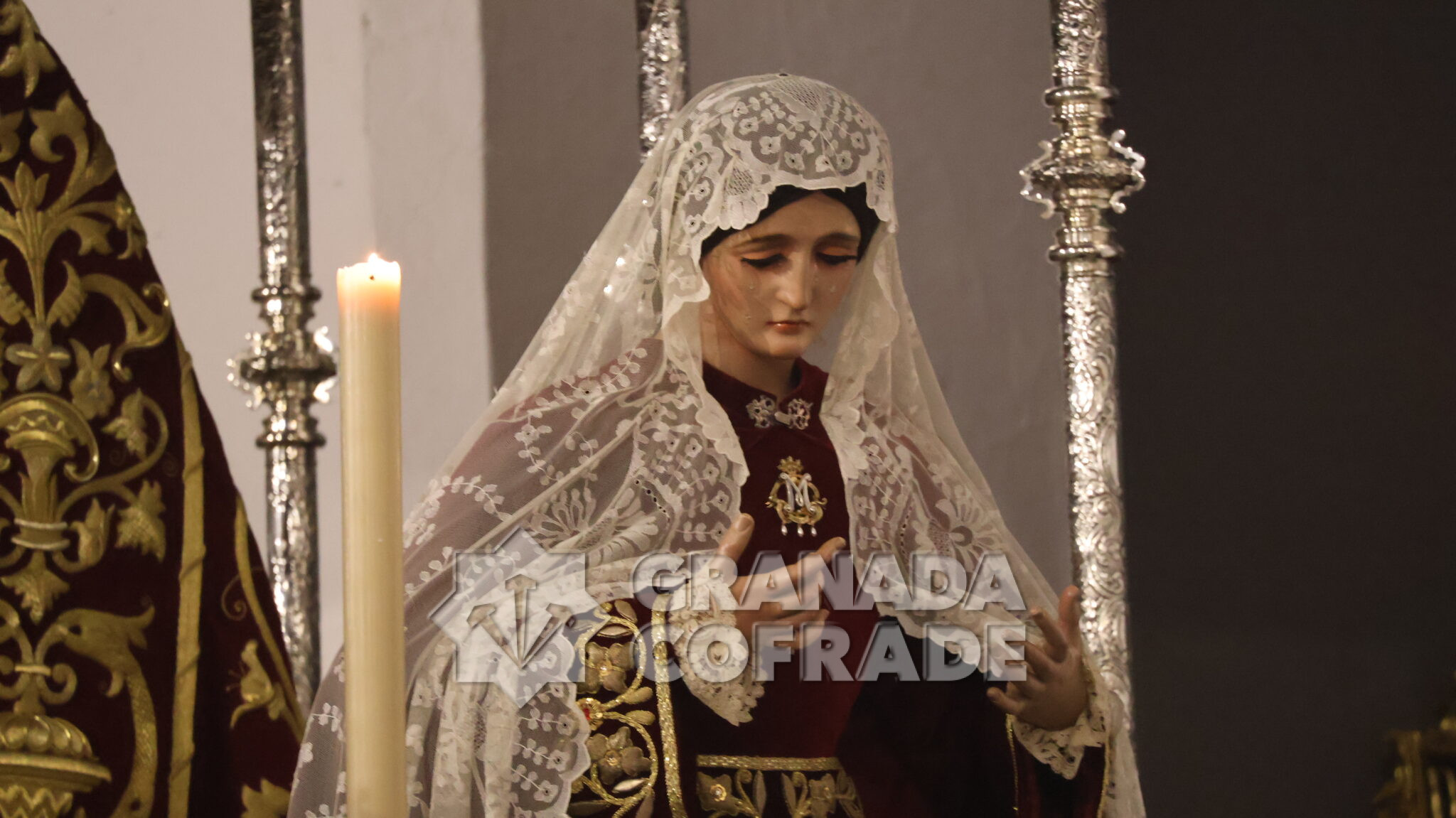 Estaba la Santísima Virgen de las Maravillas junto al presbiterio y esperando para solemnizar el momento la capilla musical y tenor para entonar temas como el «Ave María» o el «Mater Lacrimosa», mientras avanzaba por la nave principal del templo de San Pedro y San Pablo, portado en andas por costaleros de la hermandad y un absoluto recogimiento y silencio rodeaba el momento, consiguiendo un ambiente de extraordinaria belleza en torno a la Santísima Virgen y de oración al orar ante su Hijo de la Sentencia. Después, con delicadeza fue depositada en su paso de palio donde tan sólo restaba ya subirla sobre la peana y cubrirla con su manto para que Granada contemple las «Maravillas de Dios».