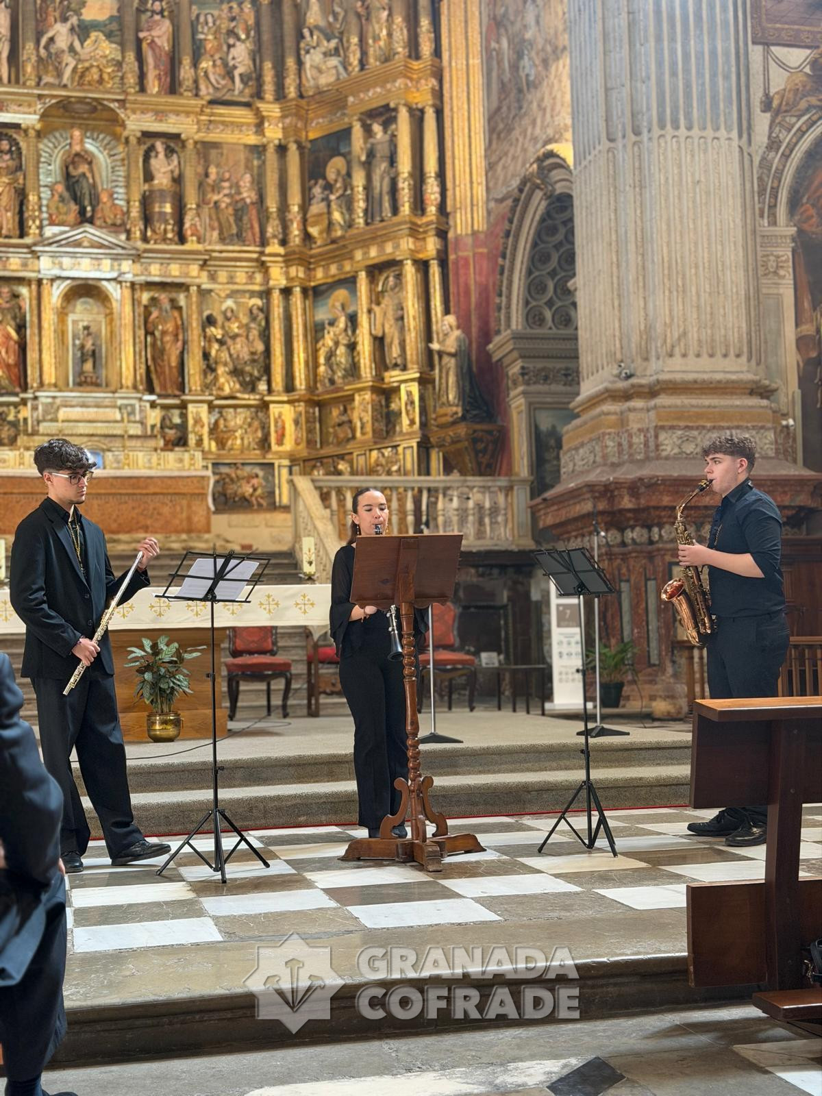 Tras la puesta de largo del cartel de este año ofrecieron un concierto de marchas procesionales la capilla musical del grupo joven integrado por Sofía Flores, de la hermandad de la Soledad y Descendimiento, al clarinete, junto con Ángel Jiménez, con el saxo, y Carlos Peralta, con la flauta. Interpretaron las marchas «La Madrugá», «Ave María, y «Mayor Dolor».
