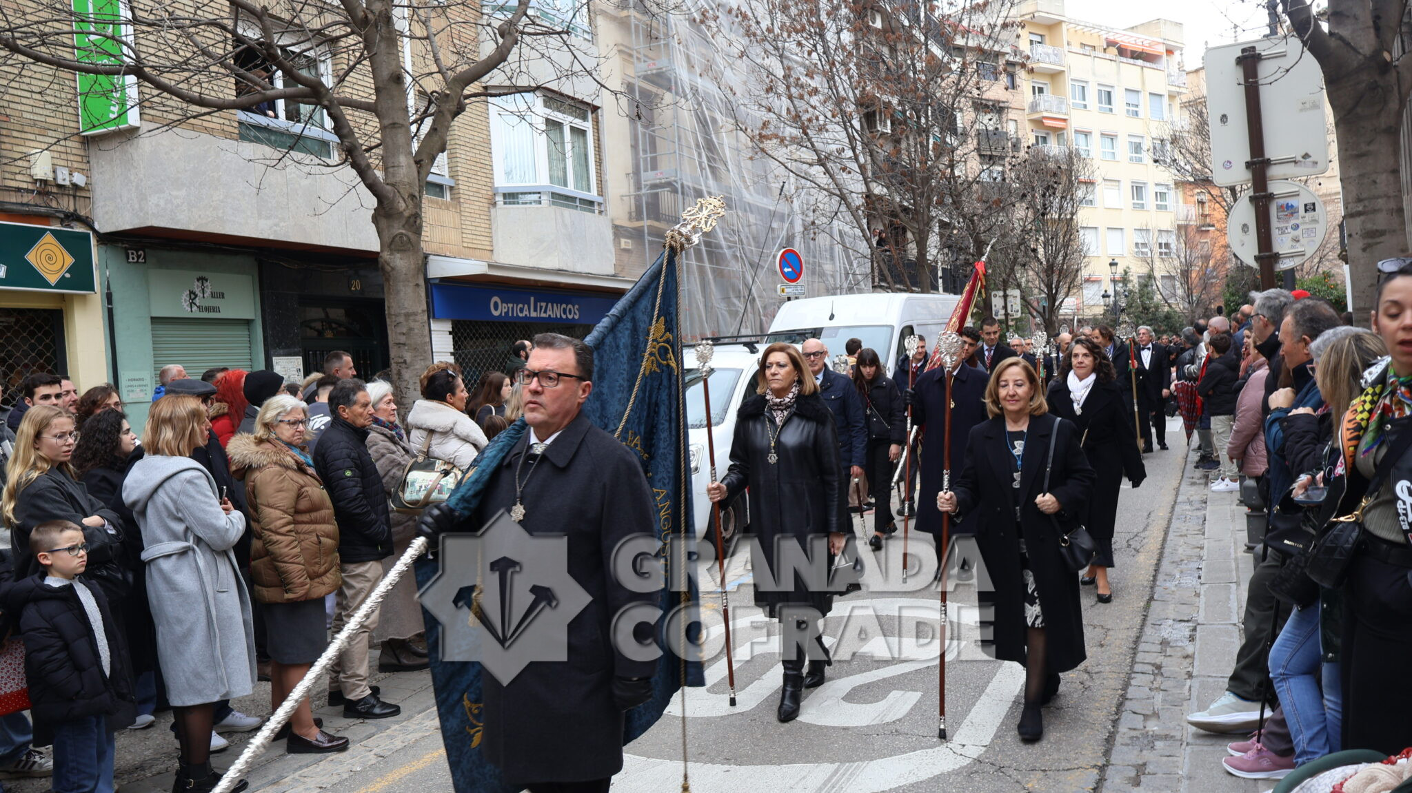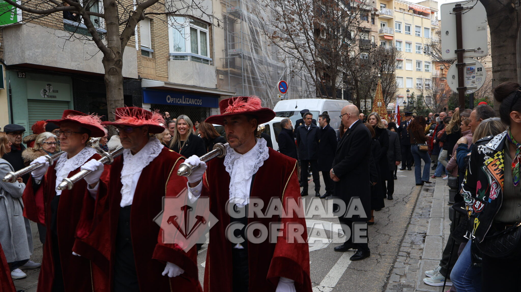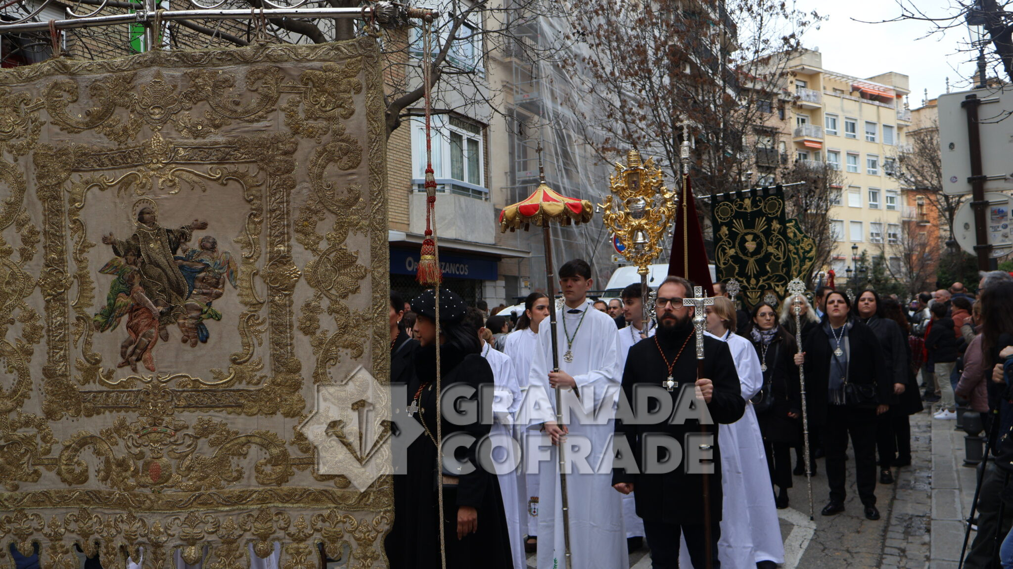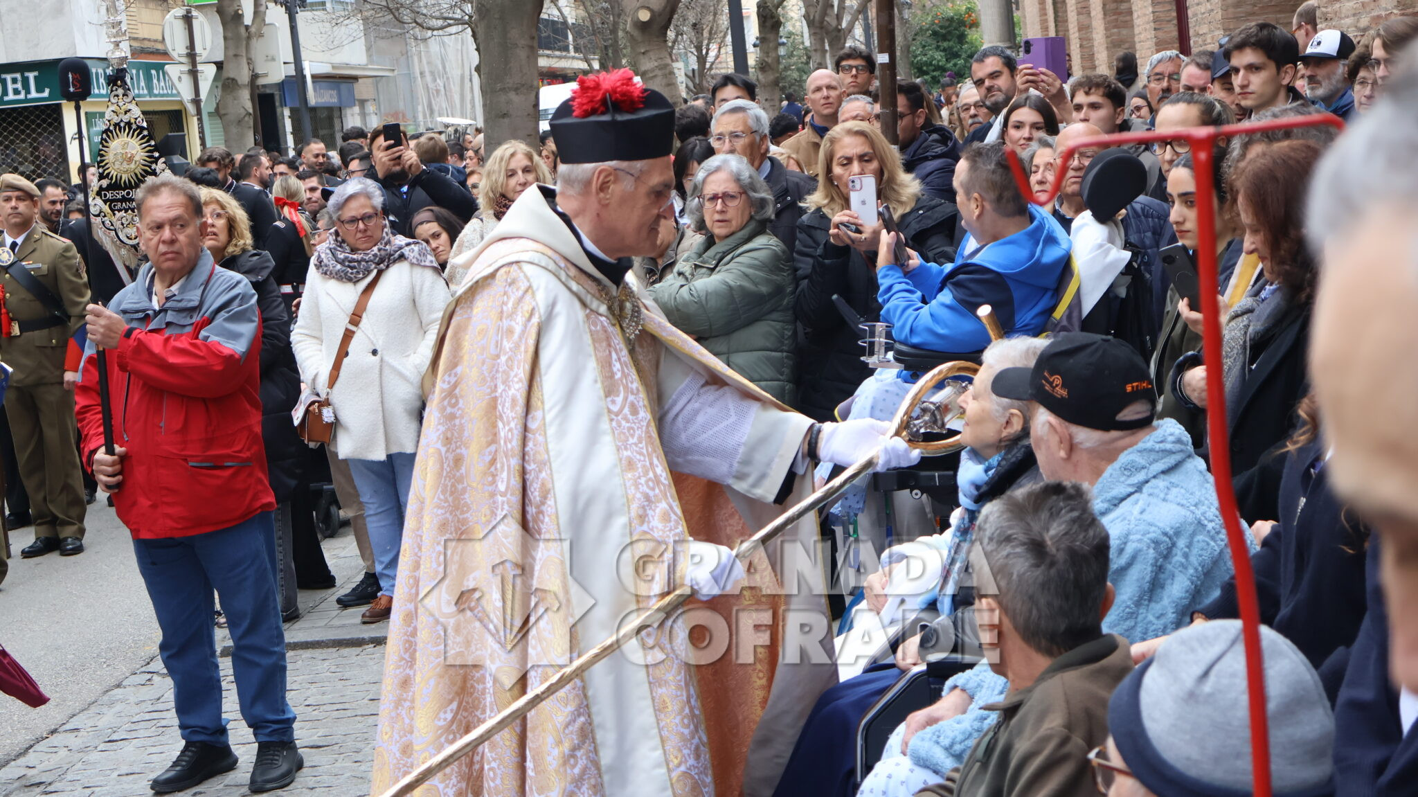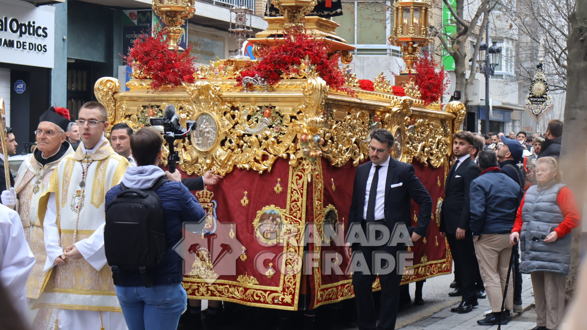 Un cortejo en el que estaban las hermandades del Santo Sepulcro, de la Esperanza, Ferroviarios, Jesús Despojado y Alhambra, por la vinculación que les une a la Orden Hospitalaria. El cortejo lo abría la agrupación Jesús del Rescate y lo cerraba la banda de cornetas y tambores de Jesús Despojado y en el cortejo también estaban las hermandades de gloria de la Virgen de la Cabeza y la Patronal de Nuestra Señora de las Angustias.