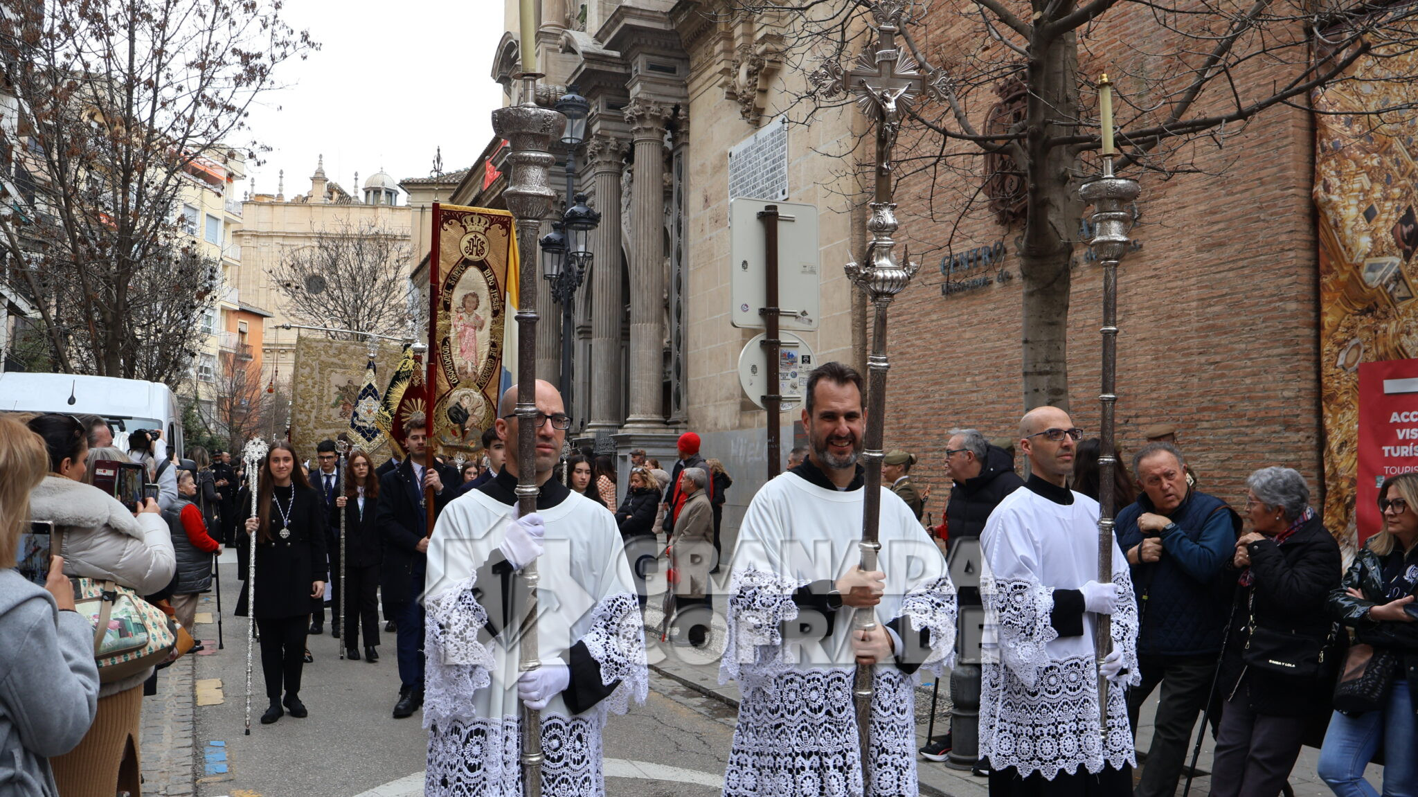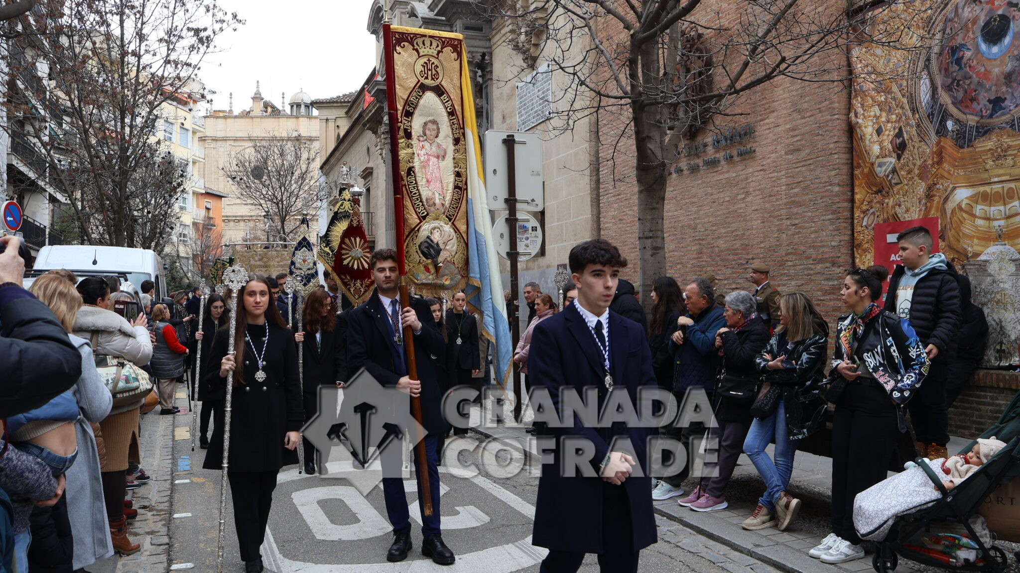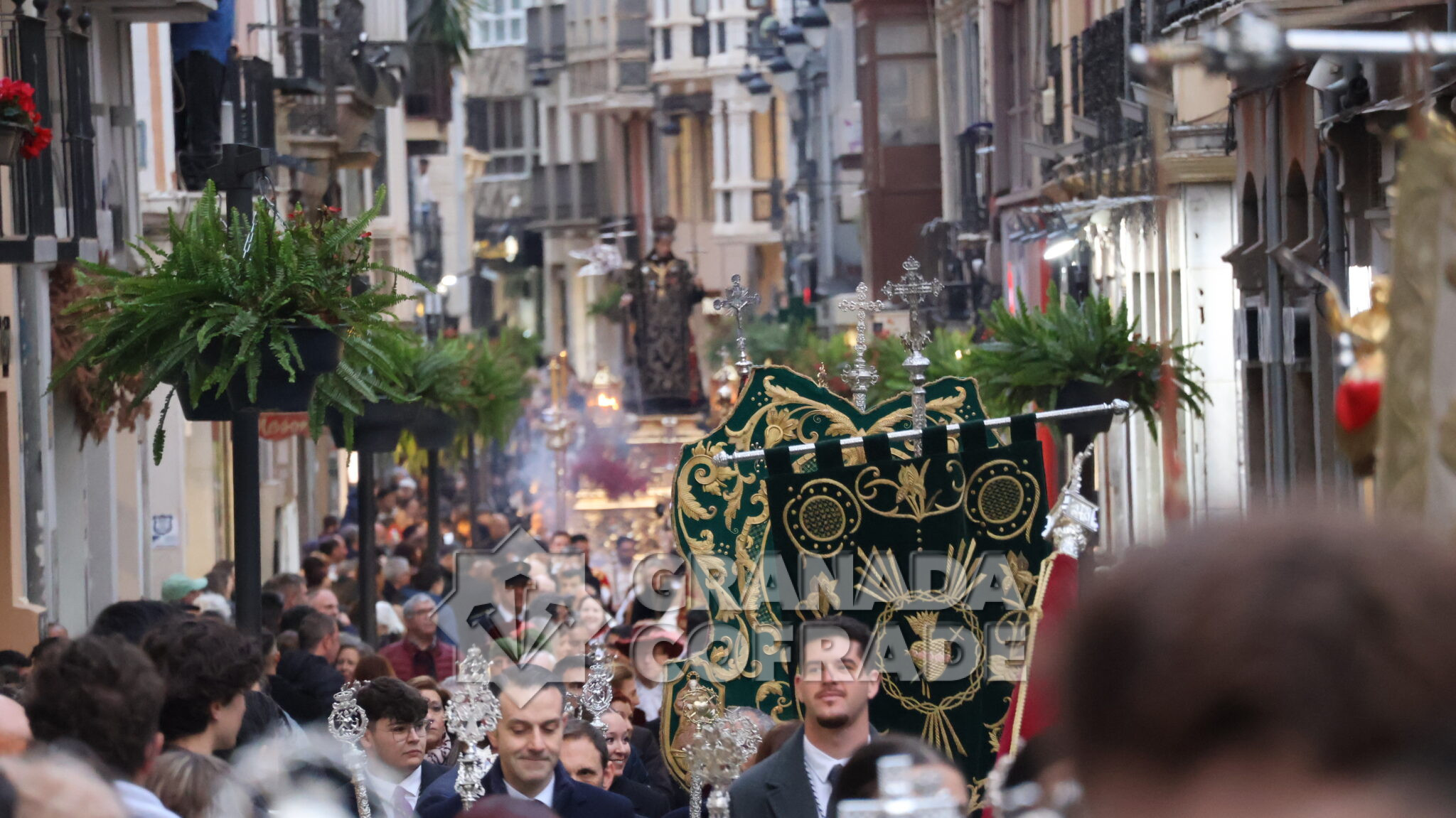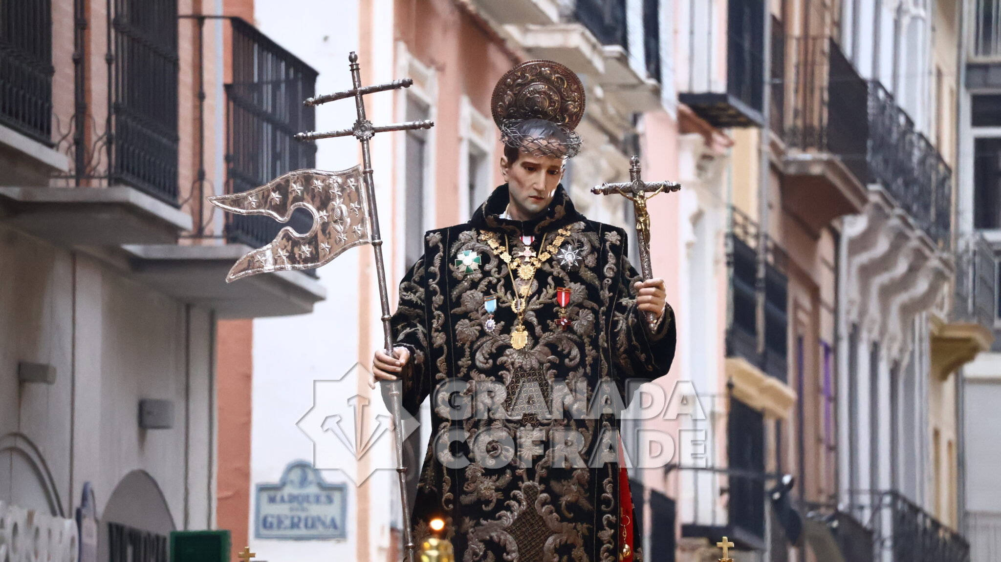 Un cortejo en el que estaban las hermandades del Santo Sepulcro, de la Esperanza, Ferroviarios, Jesús Despojado y Alhambra, por la vinculación que les une a la Orden Hospitalaria. El cortejo lo abría la agrupación Jesús del Rescate y lo cerraba la banda de cornetas y tambores de Jesús Despojado y en el cortejo también estaban las hermandades de gloria de la Virgen de la Cabeza y la Patronal de Nuestra Señora de las Angustias.