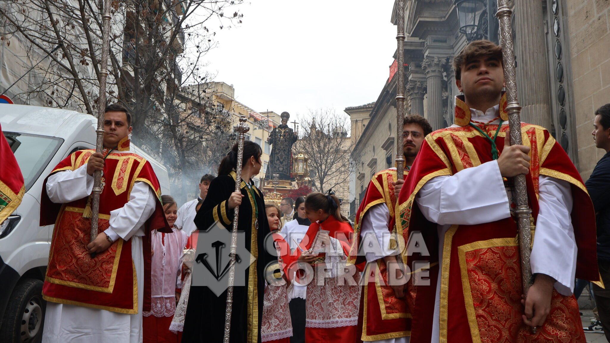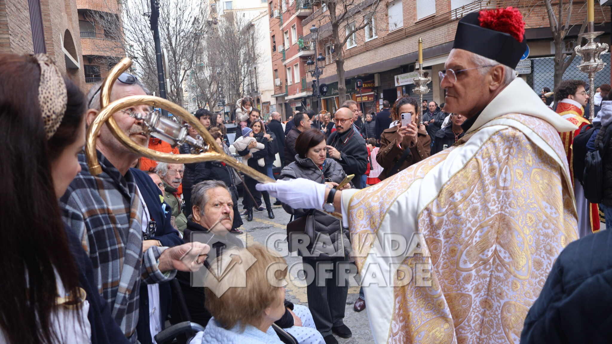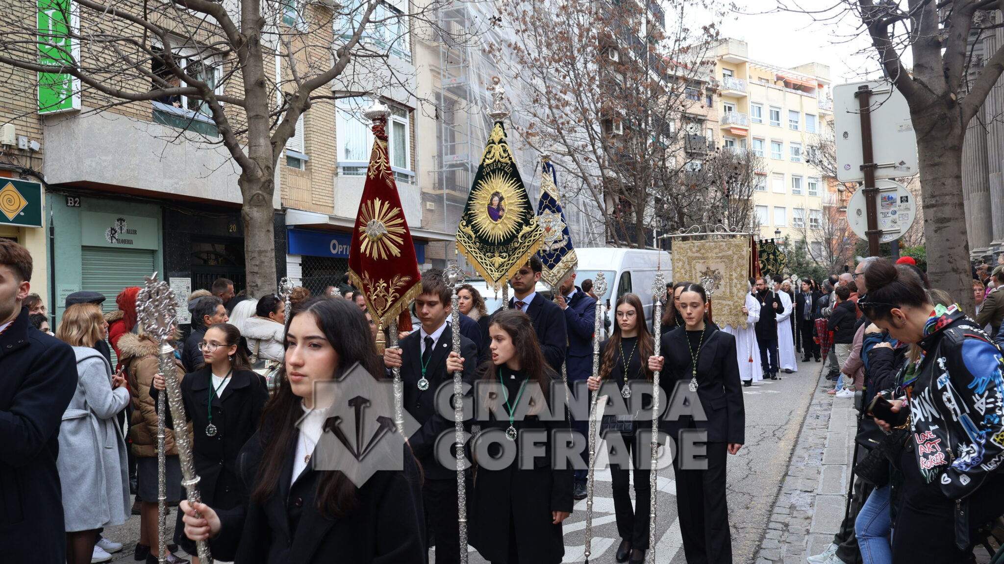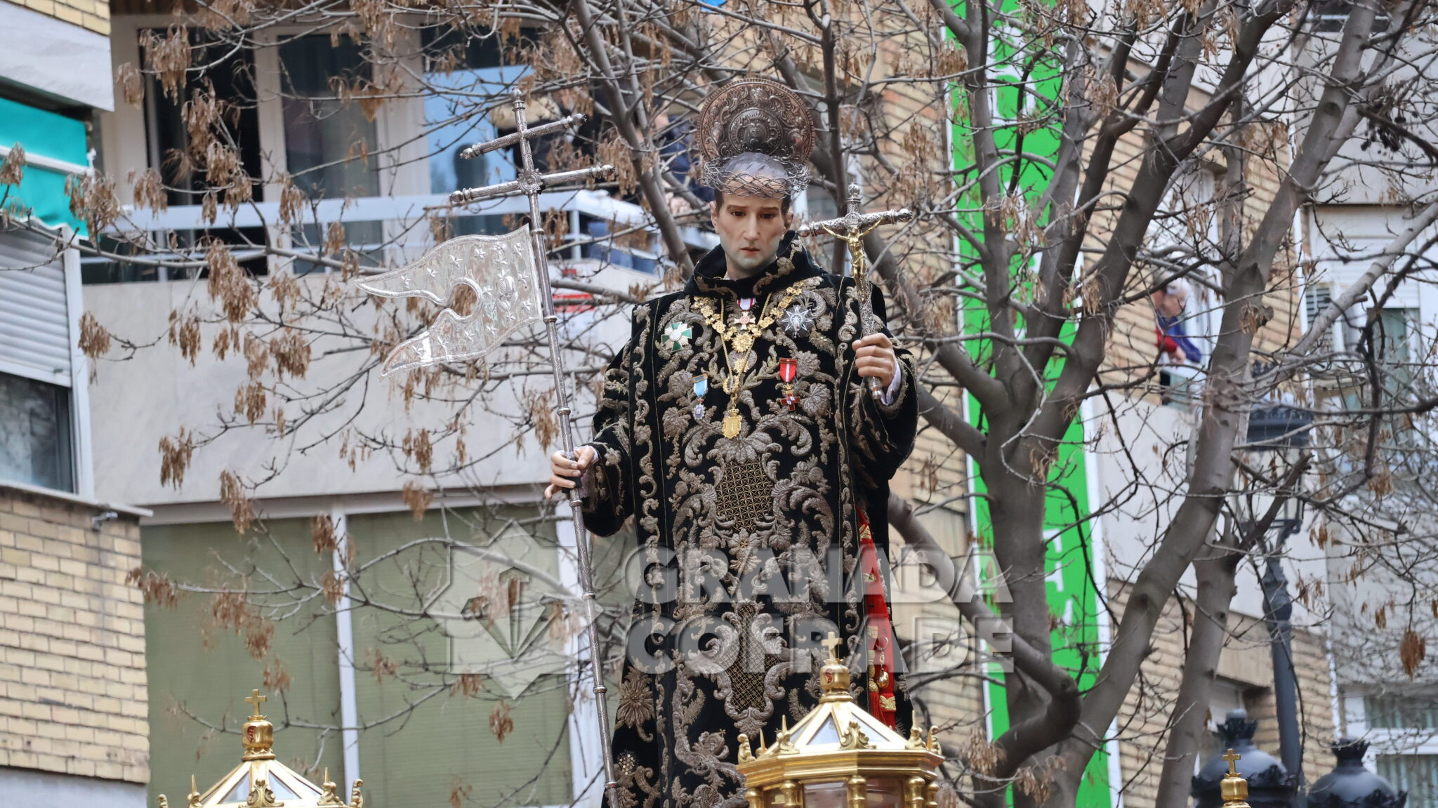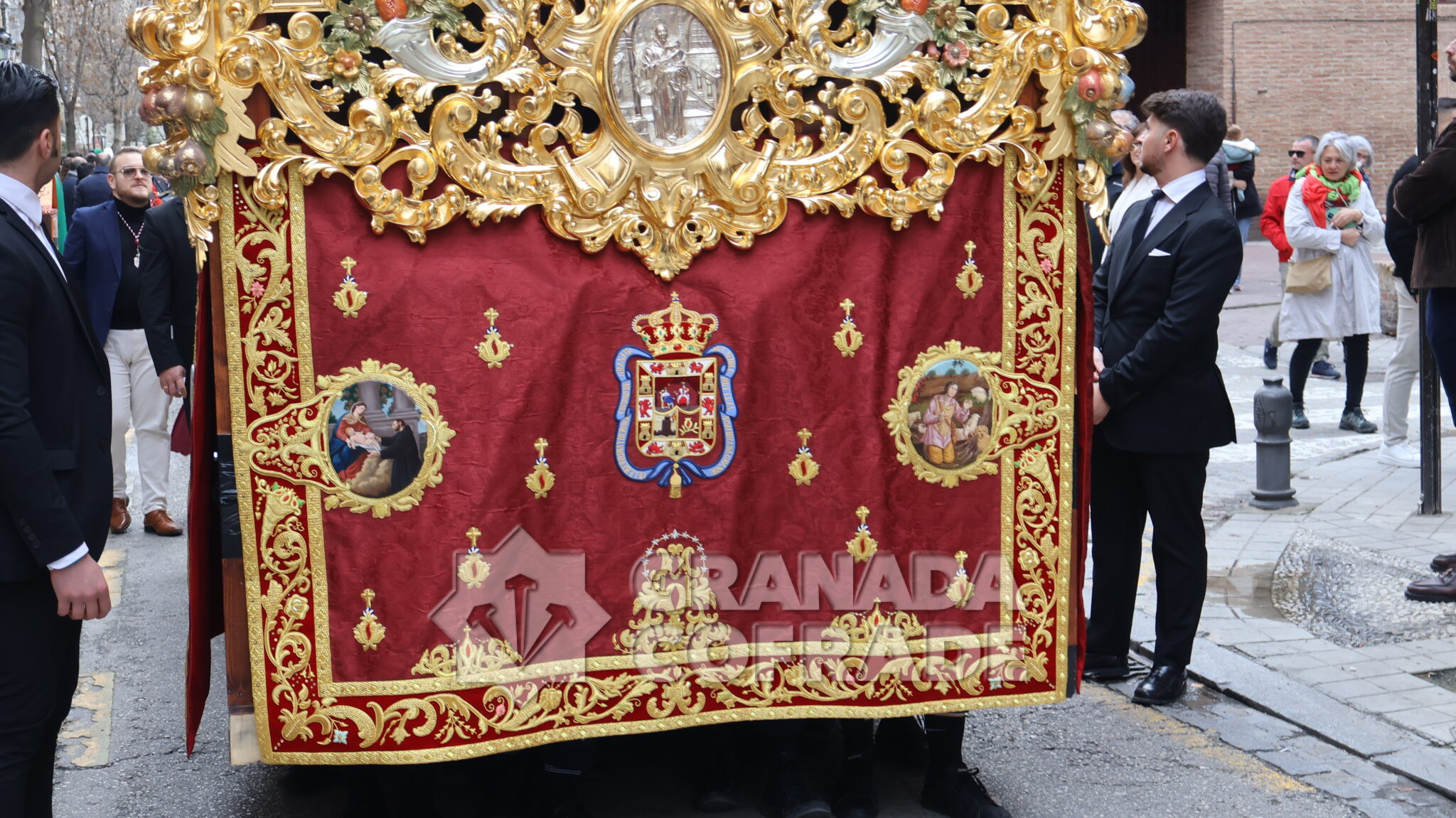 Un cortejo en el que estaban las hermandades del Santo Sepulcro, de la Esperanza, Ferroviarios, Jesús Despojado y Alhambra, por la vinculación que les une a la Orden Hospitalaria. El cortejo lo abría la agrupación Jesús del Rescate y lo cerraba la banda de cornetas y tambores de Jesús Despojado y en el cortejo también estaban las hermandades de gloria de la Virgen de la Cabeza y la Patronal de Nuestra Señora de las Angustias.