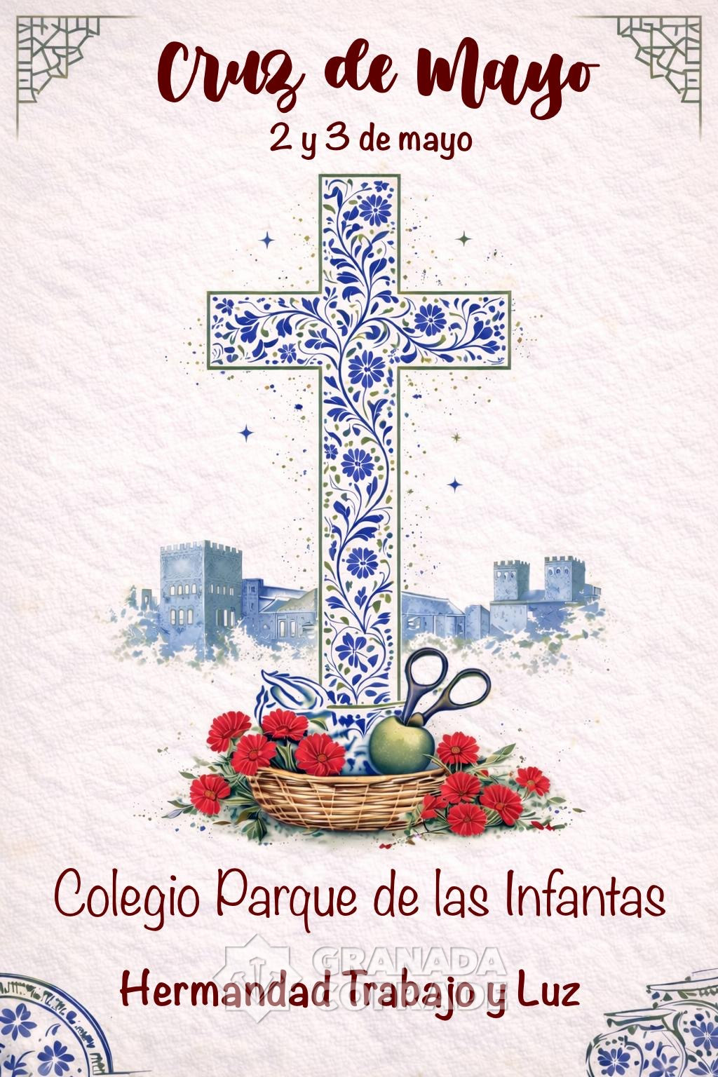 Celebra la cofradía del Santísimo Cristo del Trabajo y Nuestra Señora de la Luz a sus hermanos, vecinos y amigos a la Cruz de Mayo que se celebrará los días 2 y 3 de mayo en el Colegio Parque de las Infantas, de nuestra ciudad para la celebración de esta fiesta tradicional de nuestra ciudad.