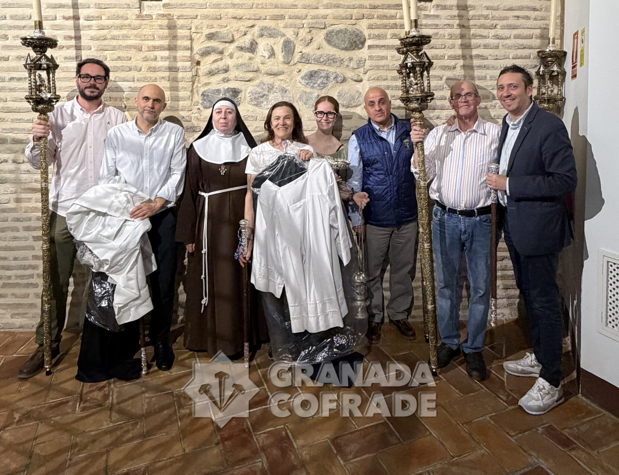 En la tarde de ayer jueves, el hermano mayor y miembros de la Junta de Gobierno de la Hermandad de la Cofradía de la Oración en el Huerto de los Olivos, acompañados por hermanos de la cofradía, hicieron entrega a la Madre Pilar, de la Comunidad de Clarisas Capuchinas del Convento de San Antón, de los enseres solicitados para el traslado de sus Sagradas Imágenes hasta la Catedral, con motivo de la exposición «Kerygma. El arte de Evangelizar»