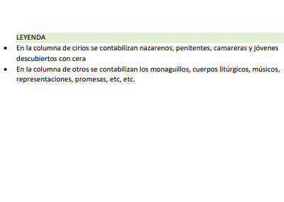 Recuento hnos participantes Federación de Cofradías 1