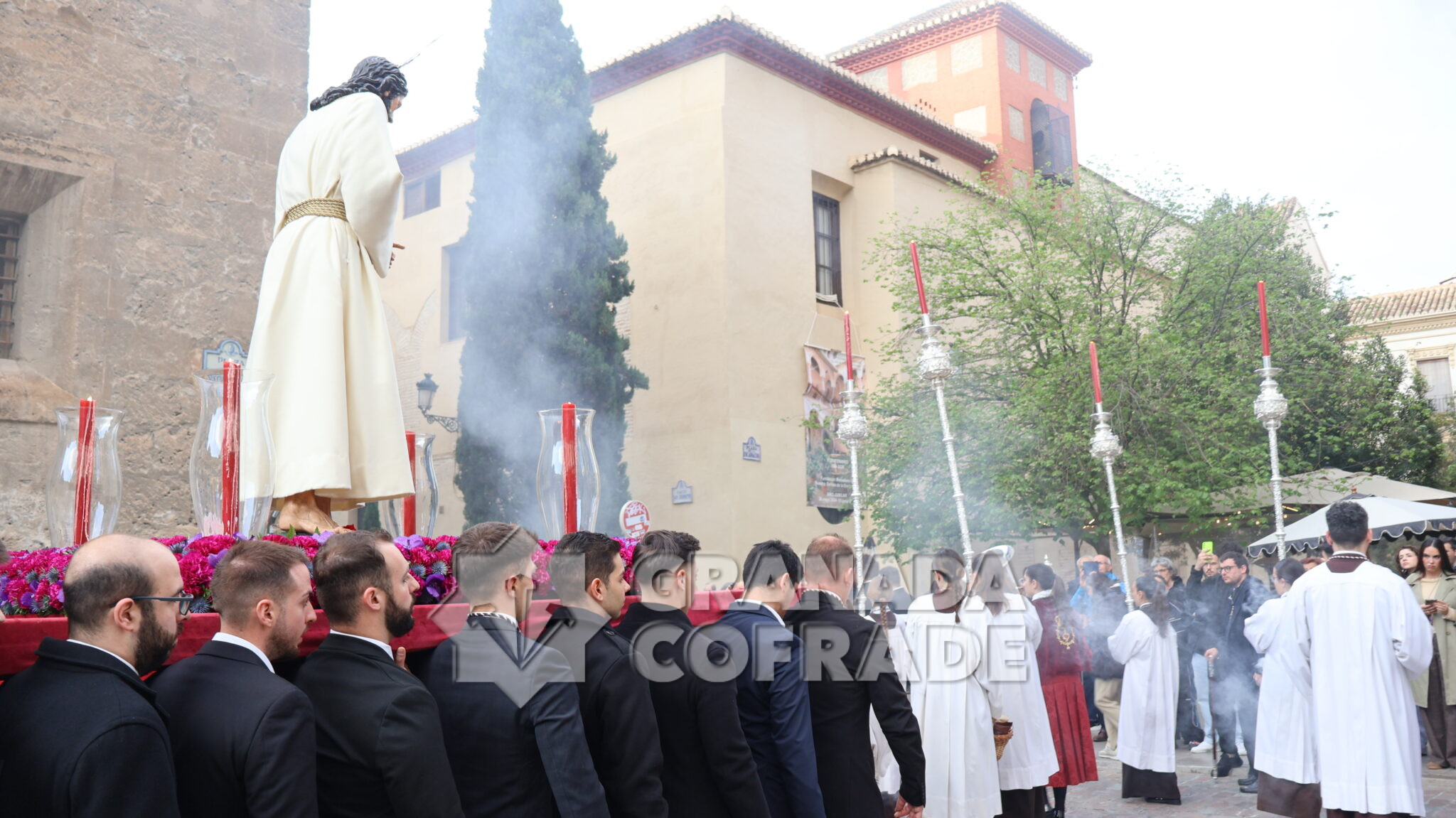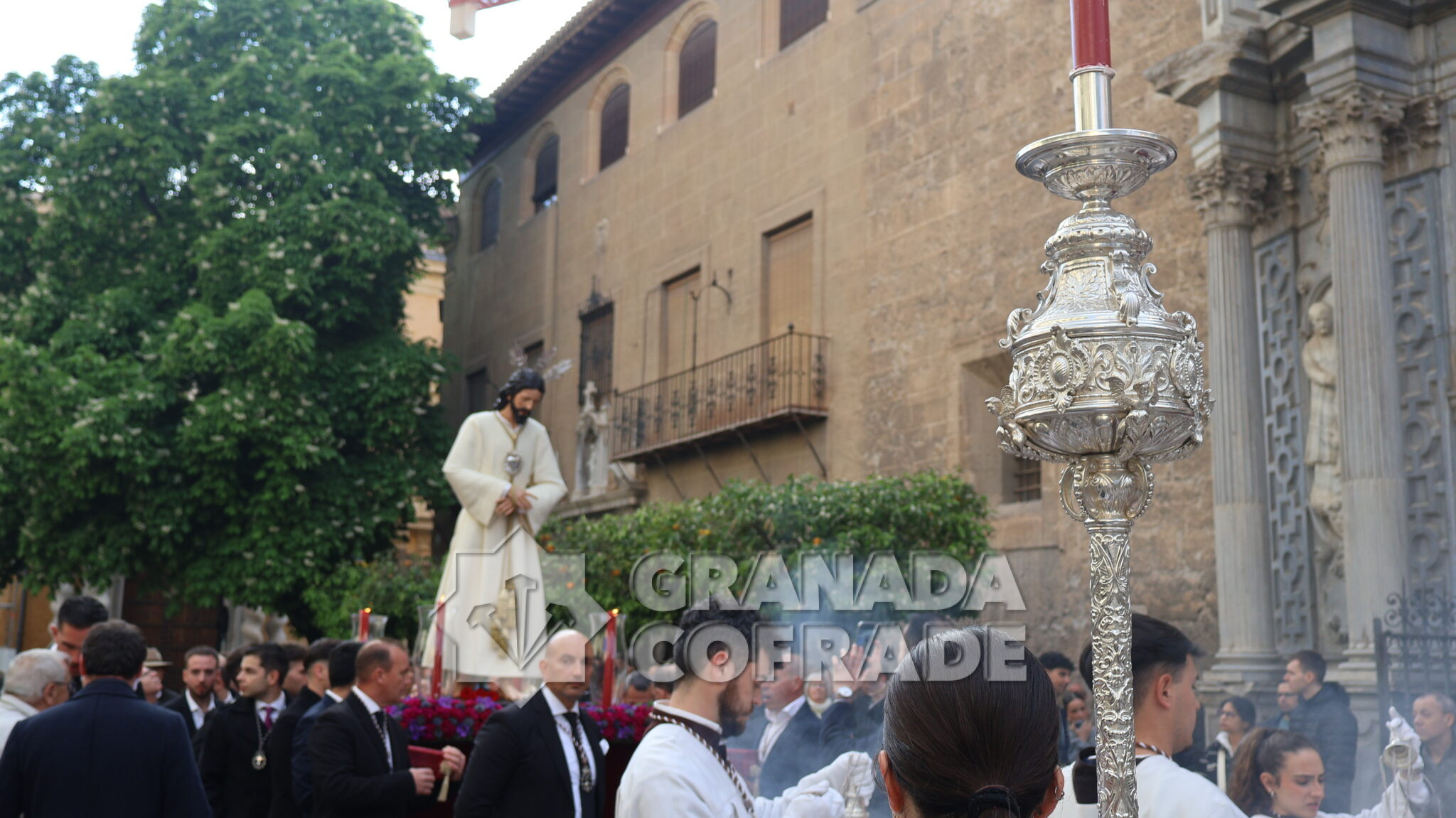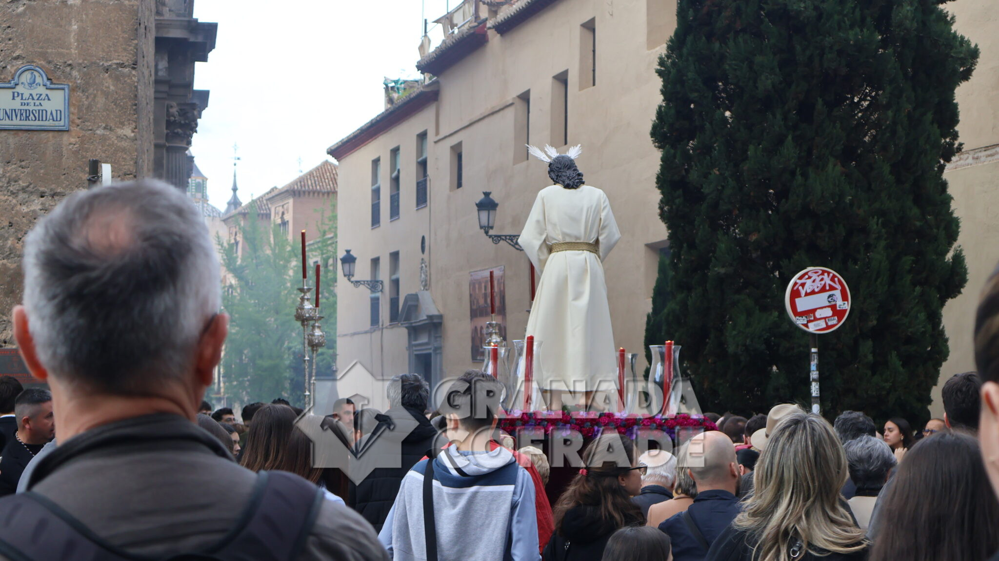 Primero se celebró la Eucaristía de acción de gracias convocada por la hermandad del Domingo de Ramos, en el interior del Sagrario-Catedral desde donde partió el pasado Domingo de Ramos en la estación de penitencia anual. Después se organizó el traslado que fue acompañado por la sección de metales de la agrupación musical «Nuestra Señora de la Cabeza», de Exfiliana y recorriendo su itinerario desde por la plaza de Alonso Cano, Pie de la Torres en dirección hacia calle Capuchinas, Duquesa y Escuelas, Málaga y accediendo a la plaza de la Universidad, calle San Jerónimo y por Arandas hasta bordear el monasterio de la Encarnación, Niños Luchando y accediendo finalmente a su sede canónica.