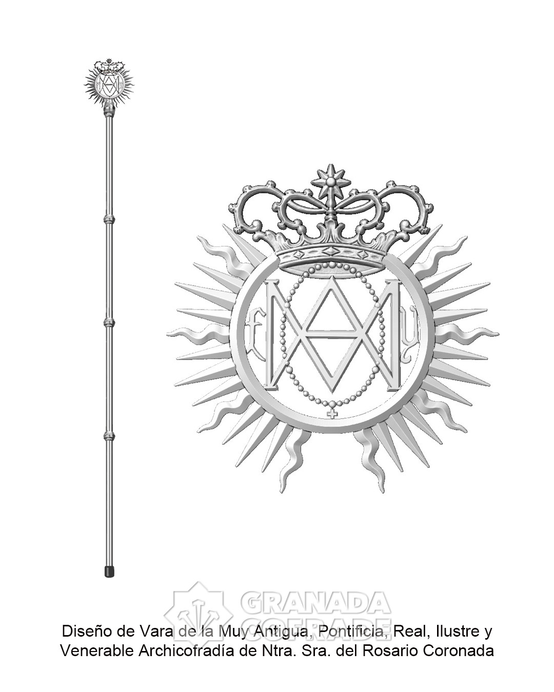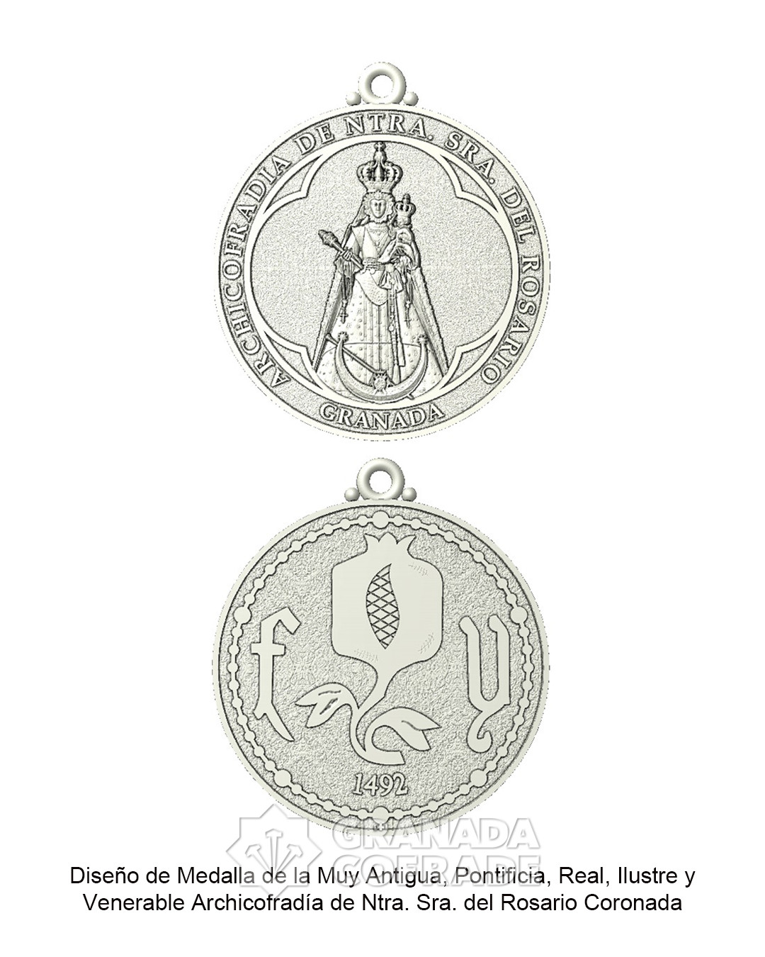 El pasado 12 de febrero, durante la celebración del Cabildo General de la Archicofradía de Nuestra Señora del Rosario, se dio a conocer a los hermanos asistentes el diseño de nueva medalla y vara, aprobados para su ejecución en el presente año. El diseño de la medalla recupera los modelos de principios del siglo XX, en formato redondo, con la imagen de Nuestra Señora del Rosario Coronada y la leyenda «Archicofradía de Ntra. Sra. del Rosario – Granada» en el anverso. En el reverso aparece una granada, flanqueada por las iniciales «F» e «Y» y la inscripción «1492», dentro de un rosario, reproduciendo también la parte posterior de las primeras medallas conservadas.