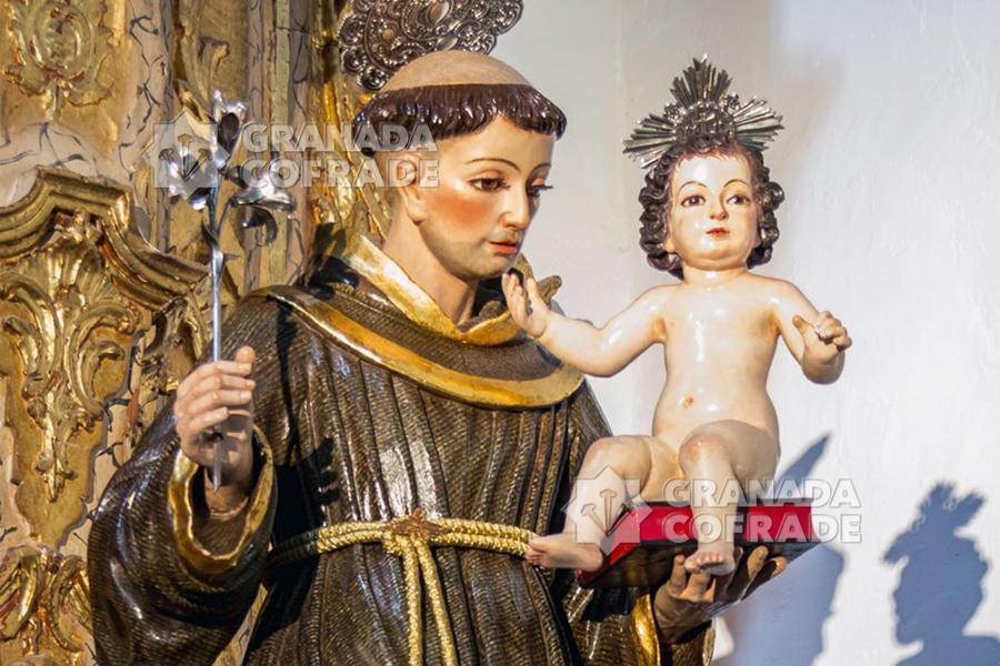 La muestra está compuesta por algunas obras de imaginería granadina, tanto de la parroquia de Cogollos como de otras del Arciprestazgo Alfagüara, “que han cedido amablemente, para tal evento, los párrocos respectivos”, explica el párroco de la iglesia en Cogollos Vega, Manuel García Hernández. “Se incluye también algunas pinturas, junto con litografías antiguas sobre san Antonio de familias del pueblo”, señala. “La exposición se completa con paneles sobre la vida de san Antonio, su espiritualidad, simbolismos antonianos, reconstrucción del rostro del santo y san Antonio en la historia de Cogollos. Junto a esto, se exponen algunos documentos antiguos del archivo parroquial de Cogollos referidos al santo patrón”.