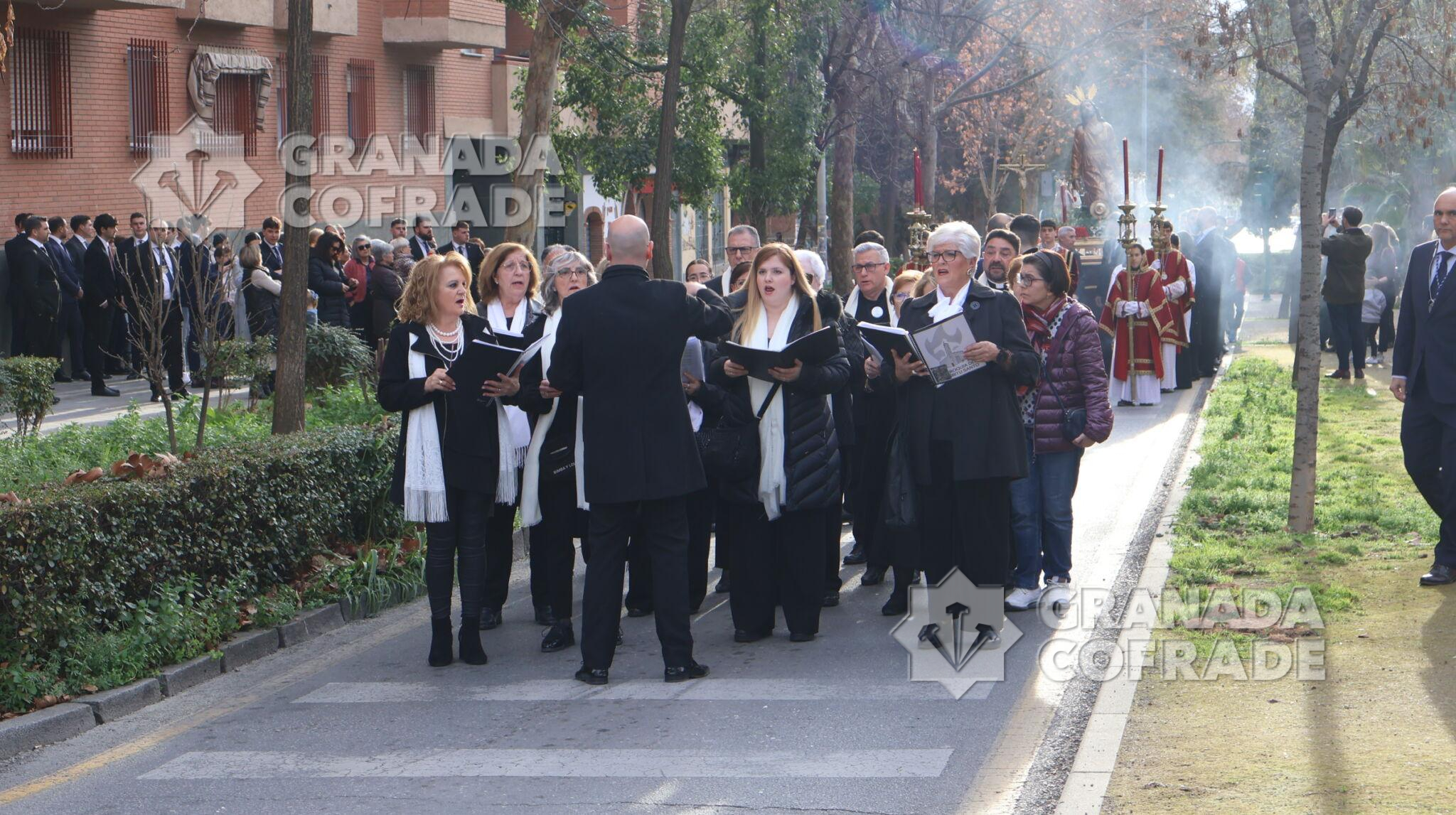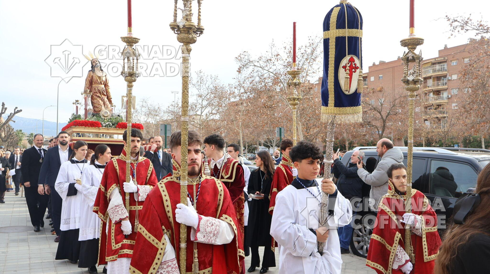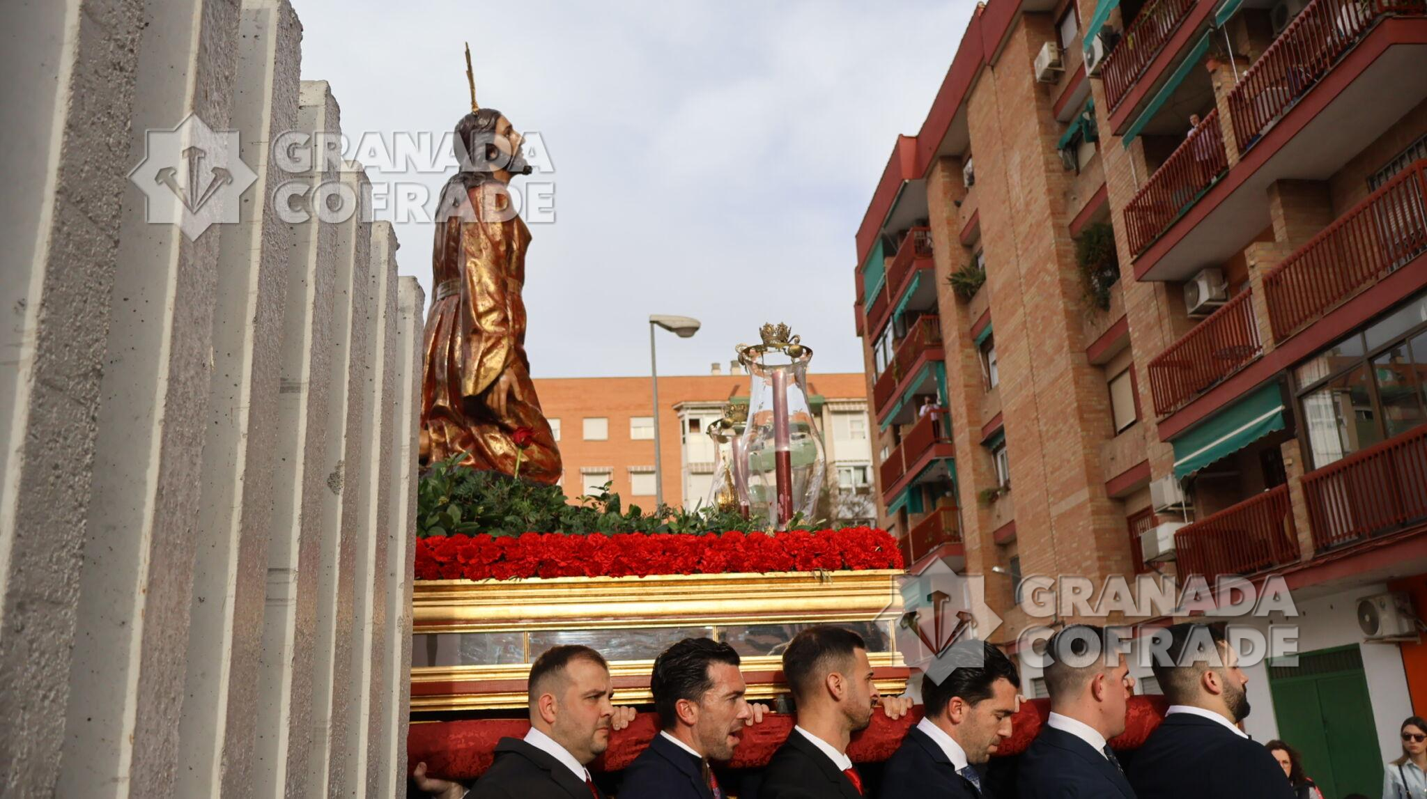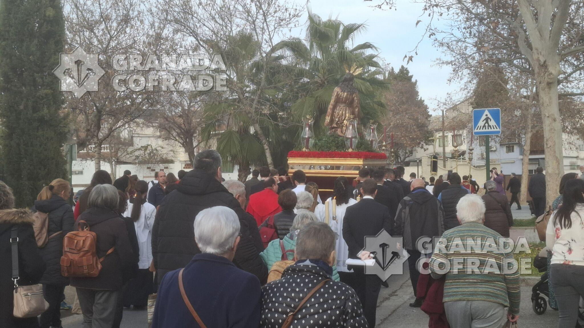 La Avenida de Joaquina Eguaras, por la acera, llevó el cortejo hasta la calle Gobernador Pedro Temboury, Avda. Pedro Machuca, calle José Manuel Baena Martín, calle Arzobispo Pedro de Castro, calle Padre Claret, Plaza María Angustias Giménez y regreso a la Parroquia del Espíritu Santo donde a las siete y media de la tarde se celebró la Eucaristía.